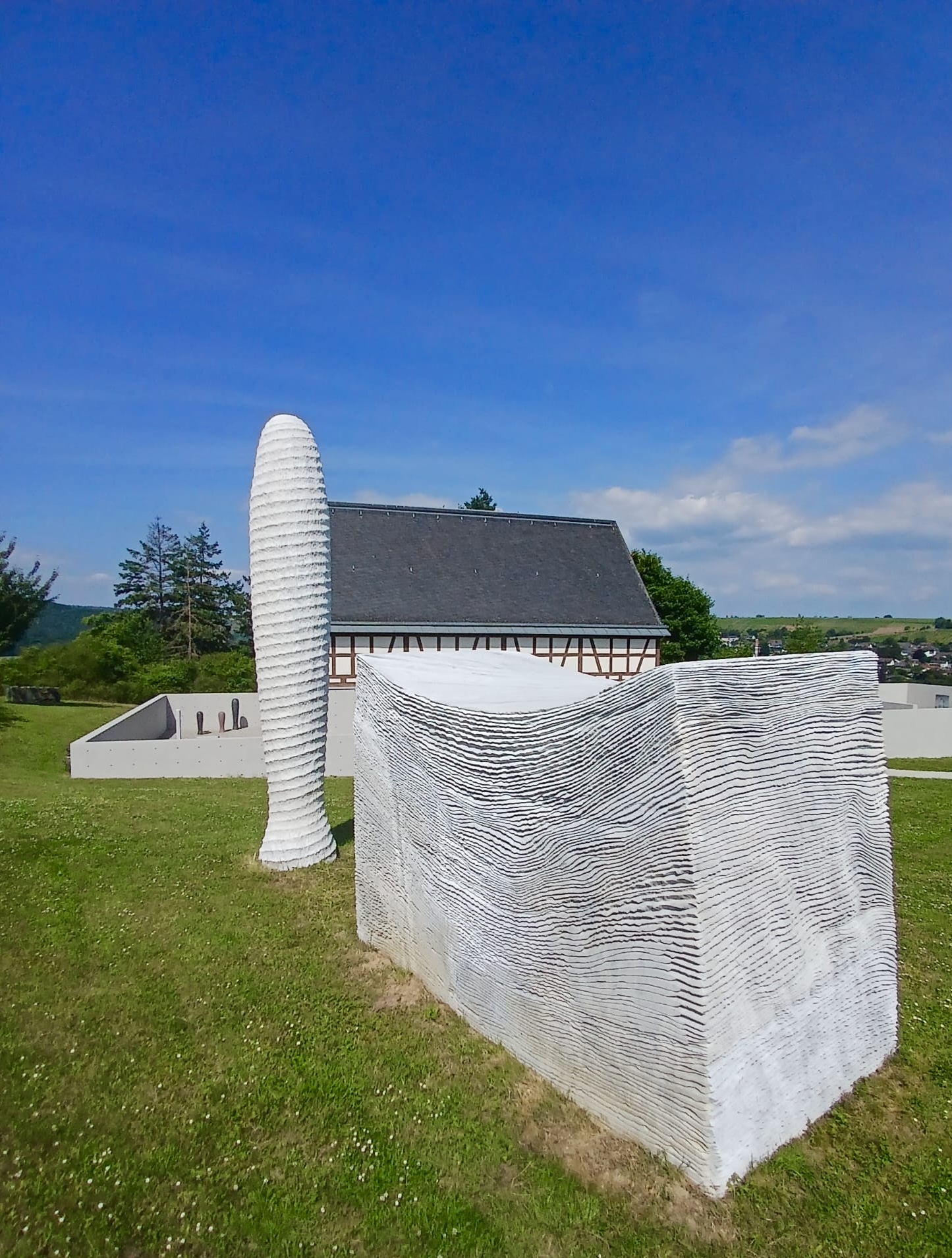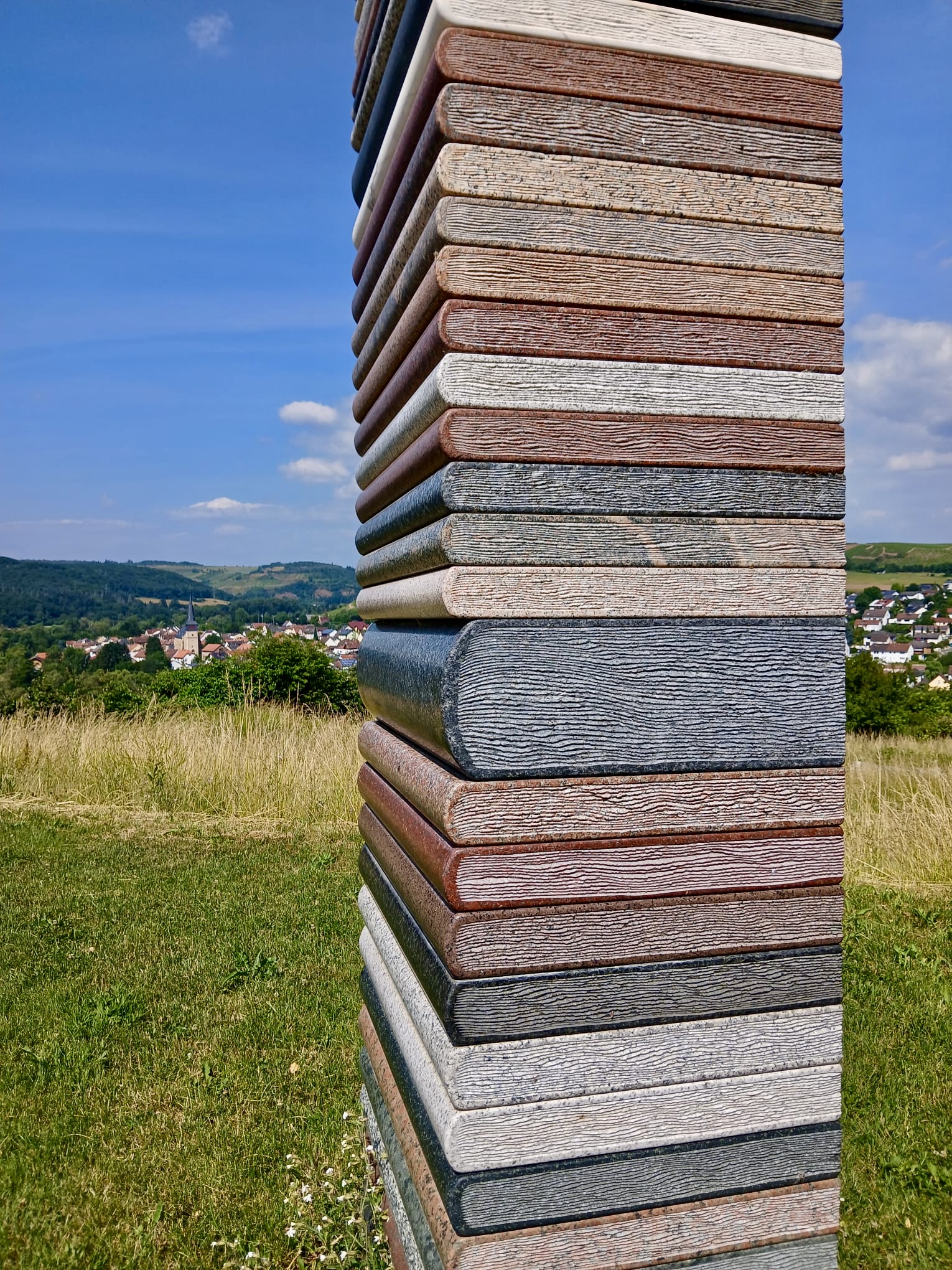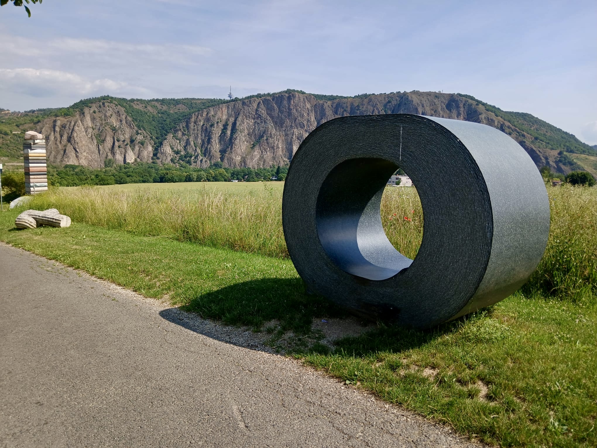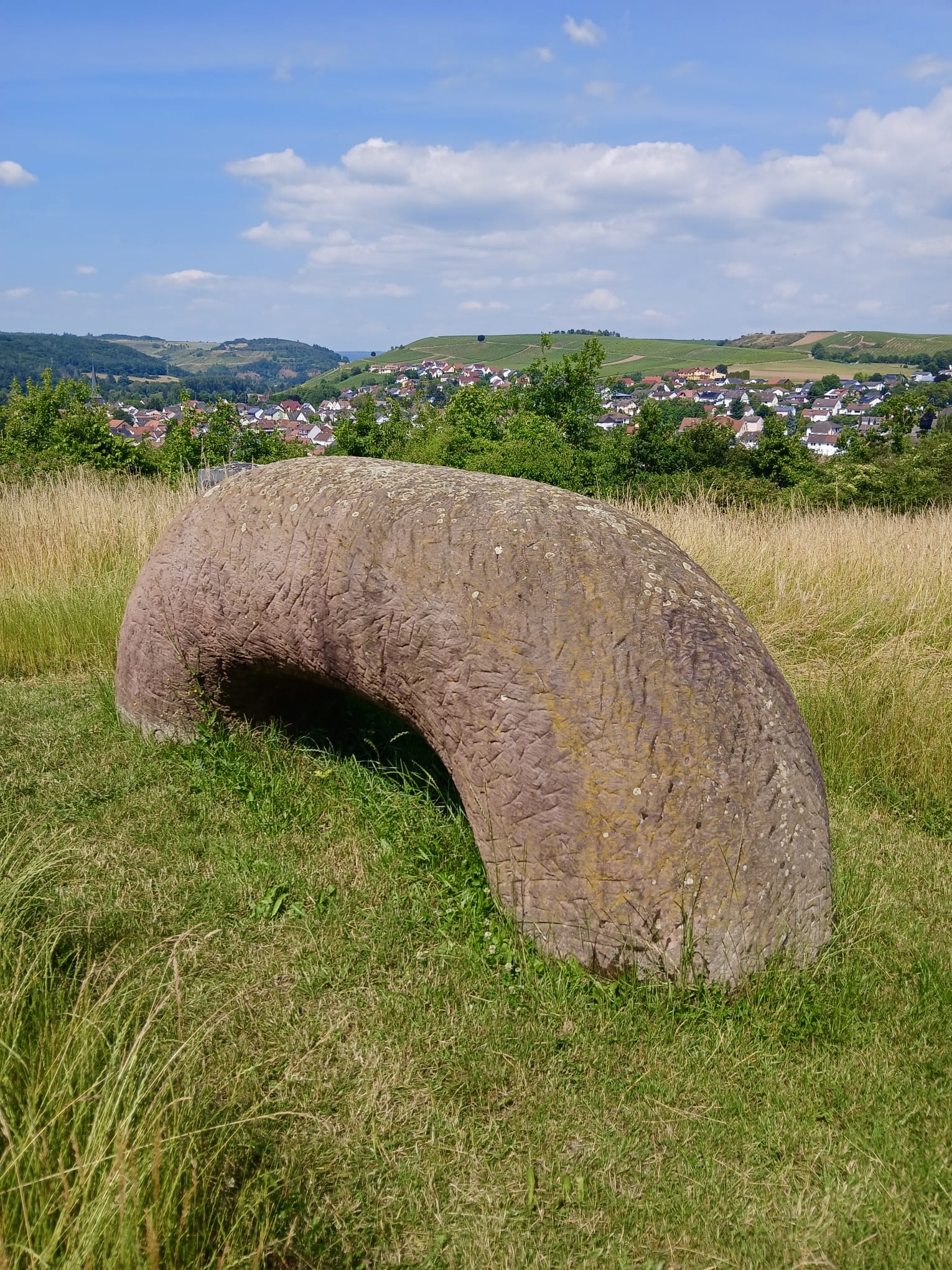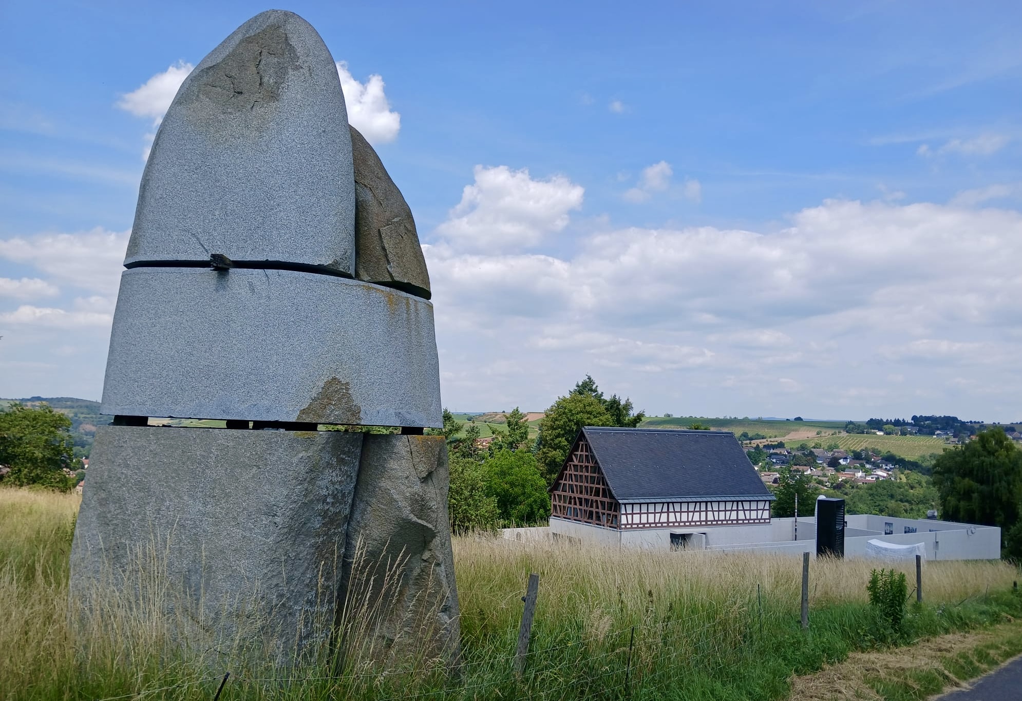 Anderntags haben wir die Stahlpferde gesattelt und sind ins Nachbardorf Bad Münster am Stein geradelt, vorbei an sechs riesigen Gradierwerken (Salzgewinnungs-Anlagen), die teilweise über 100m breit sind und das Tal „versperrten“. Das Ziel war der Steinskulpturen-Park Fondation Kubach-Wilmsen. In einem grossen Park, frei zugänglich und einem Museum, gebaut vom berühmten japanischen Architekten Tadao Ando, haben wir uns herrlich ergötzt an den kunstvollen „Steinblöcken“. Auch die Anfahrten der Nah entlang zeigt uns links und rechts riesige rote Felswände. Selbstverständlich haben wir auch hier eines der schönsten Kurhäuser Europas bewundert, das gerade eine Grossrenovation über sich ergehen lassen muss. Zu guter Letzt haben wir den Bikes noch die Sporen gegeben resp. mehr Pfus und sind zu einem Aussichtspunkt hoch geklettert. Selbstverständlich mit prächtiger Ausblick auf das Nahtal und seine roten Felsen.