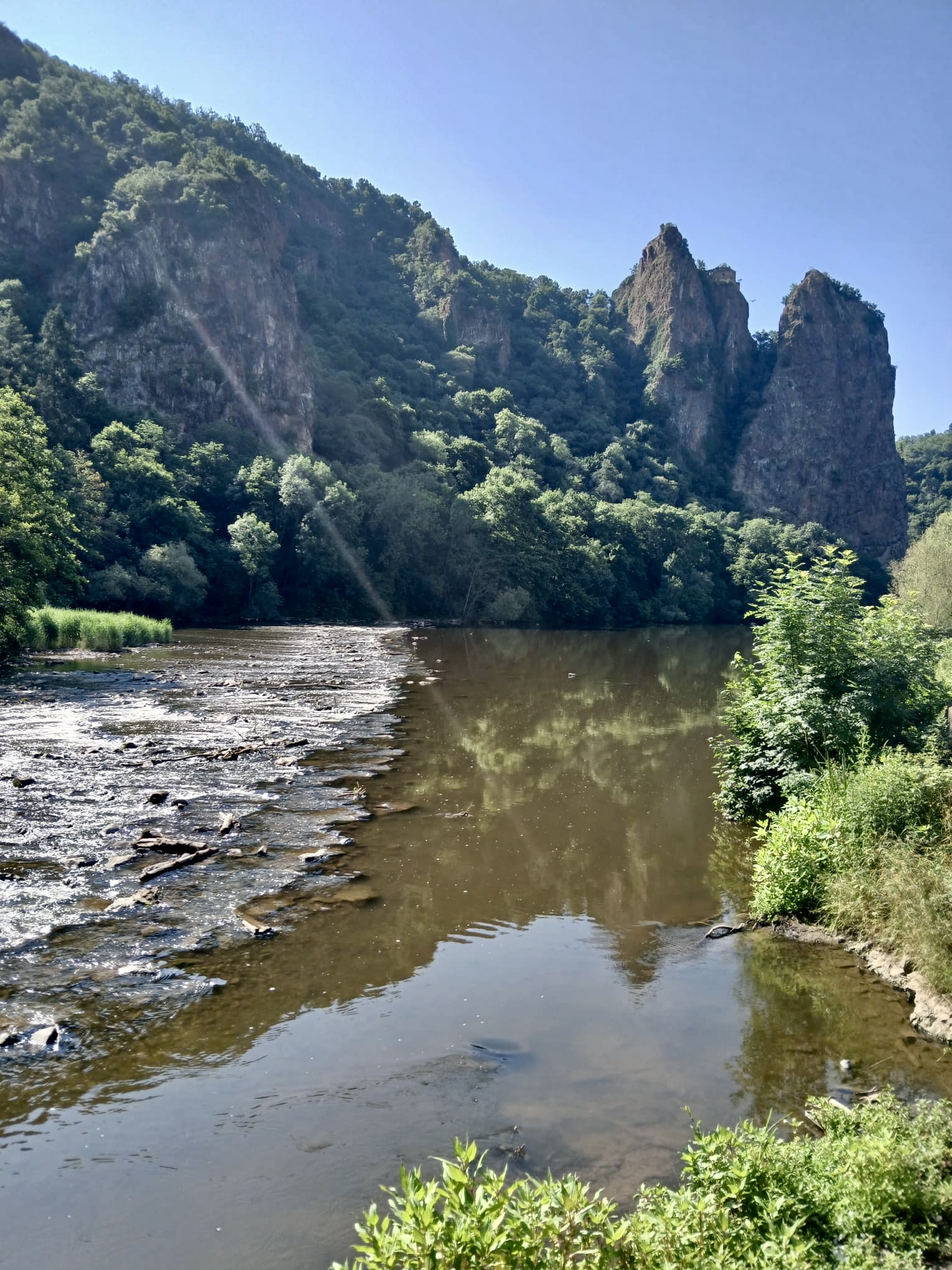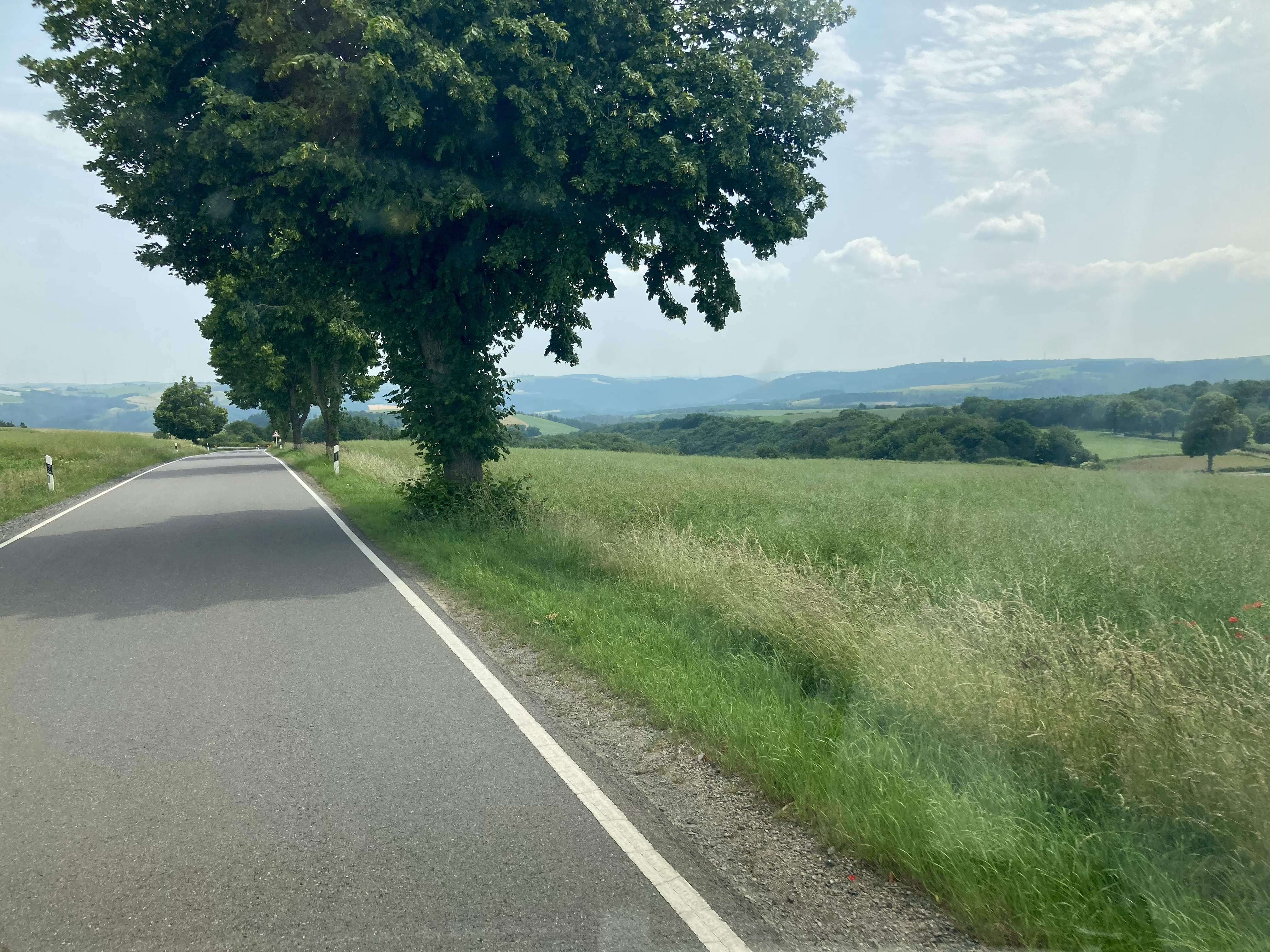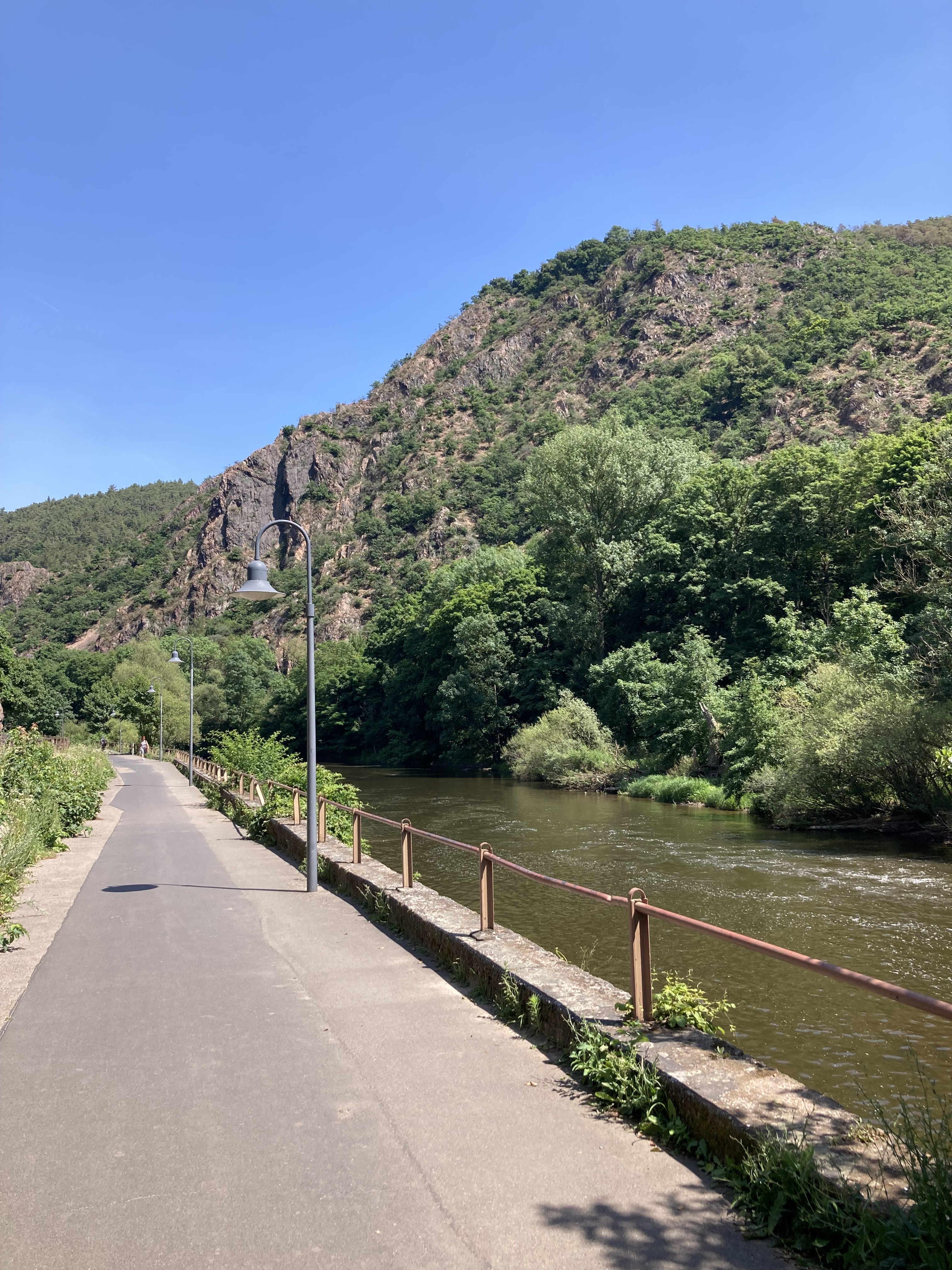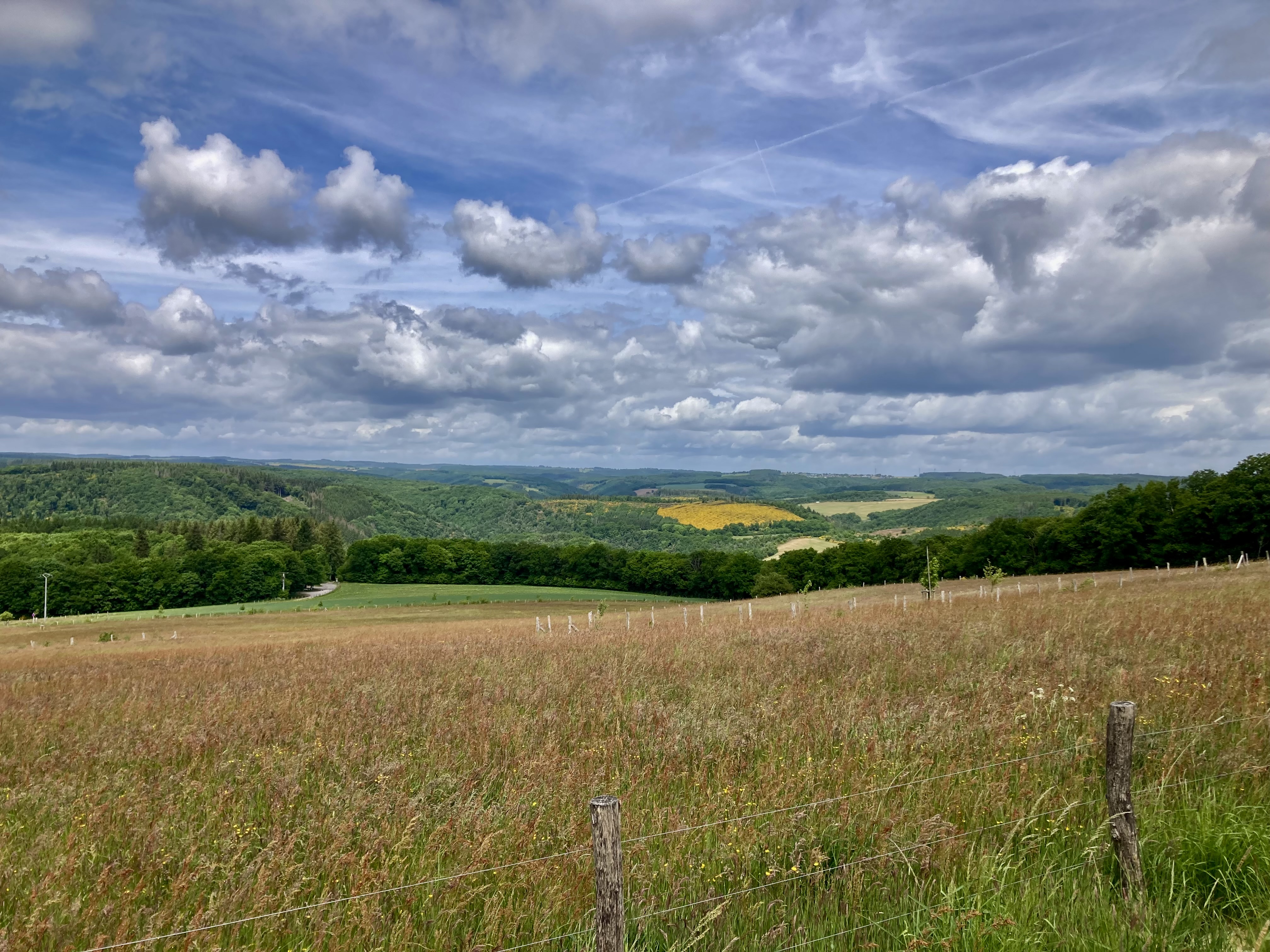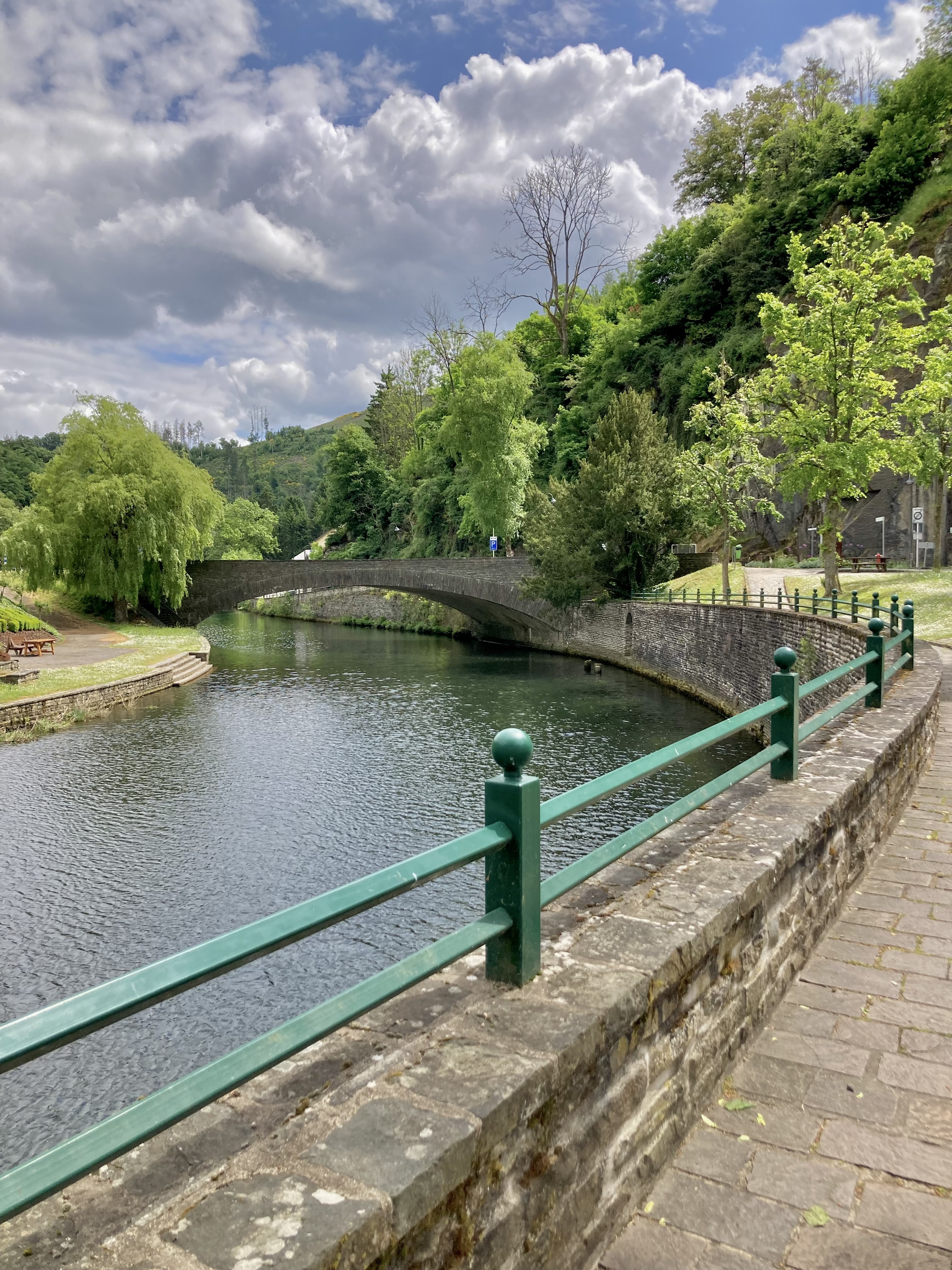 Langsam hatten wir genug Städte gesehen. Darum geht’s über 273 km zurück nach Deutschland in die Südeifel (Rheinland-Pfalz) aufs Land. Ganz in der Nähe von Bitburg entdeckten wir einen wunderschönen Campingplatz in Oberweis mit Pool, grosser Parzelle, Brötchenservice (sehr wichtig!) am Ufer eines Flusses. Über Nacht prasselte ein zünftiges Gewitter über unseren Elvis hinweg und von der Markise stürzt ein Sturzbach auf unseren Vorplatz, wo Frauchen meinte, ich müsse die Markise nachts dringend einziehen – im Pischi… Denkste, die hält… Am Morgen kam dann das Lob von Doris, dass ich das Ding richtig gut und sturmsicher verankert habe. Apropos Wetter: auf der ganzen Reise sind wir nun ca. 3x vom Regen überrascht worden.