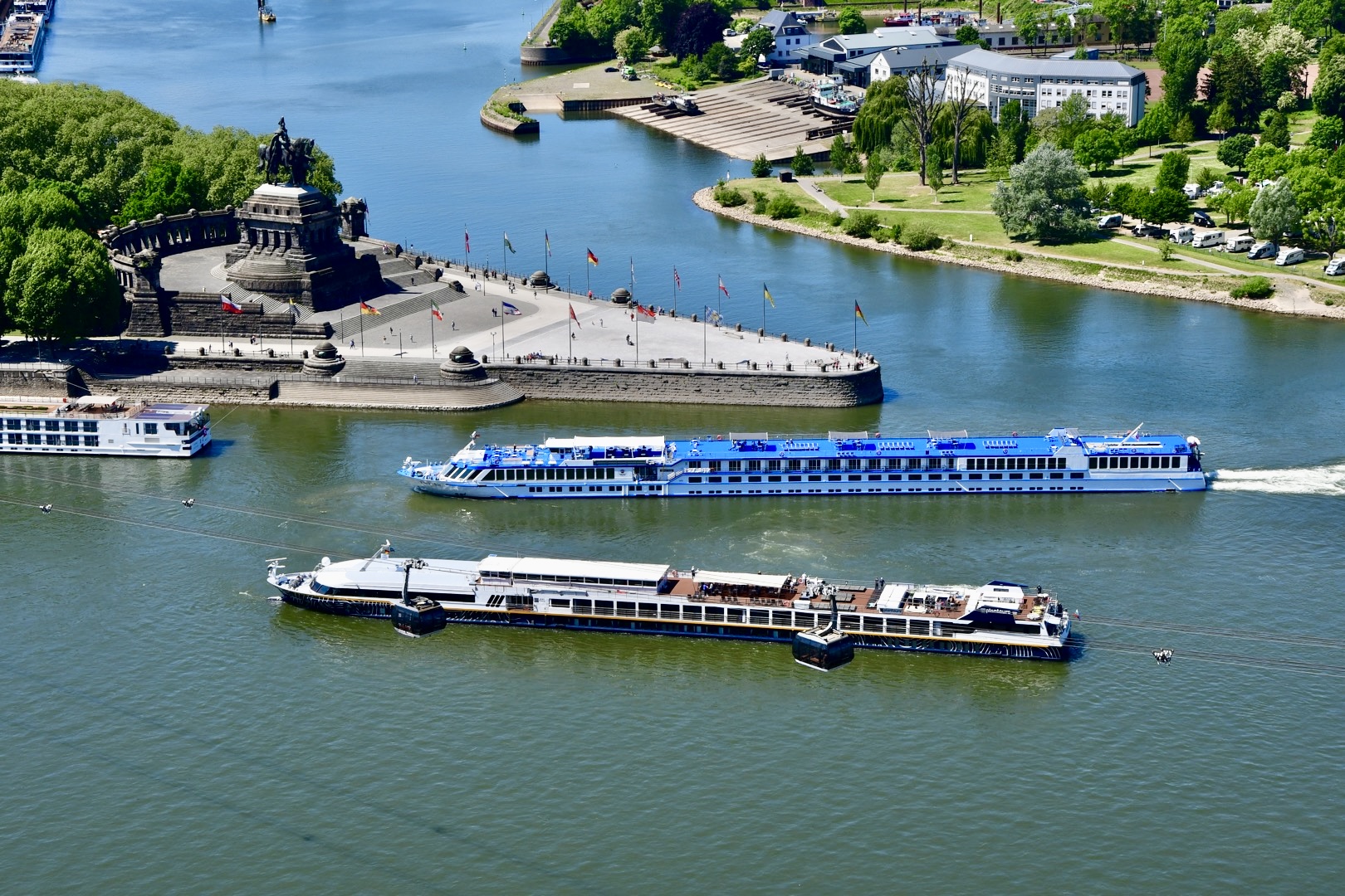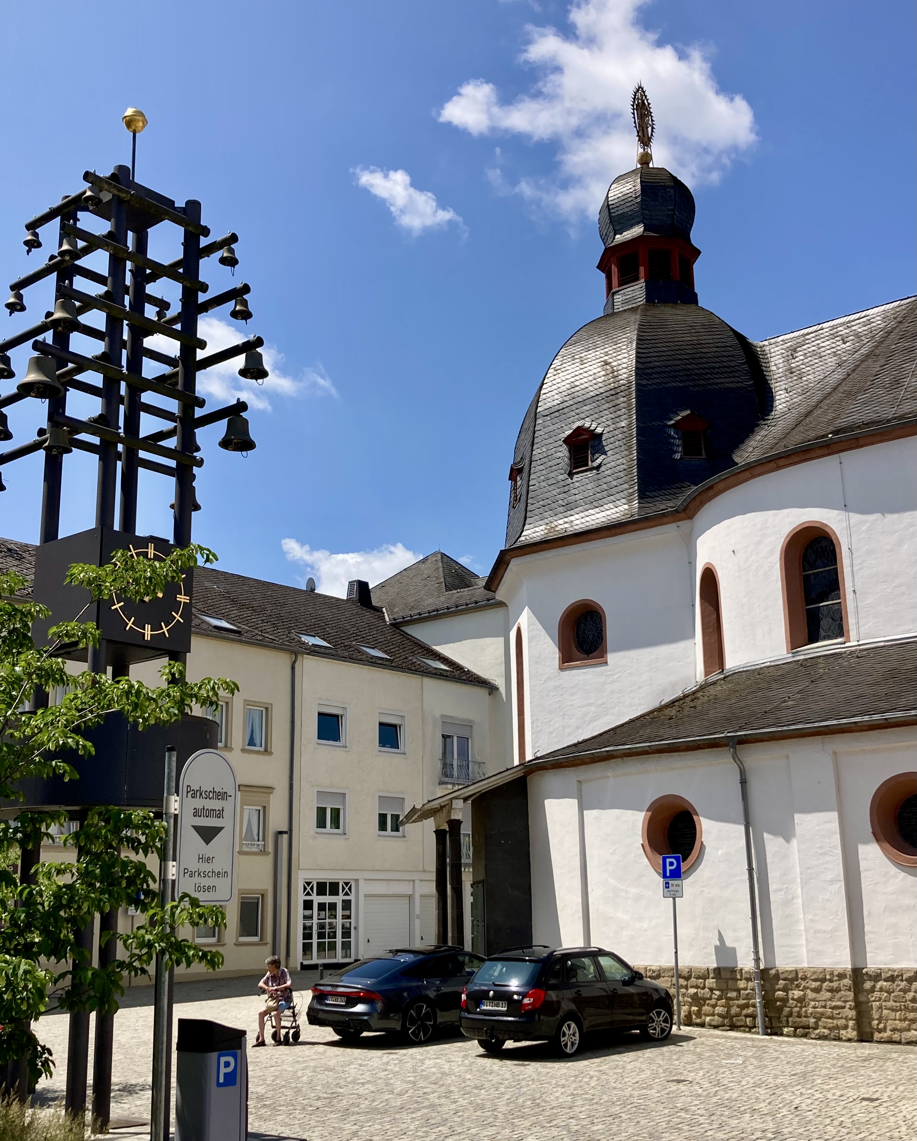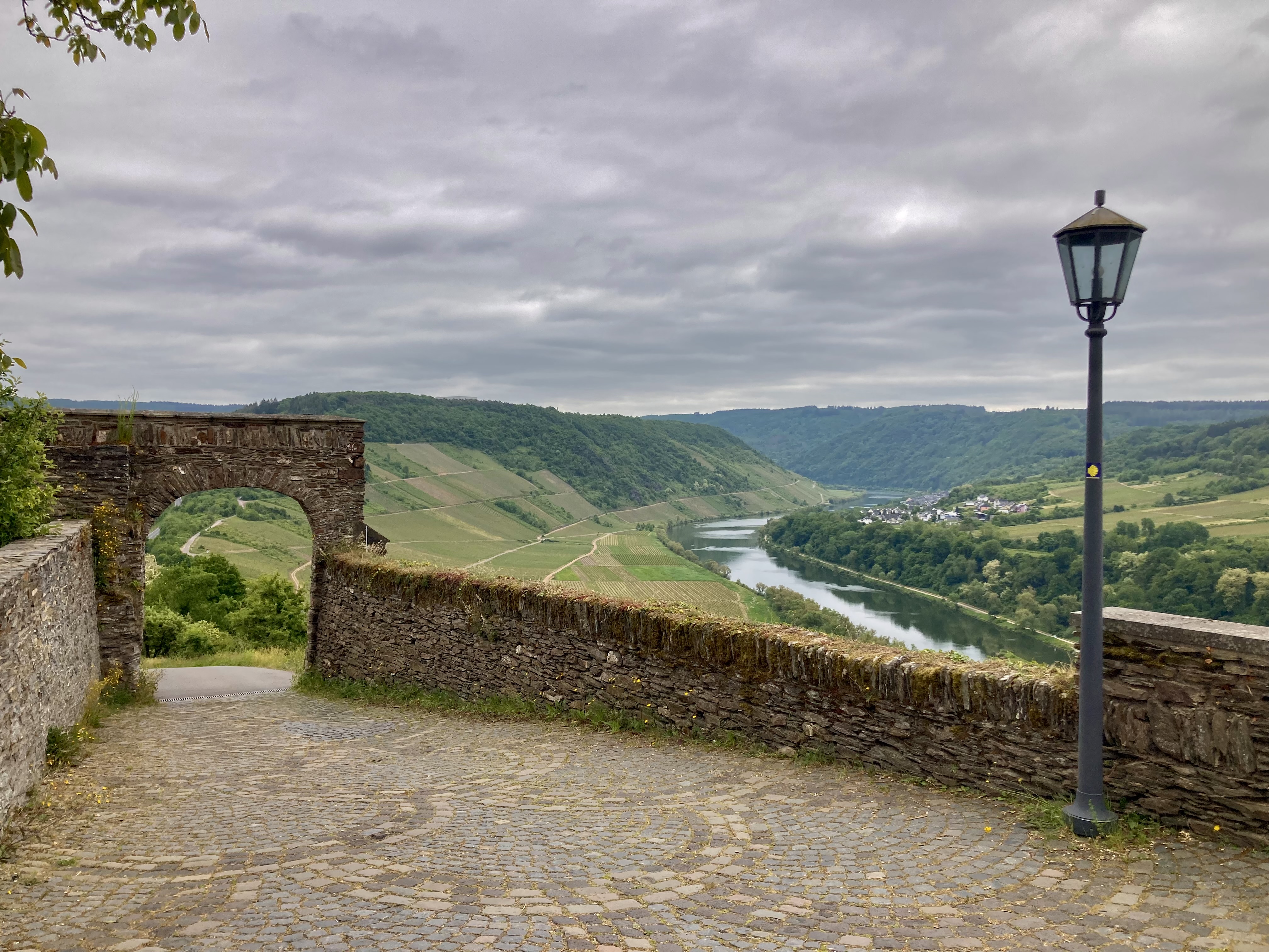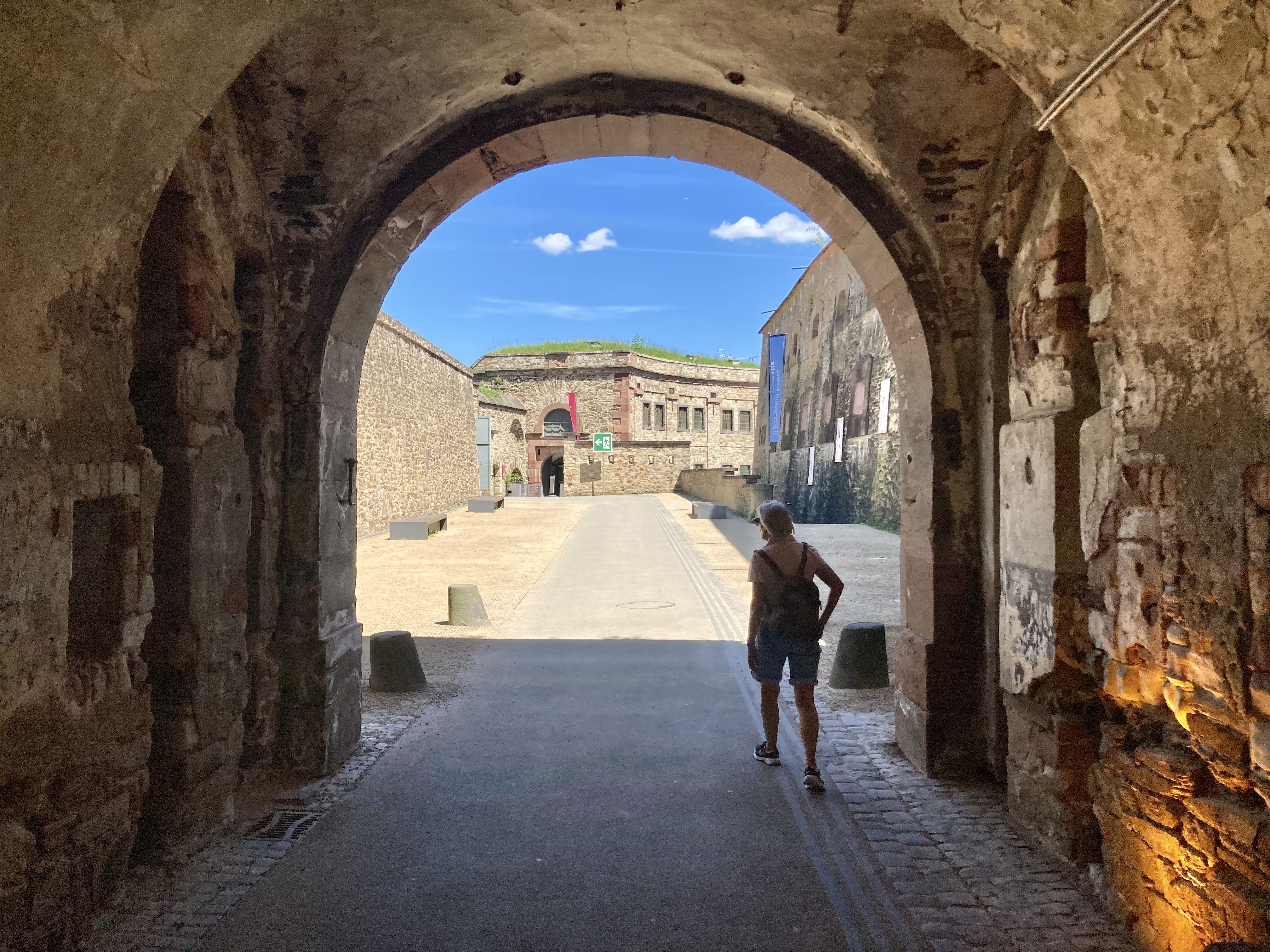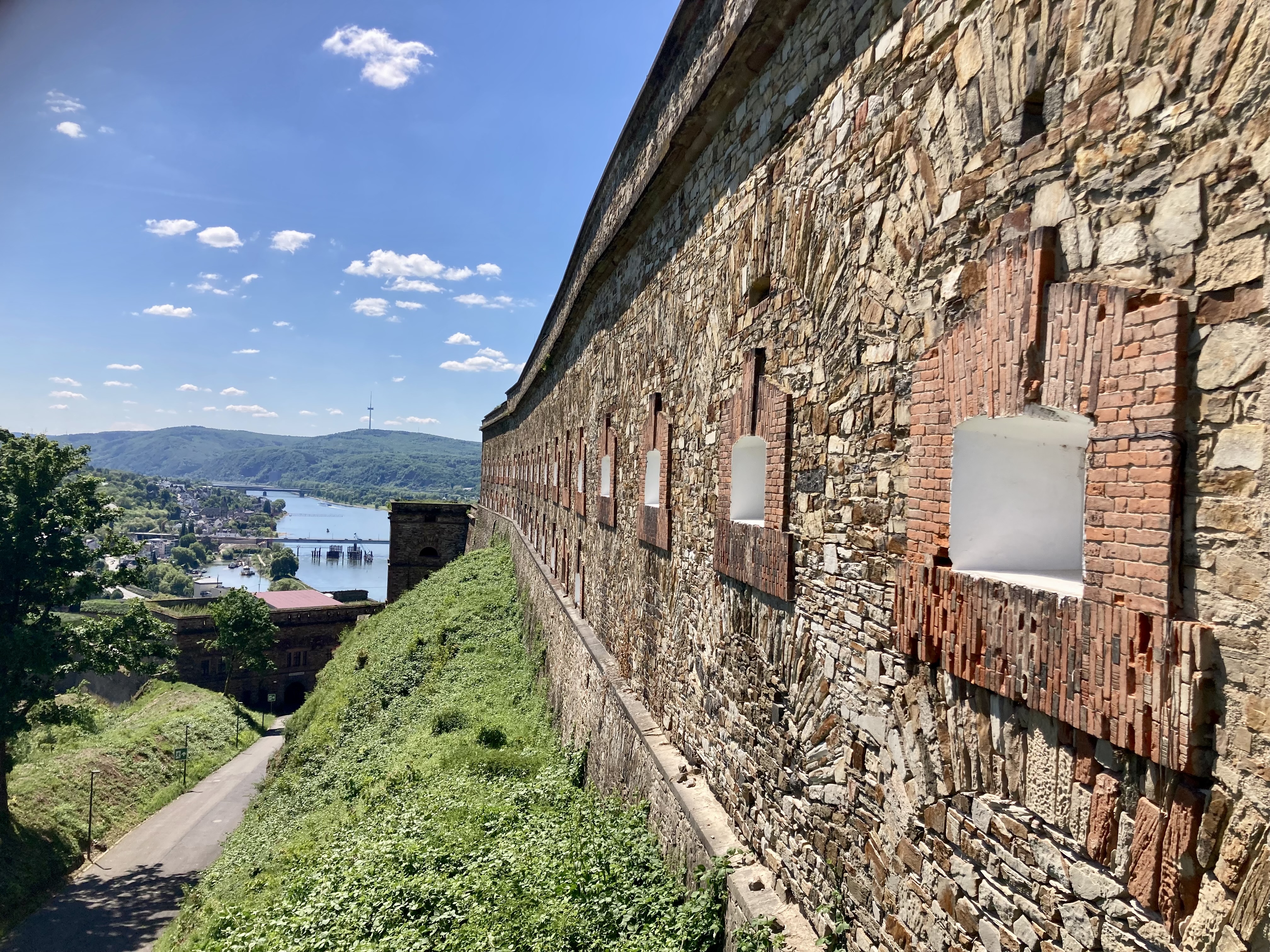 Nach zwei Tagen ging es dann hoch über fast 400 km nach Koblenz zum eigentlichen Start an der Mosel. Eindrückliche Stadt am Deutschen Eck, dem Zusammenfluss von Mosel und Rhein. Der Stellplatz lag etwas ausserhalb der Stadt, doch auf dem Veloweg waren wir in 20 Minuten im Zentrum. Logisch steuerten wir zuerst das Deutsche Eck an. Bestaunten die vielen Touristen, Rhein- und Moselkreuzfahrtschiffe, um uns dann den Details in der Innenstadt zuzuwenden. Wir entdeckten ein kubanisches Restaurant, wo uns das Abendessen bestens mundete. Anderntags strampelten wir hoch zur Burg Ehrenbreitstein, obwohl eine Gondelbahn hinaufführte. Ein prächtiger Spot hoch über Koblenz mit bestem Blick auf das Deutsche Eck und das Umland.