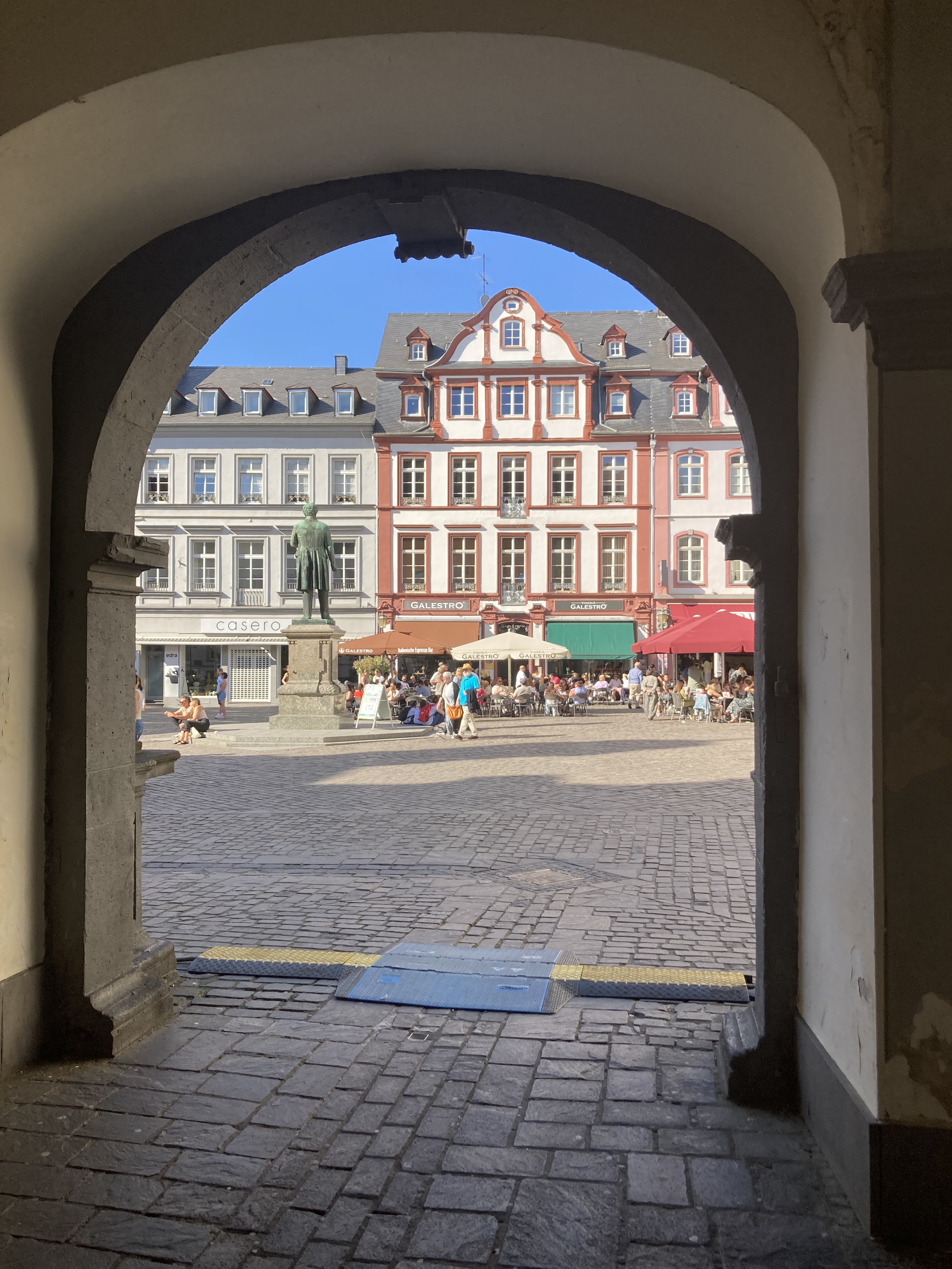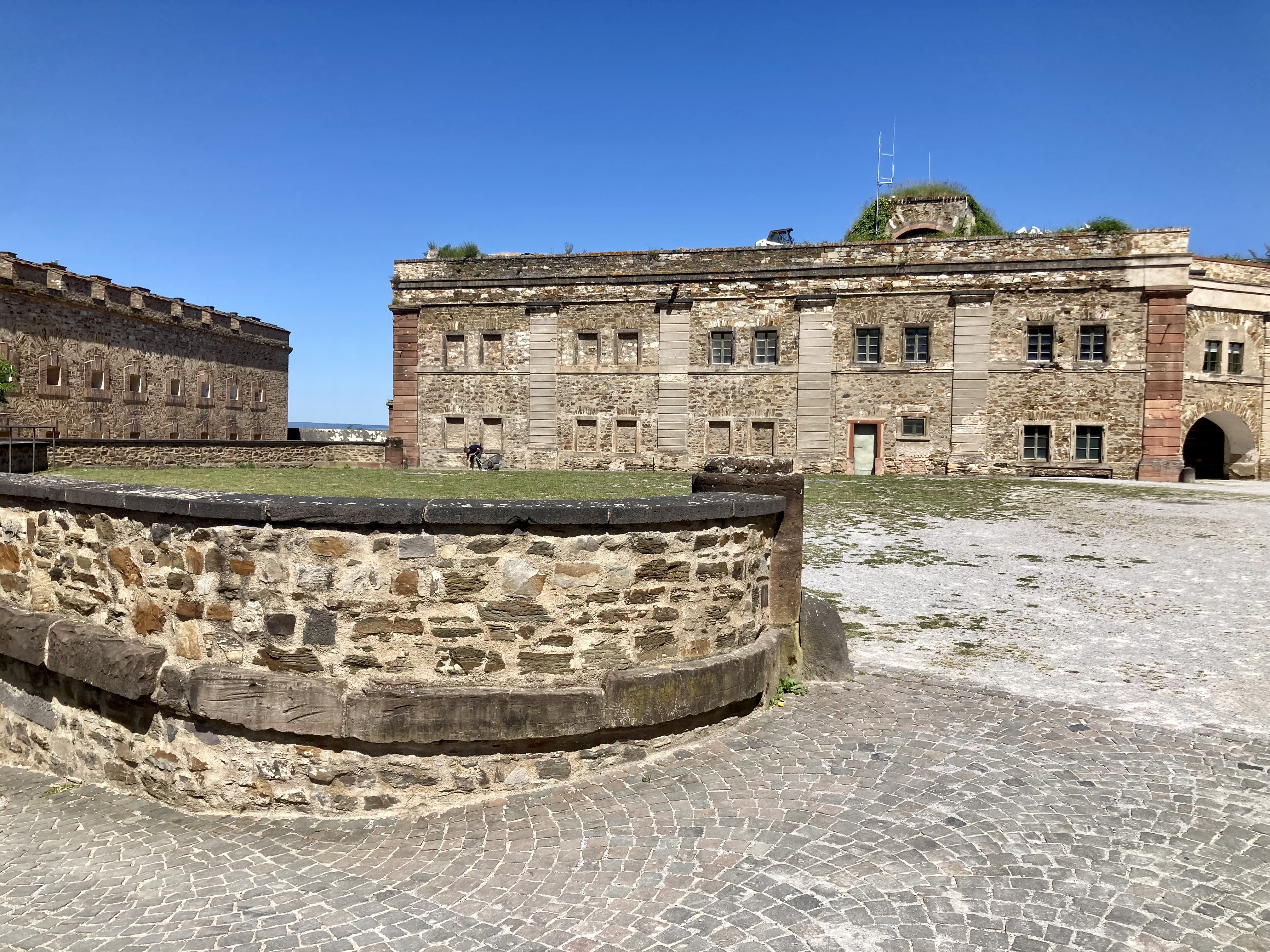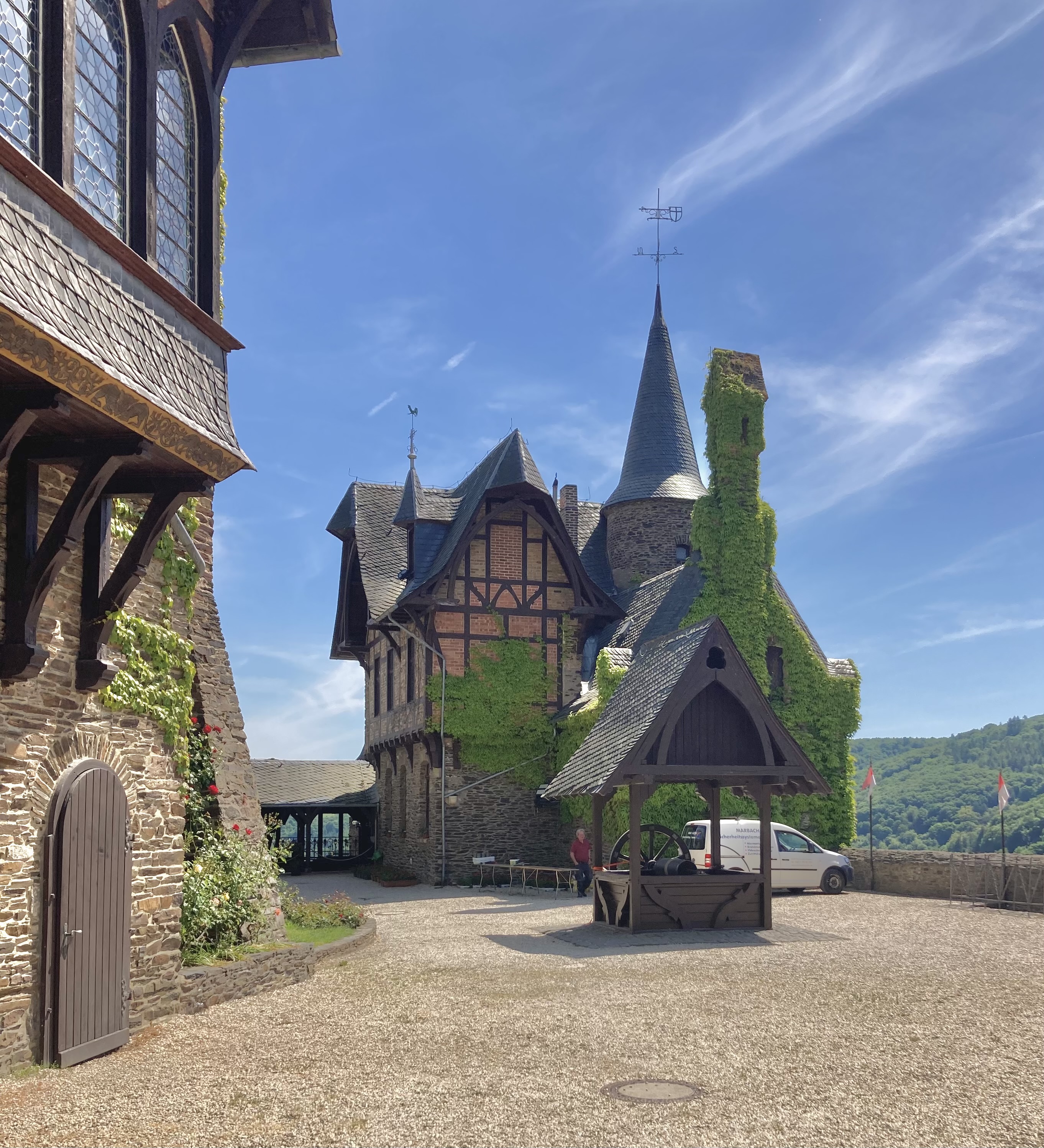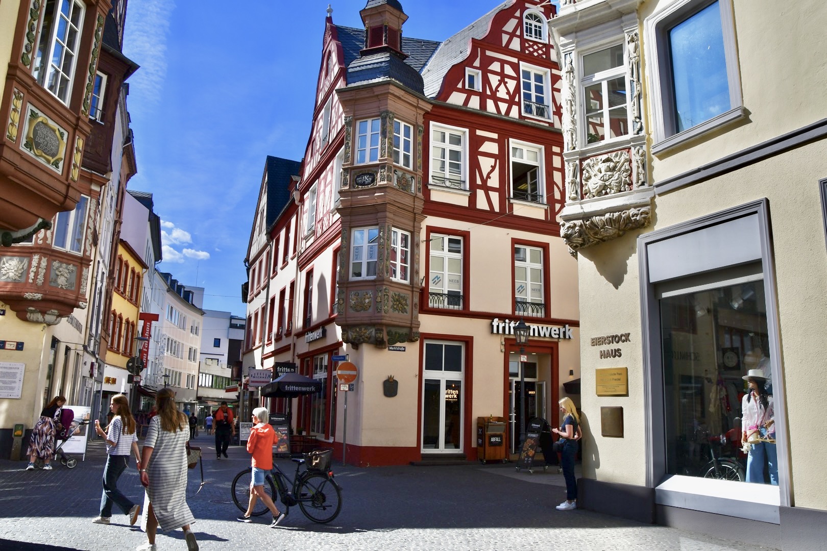 Nach zwei Tagen ging es dann hoch über fast 400 km nach Koblenz zum eigentlichen Start an der Mosel. Eindrückliche Stadt am Deutschen Eck, dem Zusammenfluss von Mosel und Rhein. Der Stellplatz lag etwas ausserhalb der Stadt, doch auf dem Veloweg waren wir in 20 Minuten im Zentrum. Logisch steuerten wir zuerst das Deutsche Eck an. Bestaunten die vielen Touristen, Rhein- und Moselkreuzfahrtschiffe, um uns dann den Details in der Innenstadt zuzuwenden. Wir entdeckten ein kubanisches Restaurant, wo uns das Abendessen bestens mundete. Anderntags strampelten wir hoch zur Burg Ehrenbreitstein, obwohl eine Gondelbahn hinaufführte. Ein prächtiger Spot hoch über Koblenz mit bestem Blick auf das Deutsche Eck und das Umland.