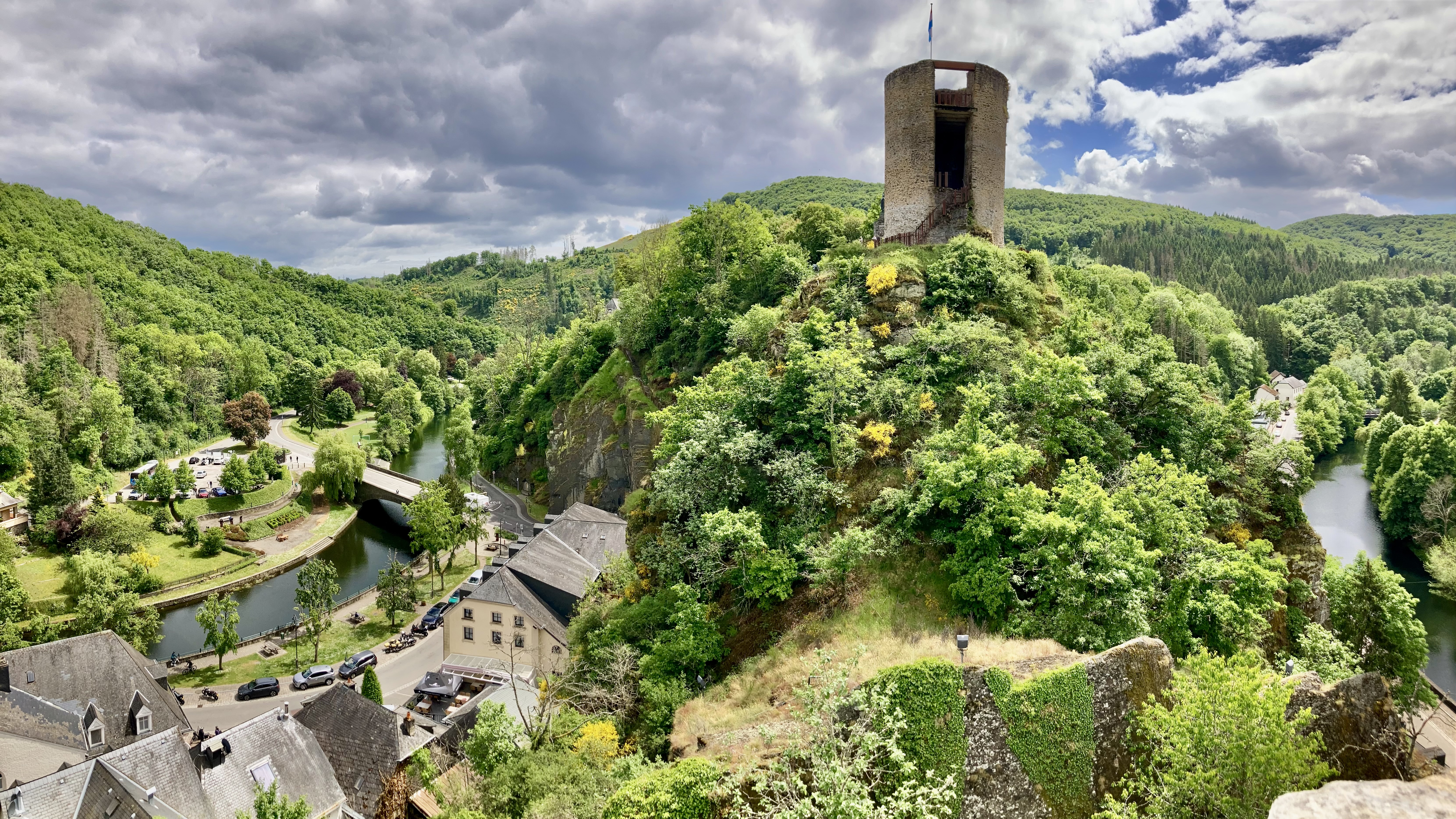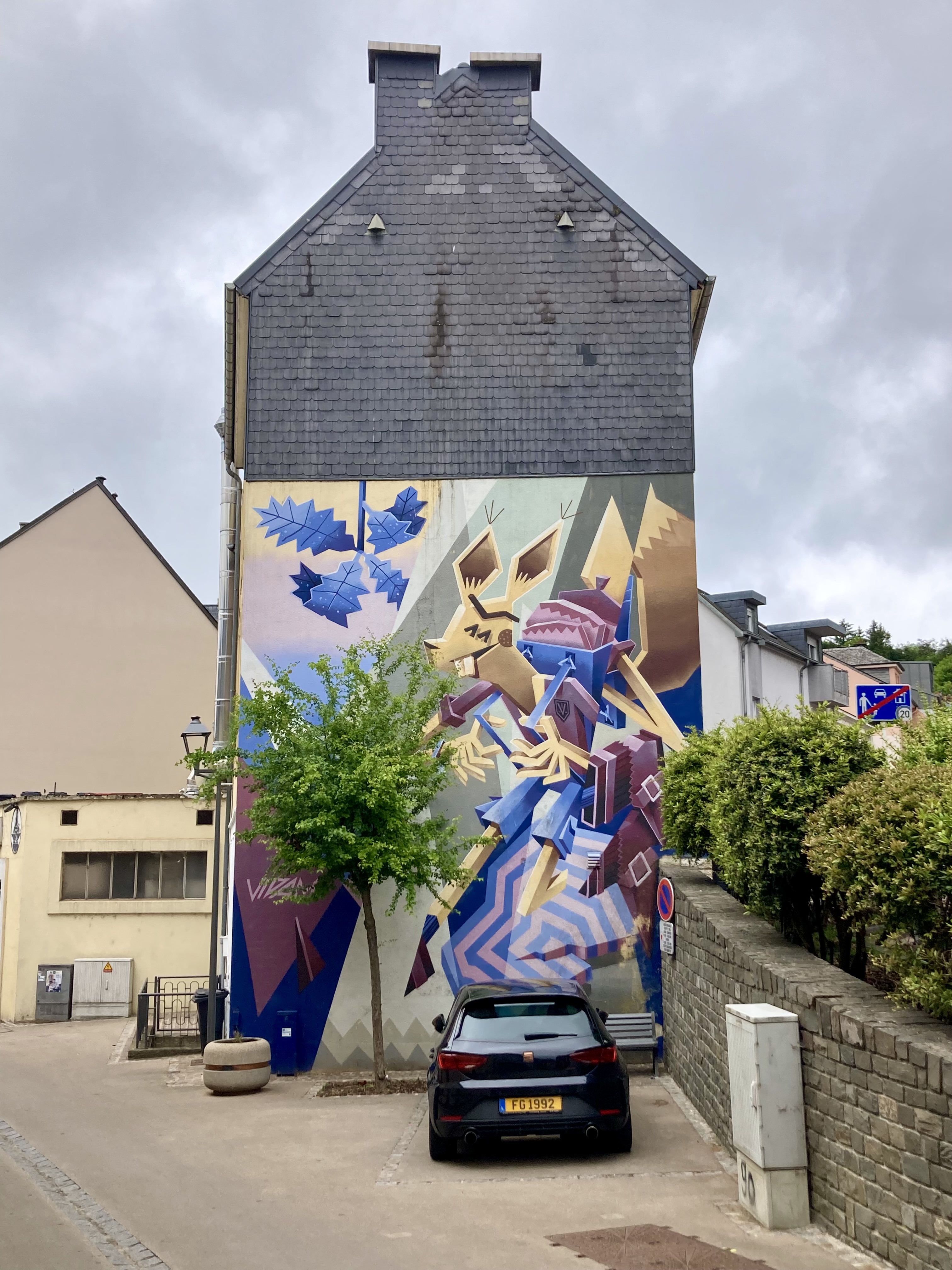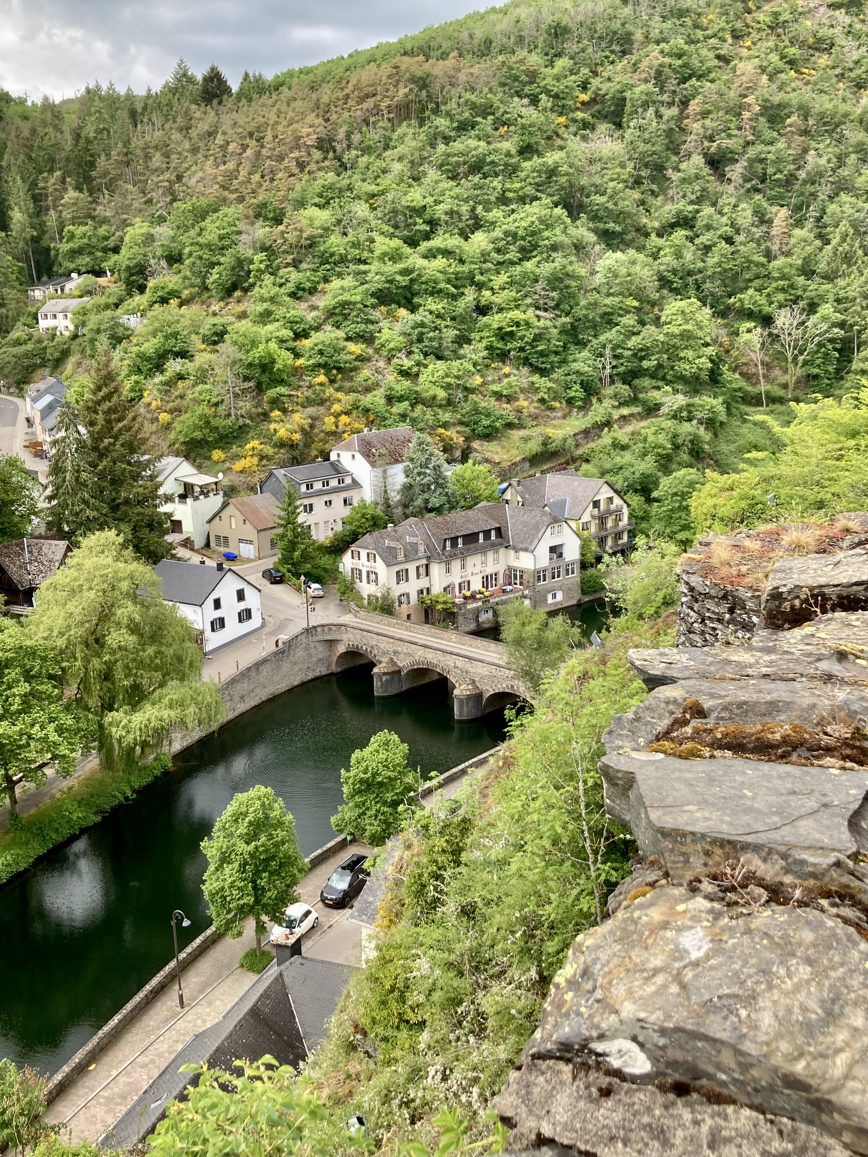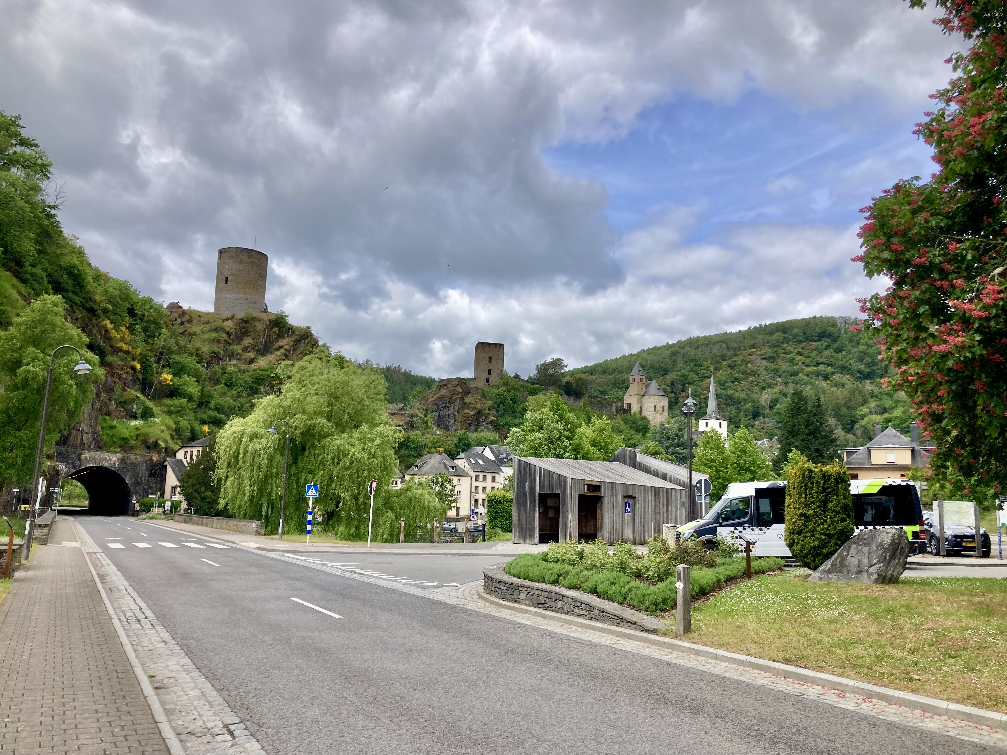 Luxemburg haben wir schon einmal gestreift vor ein paar Jahren, aber damals nur die Stadt Luxemburg besucht. Nun ging es ins sagenumwobene Mullertal. Was wir hier wandernd erlebten, sprengt fast unsere Vorstellungskraft. Durch enge Schluchten und Felsblöcke zwängten wir uns. Manchmal ging es nur quer hindurch und den Rucksack musste man abnehmen. Wunderbar. Auch die berühmte Wolfsschlucht haben wir durchwandert und dann noch eine grössere Velotour zur Aussichtsplattform über dem Stausee abgestrampelt. Prächtig auch der Stellplatz am Wasser in Esch sur Sûre und die Burgruine hoch über dem Dorf. Allen bekannt aus der Geschichte ist Diekirch (Ardennenschlacht), wo wir das Kriegsmuseum besuchten und dann mit dem Züglein (ÖV ist in Luxemburg gratis…) nach Ettelbruck ruckelten, um die wunderbaren Wandmalereien an den Häuserfassaden zu bestaunen.