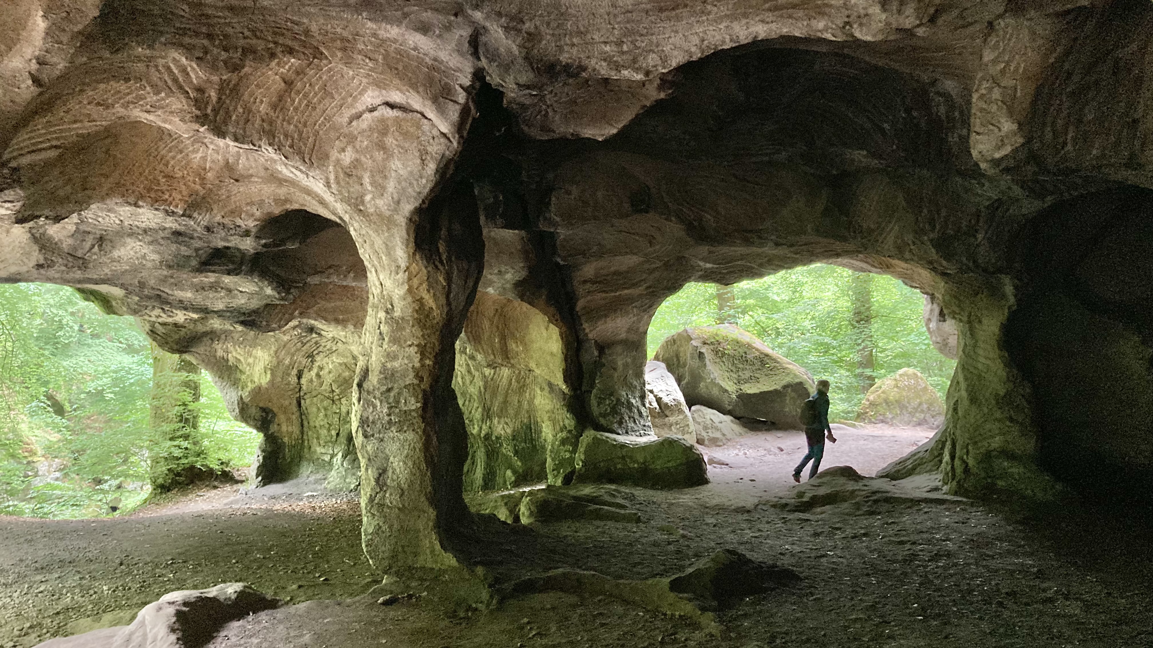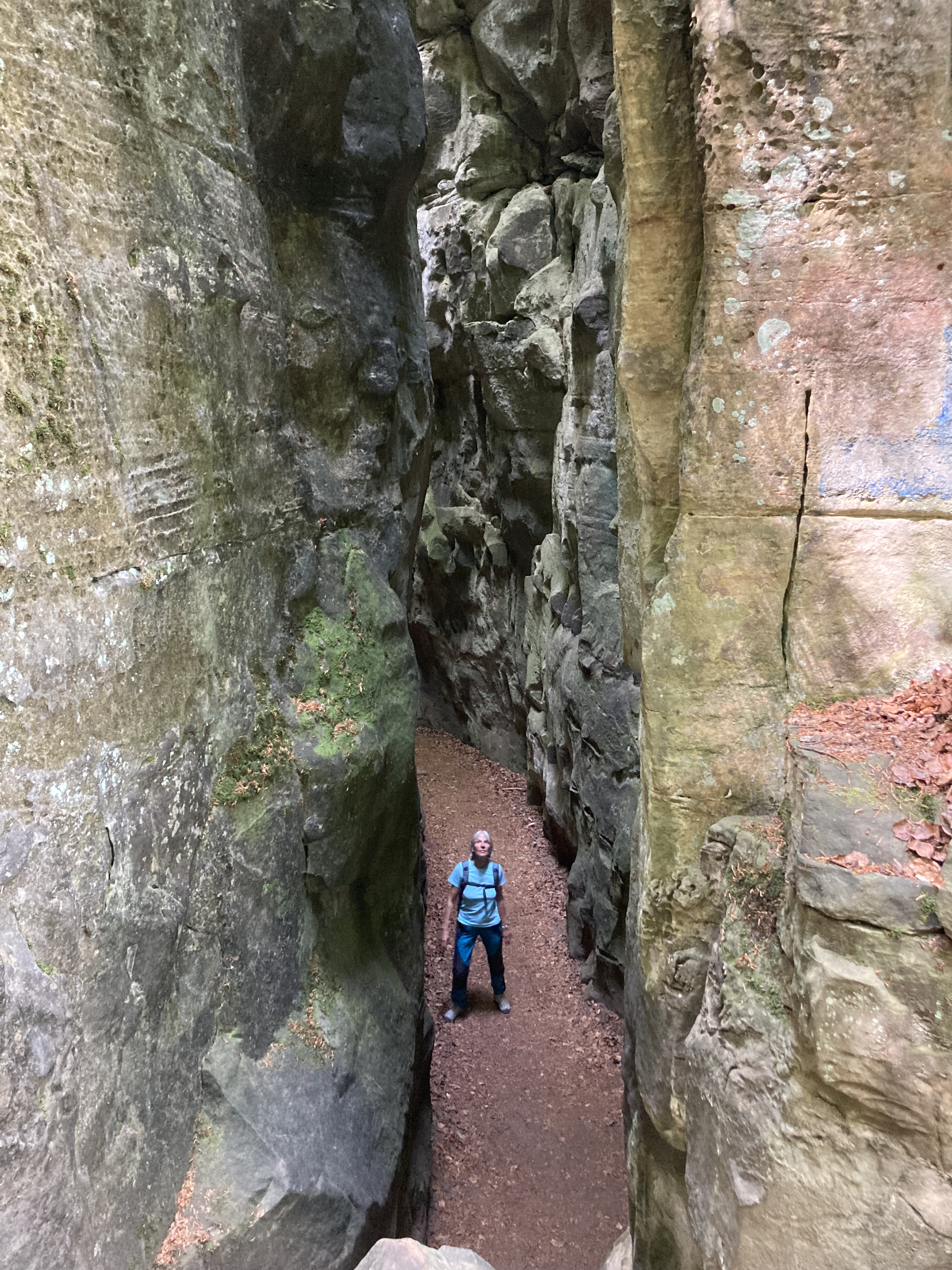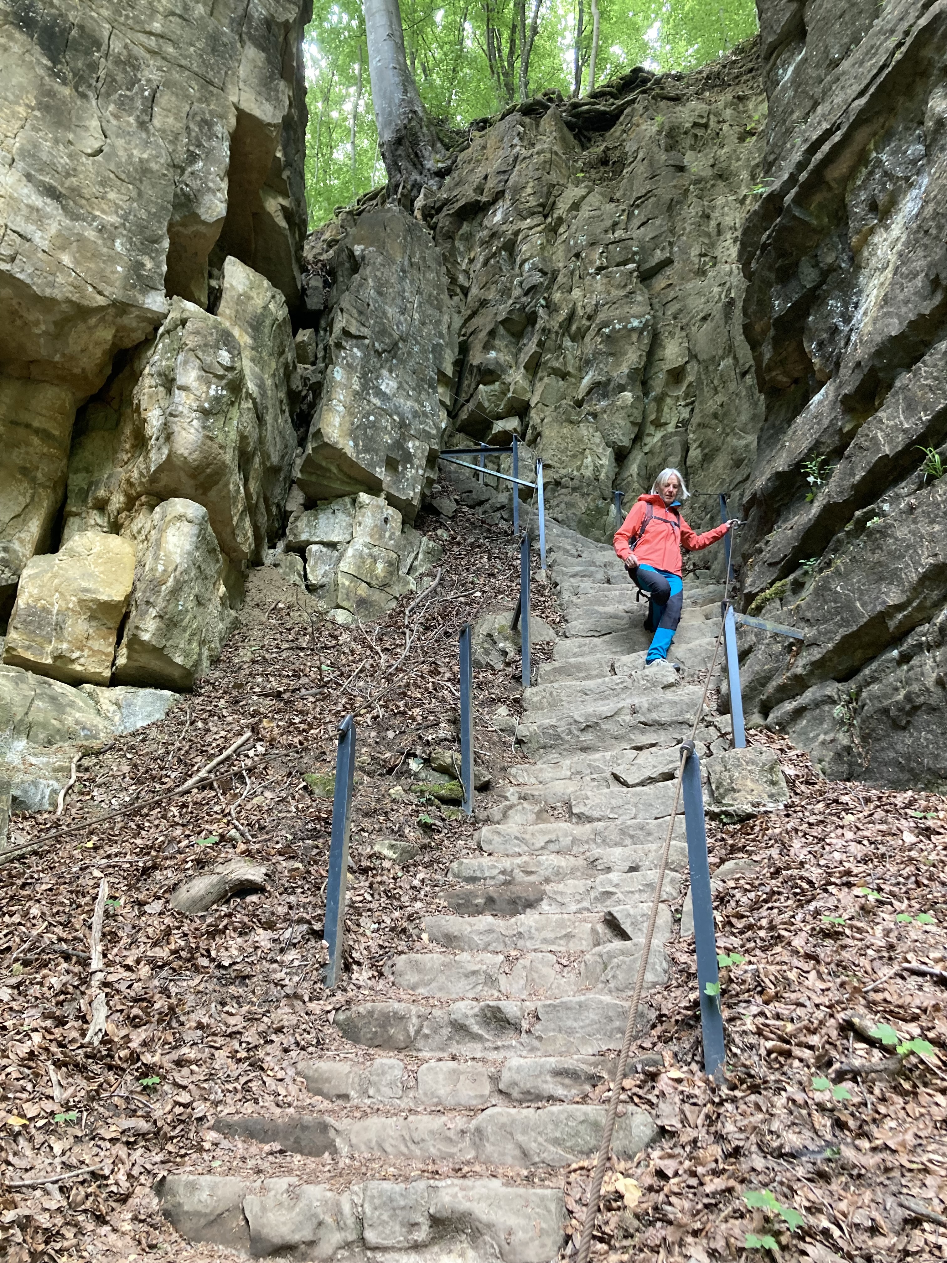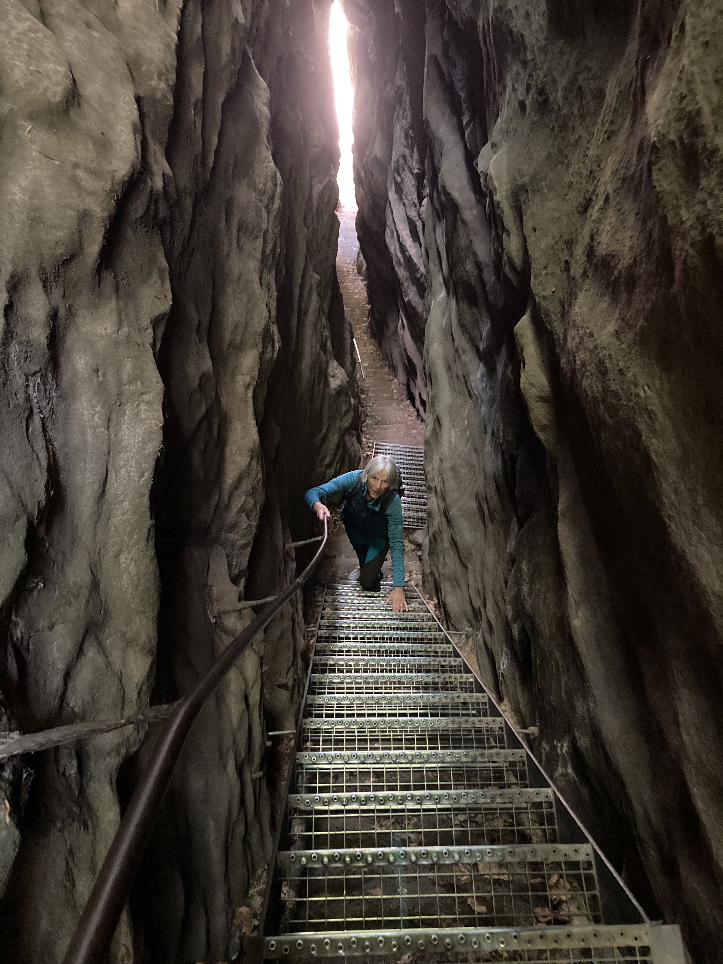 Luxemburg haben wir schon einmal gestreift vor ein paar Jahren, aber damals nur die Stadt Luxemburg besucht. Nun ging es ins sagenumwobene Mullertal. Was wir hier wandernd erlebten, sprengt fast unsere Vorstellungskraft. Durch enge Schluchten und Felsblöcke zwängten wir uns. Manchmal ging es nur quer hindurch und den Rucksack musste man abnehmen. Wunderbar. Auch die berühmte Wolfsschlucht haben wir durchwandert und dann noch eine grössere Velotour zur Aussichtsplattform über dem Stausee abgestrampelt. Prächtig auch der Stellplatz am Wasser in Esch sur Sûre und die Burgruine hoch über dem Dorf. Allen bekannt aus der Geschichte ist Diekirch (Ardennenschlacht), wo wir das Kriegsmuseum besuchten und dann mit dem Züglein (ÖV ist in Luxemburg gratis…) nach Ettelbruck ruckelten, um die wunderbaren Wandmalereien an den Häuserfassaden zu bestaunen.