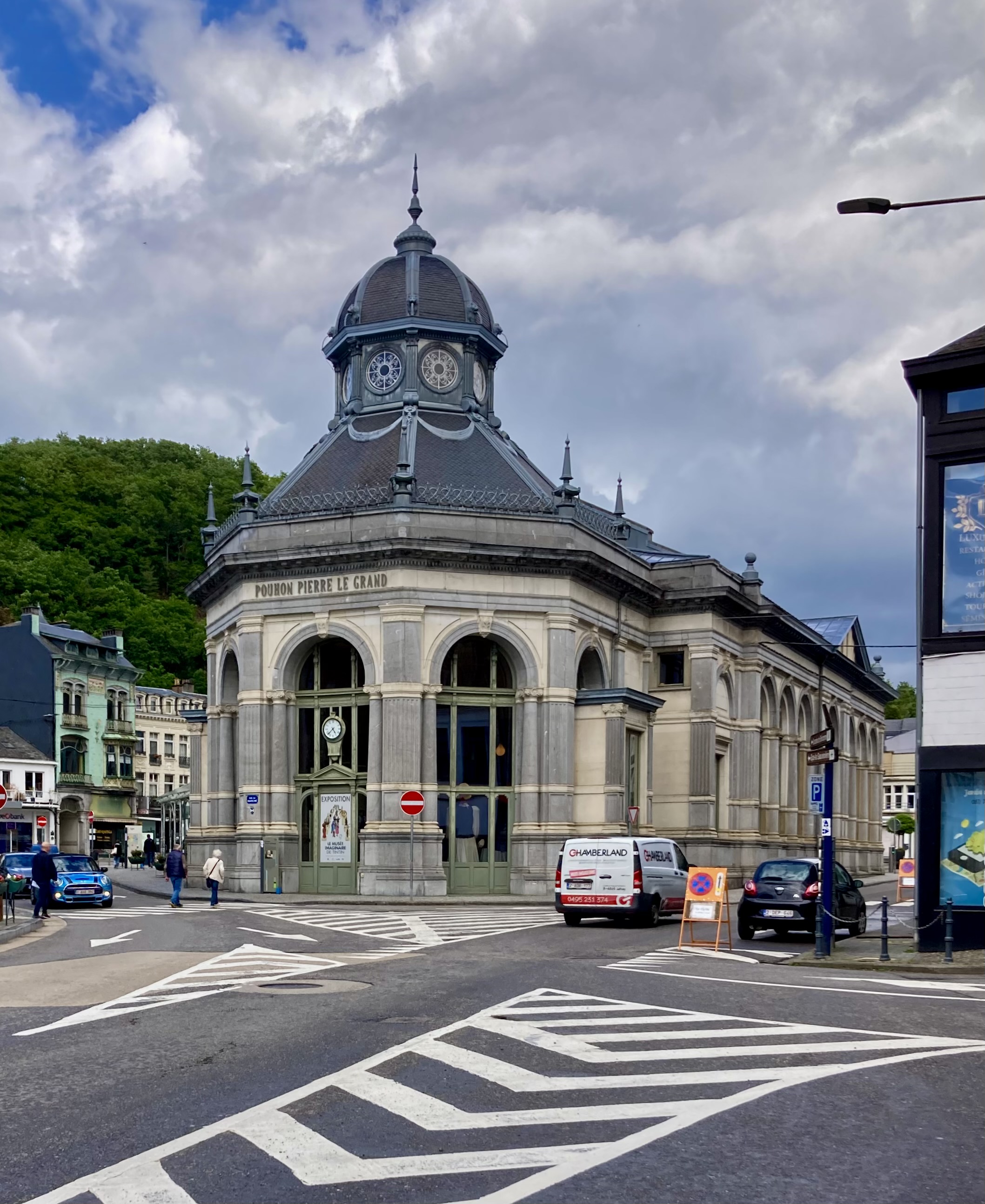 Nach sieben Tagen Luxemburg führte uns Elvis 156 km nördlich nach Spa. Unser erster Stellplatz, fast an der Rennstrecke Spa Francorchamps, war leider wegen geschlossener Zufahrtstrasse nicht erreichbar. Ich konnte an diesem Tag leider die angeblich schönste Formel-1-Strecke der Welt nicht mit dem Radl abfahren, was an diesem Dienstag Abend für 10€ möglich gewesen wäre. Schade. So fanden wir etwas ausserhalb Spa einen Campingplatz, wo wir uns mit Rad und Zug nach Spa bewegten. Selbstverständlich war hier in der Therme ein Wellnesstag Pflicht, an diesem berühmten Geburtsort von Wellness und Entspannung. Von hier kommt das Wort Spa eben: Sanus per Aqua. Das Städtchen glänzt mit prächtigen opulenten Prachtbauten, die aber etwas in die Jahre gekommen sind. Sie sind am renovieren…