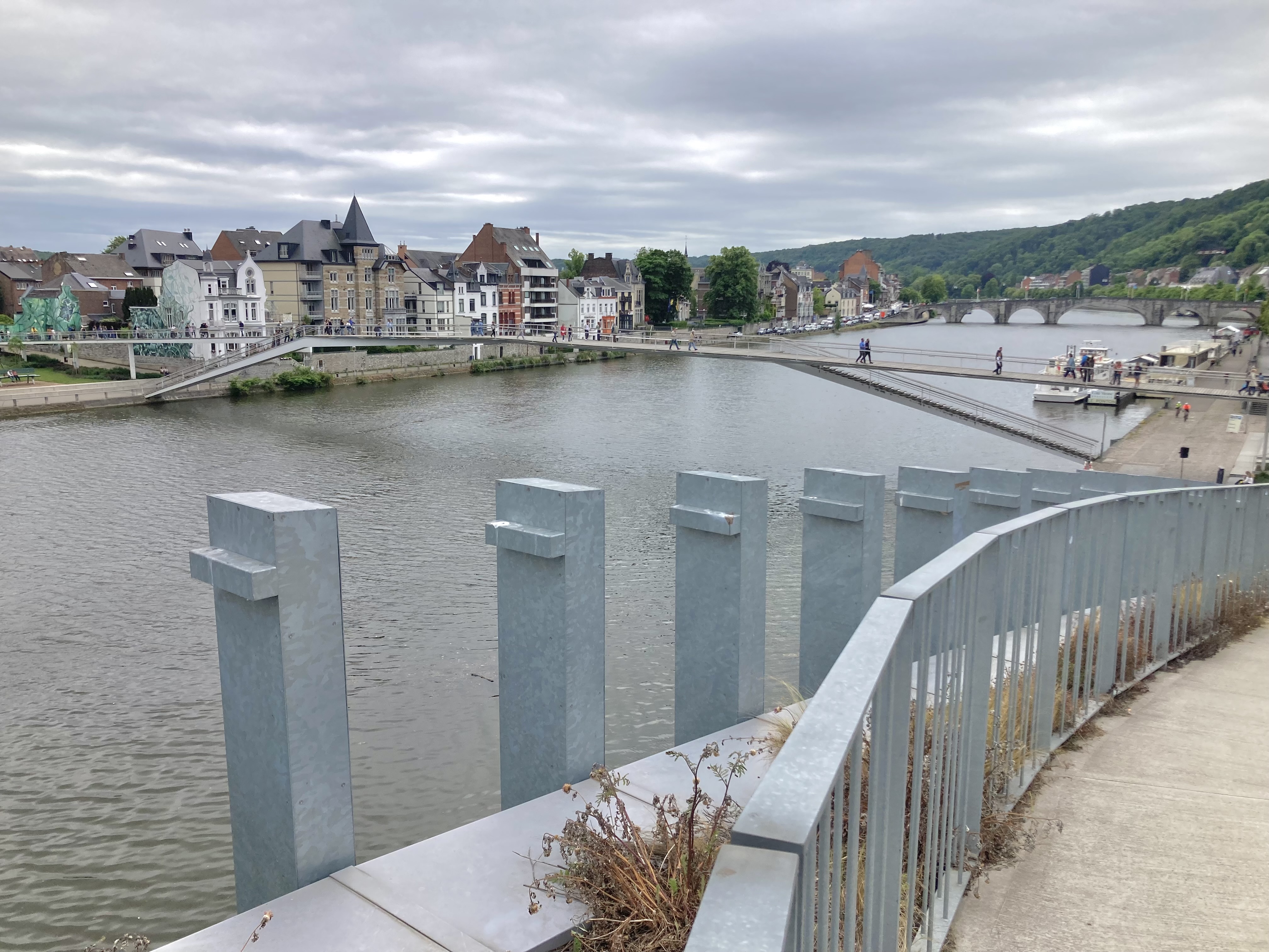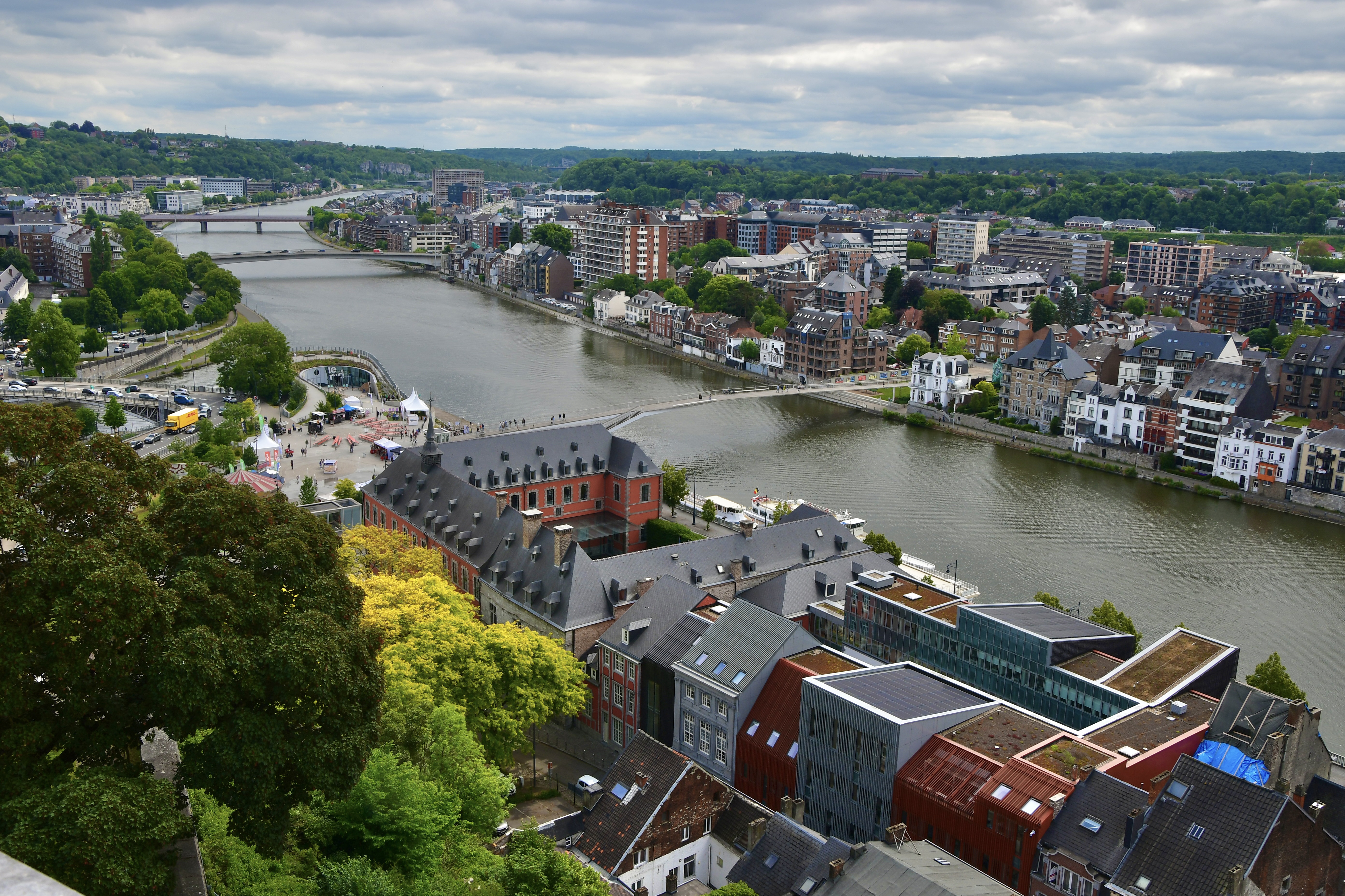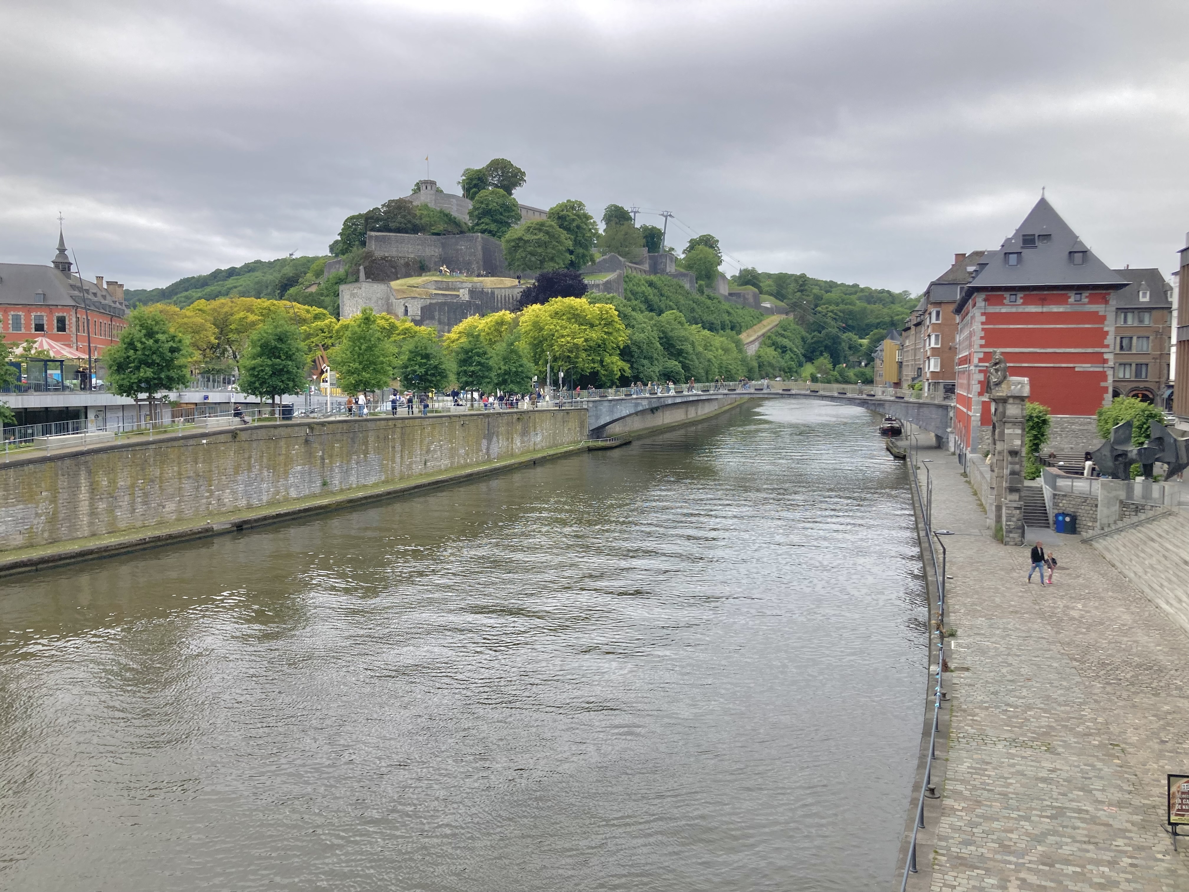 126 km westlich rief Namur. Hier fliessen die Maas und die Sambre zusammen. Sehr ähnlich wie in Koblenz am Deutschen Eck. Auch hier wie in Koblenz eine riesige Festung hoch über der Stadt, die man auch per Seilbähnli erreichen kann. Wir Schweizer laufen hoch… war sehr warm und sportlich. In der Stadt fand über das Wochenende ein Strassenkünstler Festival statt. So wurden wir mit prächtigen Darbietungen an jeder Ecke verwöhnt. Auch die Innenstadt lebendig und sehr sehenswert. Da ja Belgien als das Land der Biere und der Schokolade gilt, haben wir in einer Seitengasse einen Schoggikünstler entdeckt, der eine kleine Manufaktur „Pralinez moi“ hat und edelste Kunststücke von Pralinen herstellt und weltbekannt ist. Gleich haben wir eine Schachtel dieser Kunstwerke gekauft und mit nach Hause genommen. Es reut uns fast zum Essen…