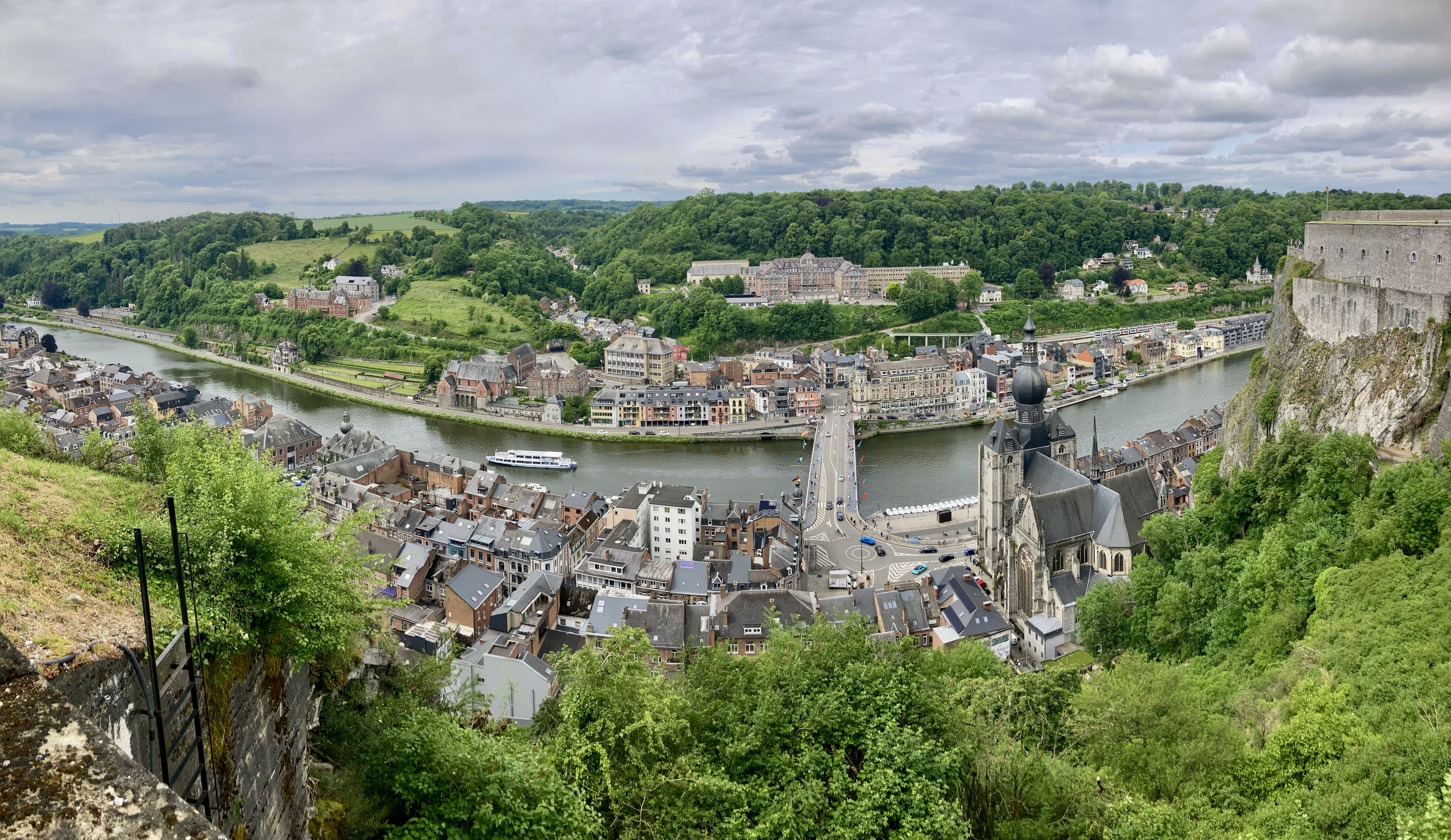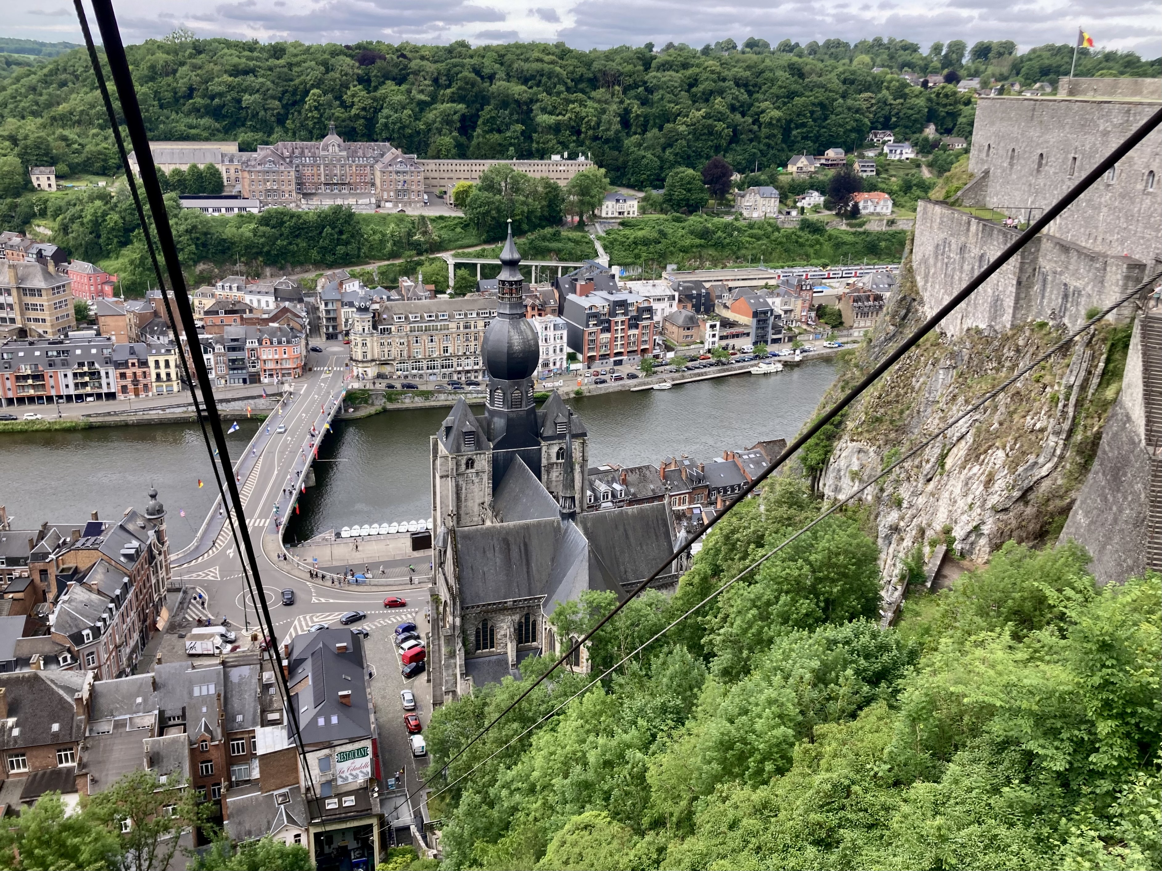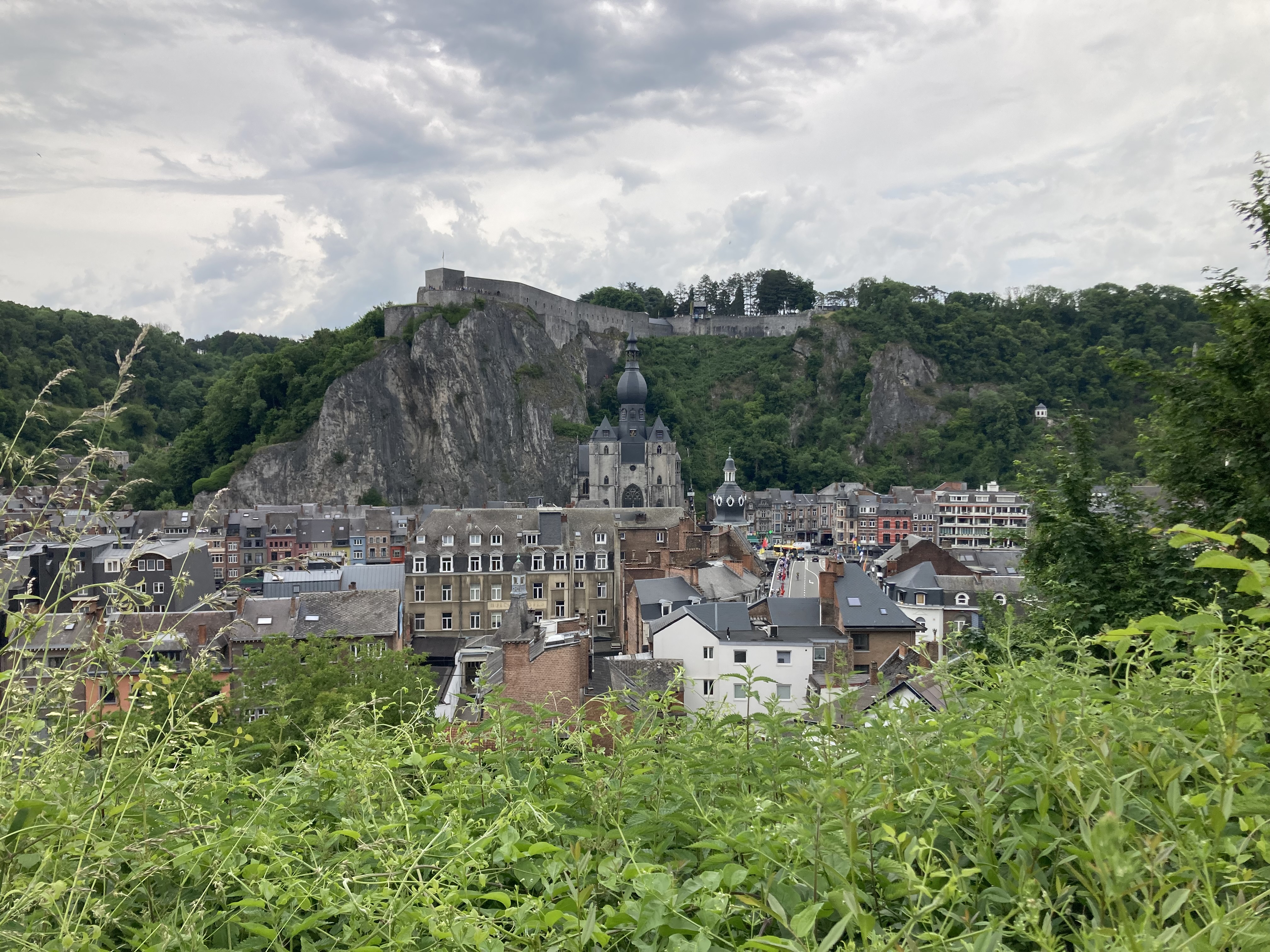 Nur 26 km südlich von Namur liegt das Städtchen Dinant, der absolute Hotspot für die Touris. Selbstverständlich auch für uns. Nur gerade zwei Kilometer ausserhalb Dinant ein prächtiger Stellplatz am Wasser an der Maas gelegen. Da konnte ich auch mal den Grill anwerfen und ein prächtiges Stück Filet auf rosa trimmen… Dinant ist wirklich eine Augenweide. Über der Stadt thront eindrucksvoll auf einem Felsen die Zitadelle. Selbstverständlich wollten wir die 408 Treppenstufen, anstelle der Schwebebahn, hochlaufen. Doch auch für das Hochlaufen musst du bezahlen, als Eintritt zur Zitadelle. Also nichts wie los gleich auf‘s Bähnli. Ist gleich teuer. Runter marschiert sind wir dann aber schon. Das Museum in der Zitadelle war wirklich einen Besuch wert und der Ausblick auf Dinant sowieso. Und wir sind in der Geschichte Belgiens, vor allem über den ersten Weltkrieg bestens informiert.