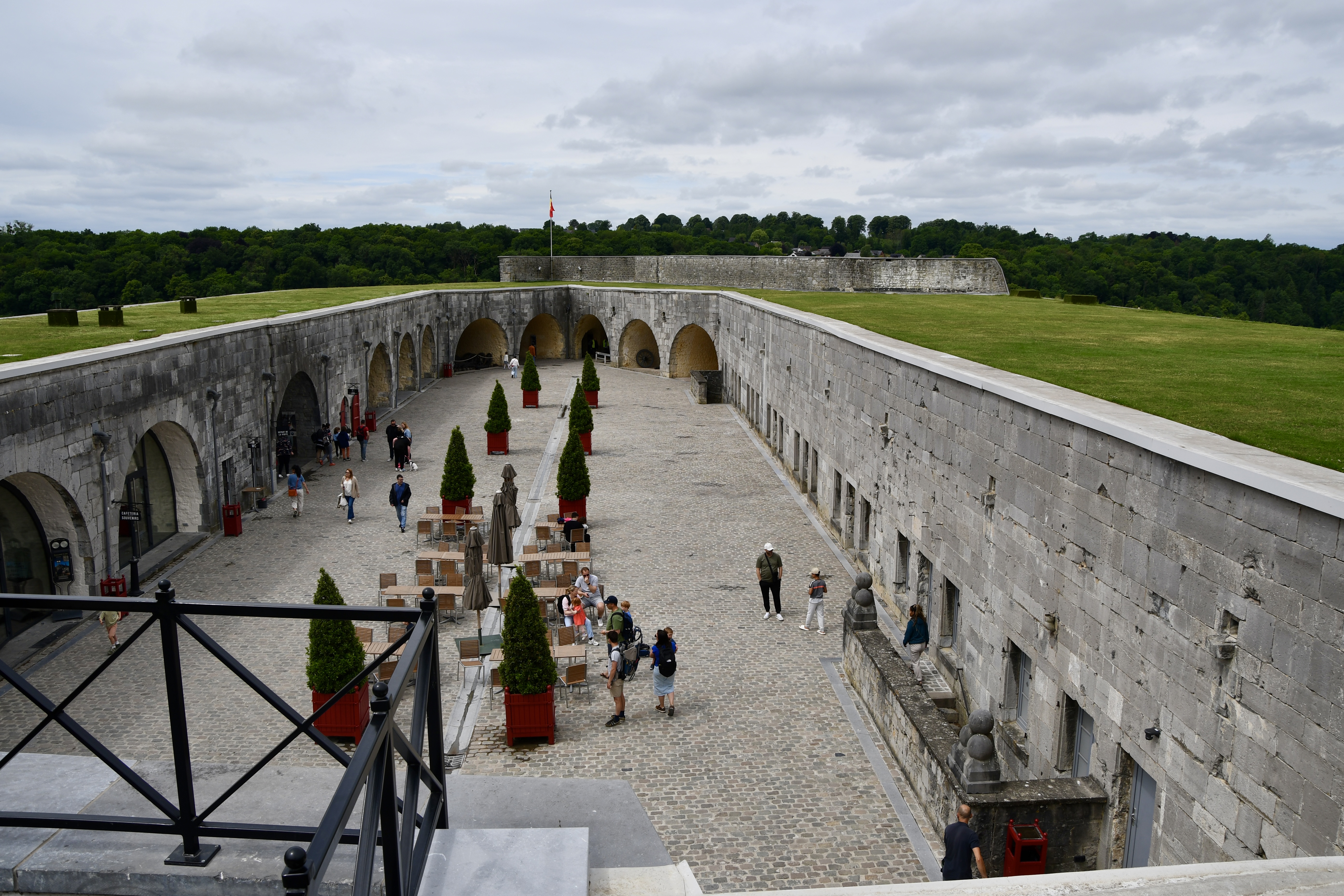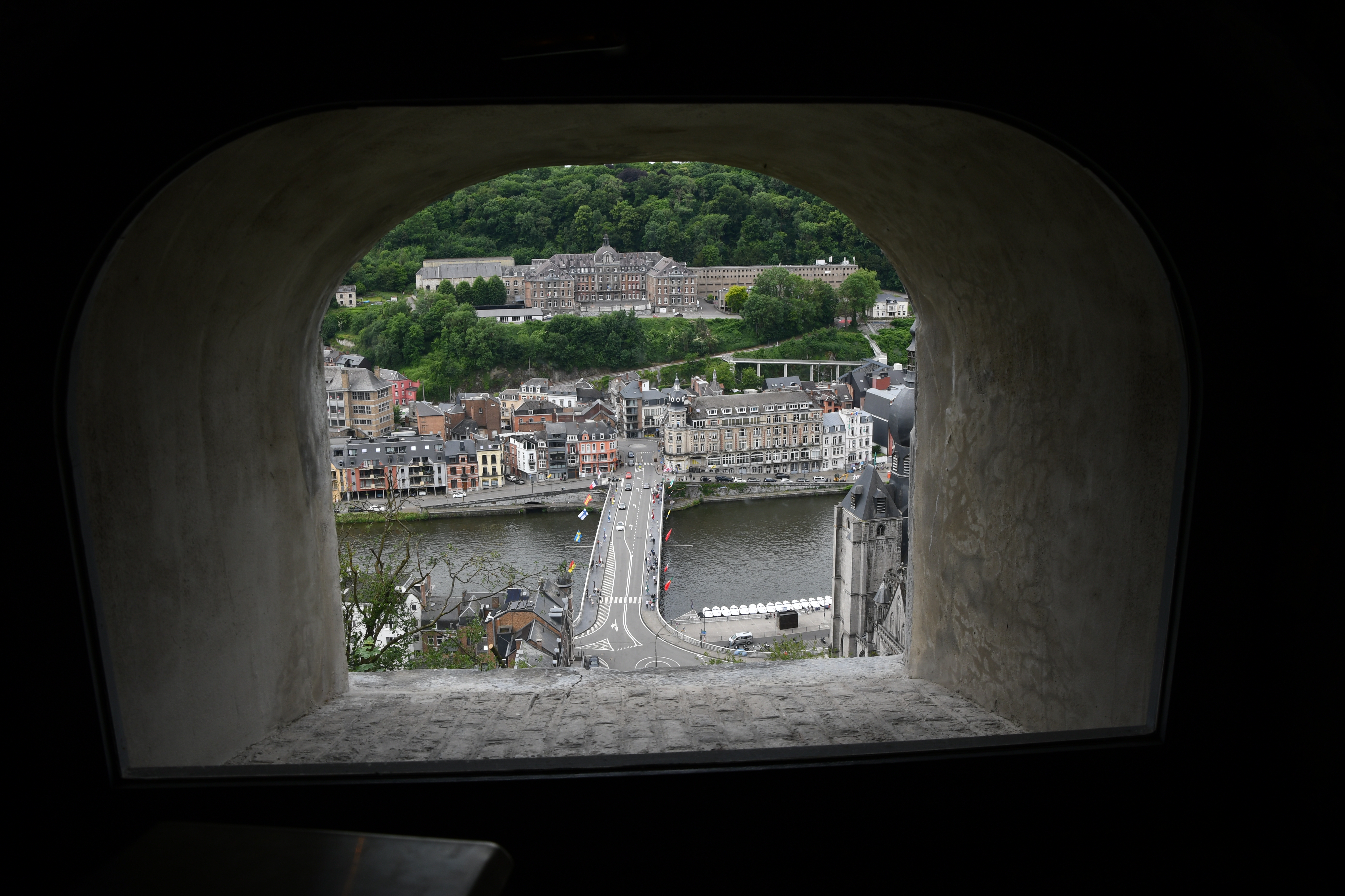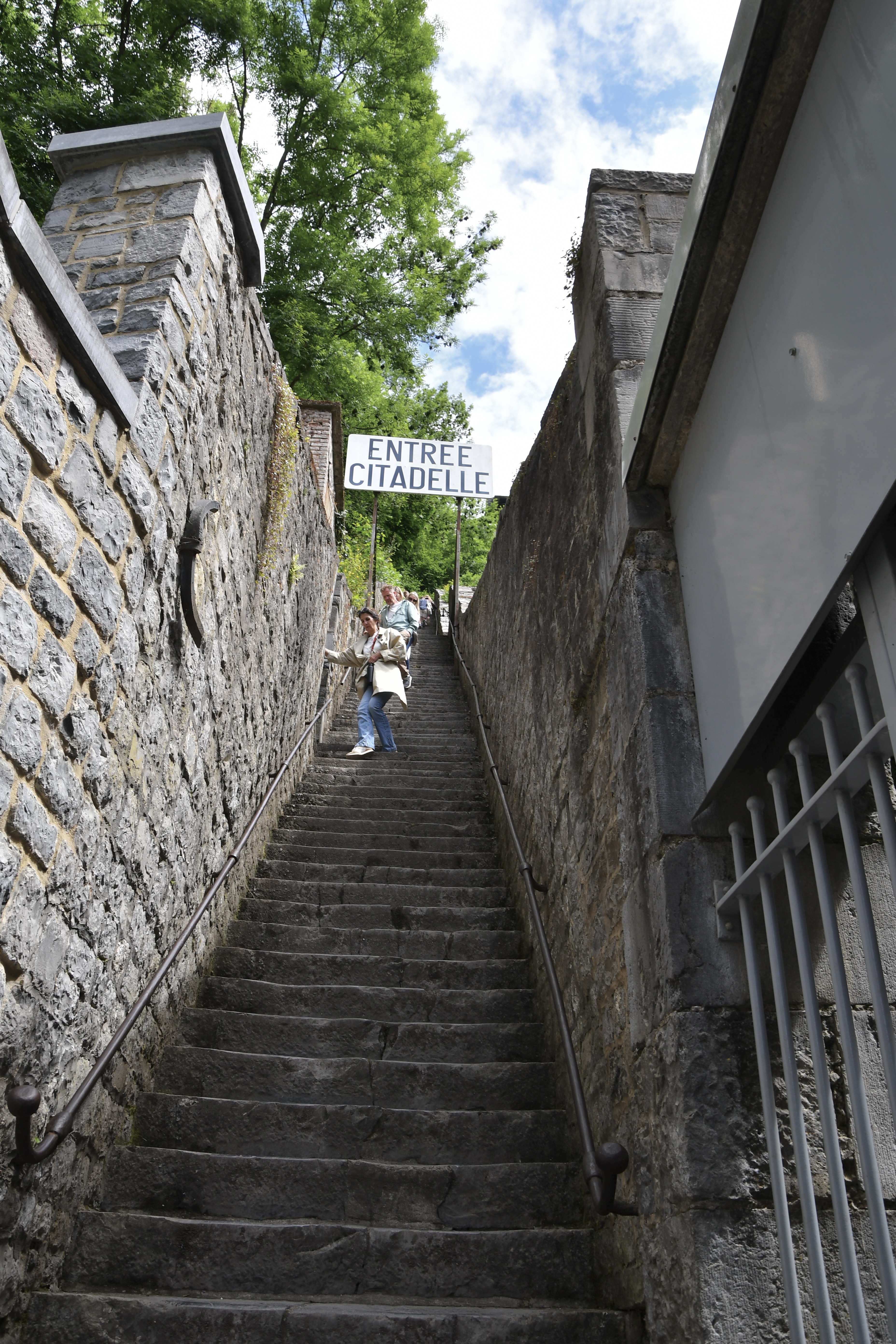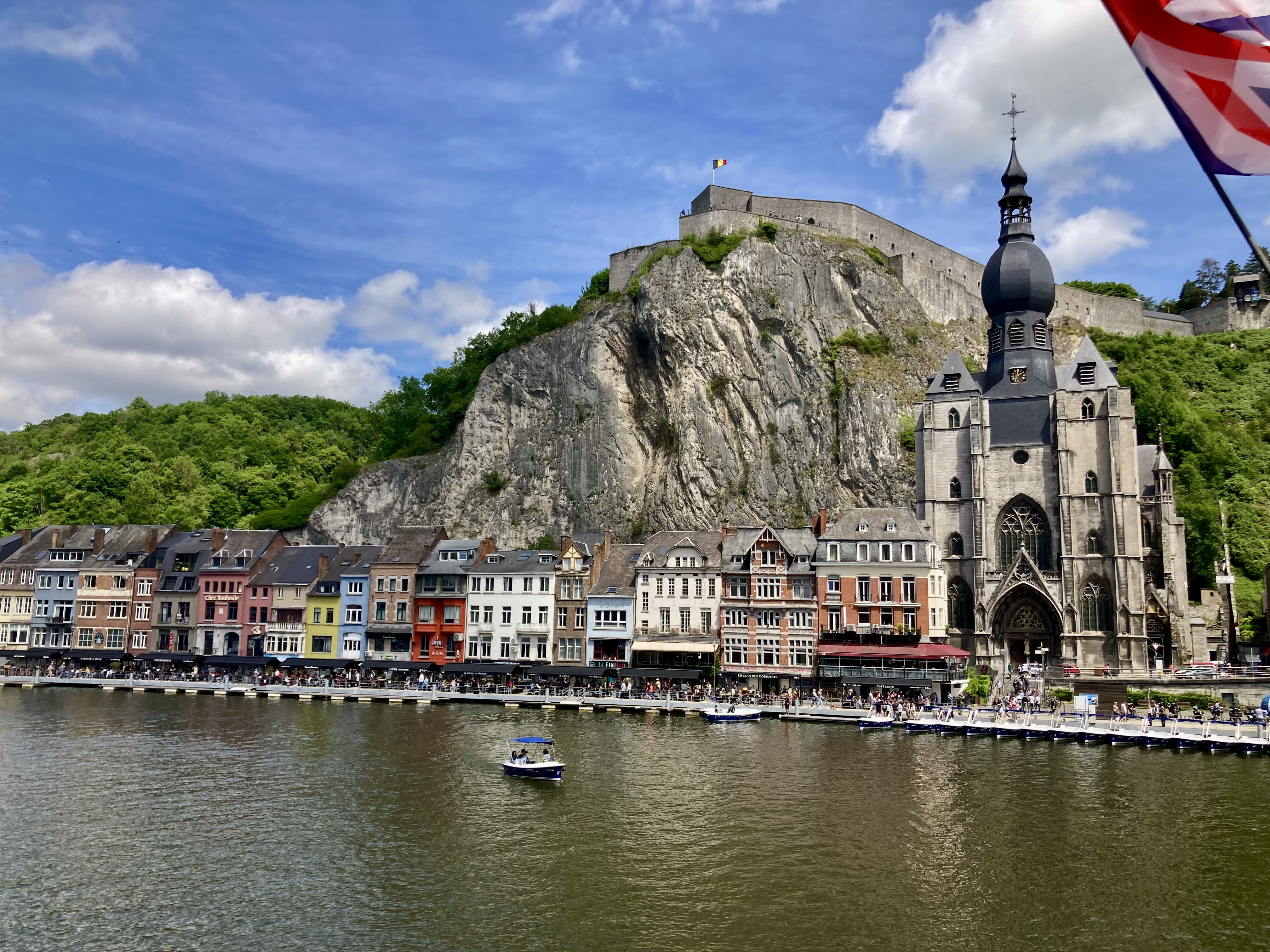 Nur 26 km südlich von Namur liegt das Städtchen Dinant, der absolute Hotspot für die Touris. Selbstverständlich auch für uns. Nur gerade zwei Kilometer ausserhalb Dinant ein prächtiger Stellplatz am Wasser an der Maas gelegen. Da konnte ich auch mal den Grill anwerfen und ein prächtiges Stück Filet auf rosa trimmen… Dinant ist wirklich eine Augenweide. Über der Stadt thront eindrucksvoll auf einem Felsen die Zitadelle. Selbstverständlich wollten wir die 408 Treppenstufen, anstelle der Schwebebahn, hochlaufen. Doch auch für das Hochlaufen musst du bezahlen, als Eintritt zur Zitadelle. Also nichts wie los gleich auf‘s Bähnli. Ist gleich teuer. Runter marschiert sind wir dann aber schon. Das Museum in der Zitadelle war wirklich einen Besuch wert und der Ausblick auf Dinant sowieso. Und wir sind in der Geschichte Belgiens, vor allem über den ersten Weltkrieg bestens informiert.