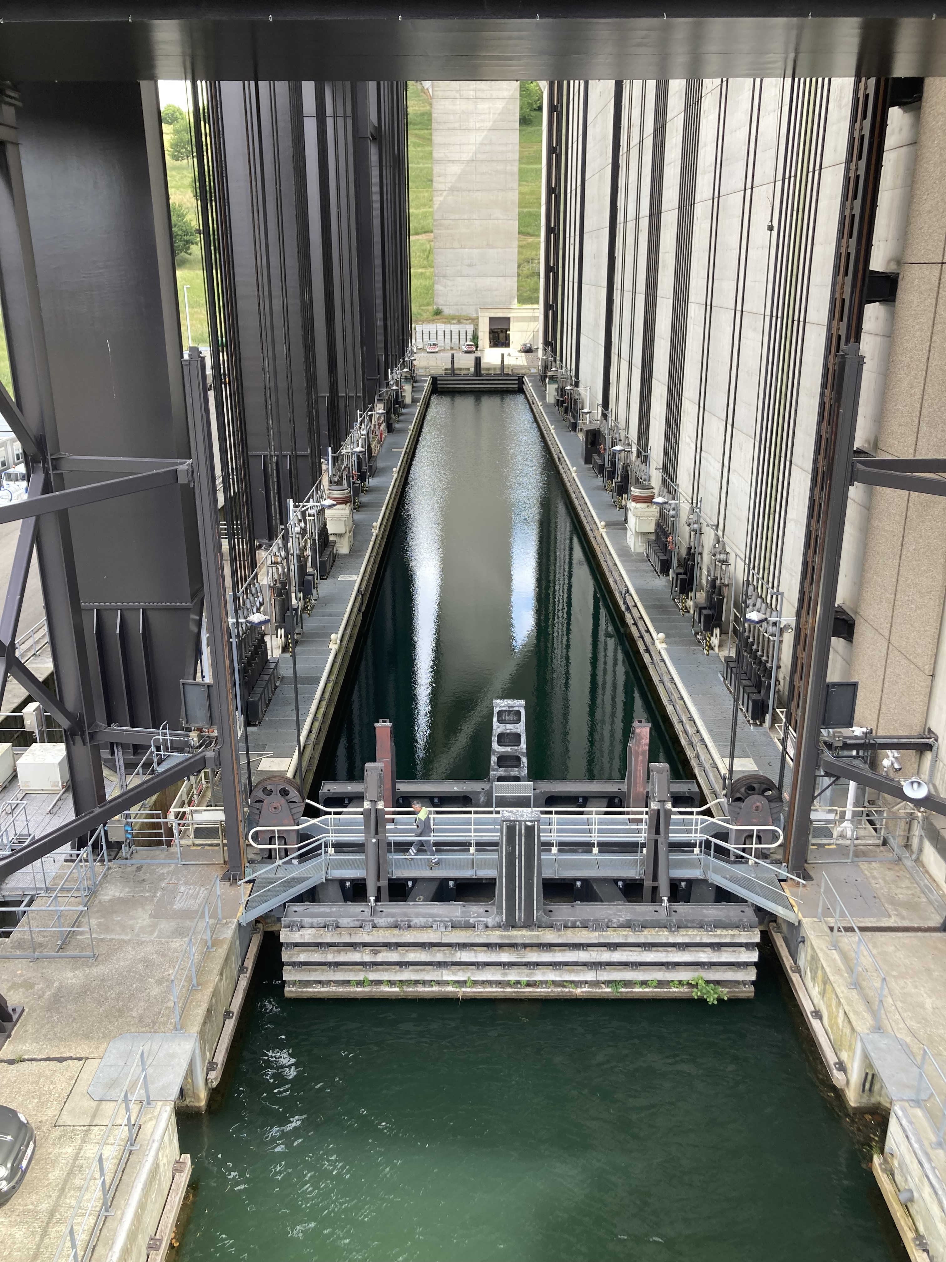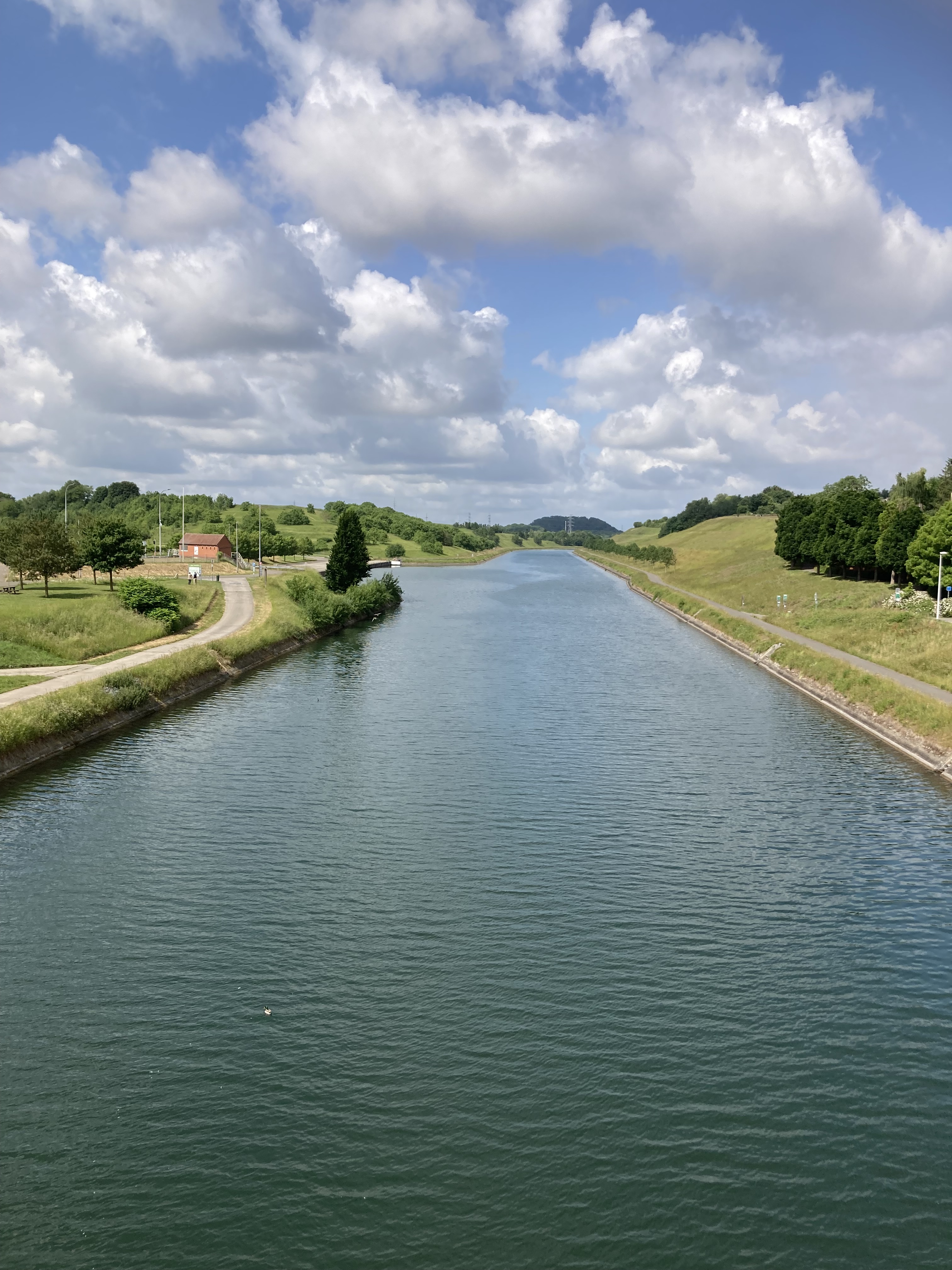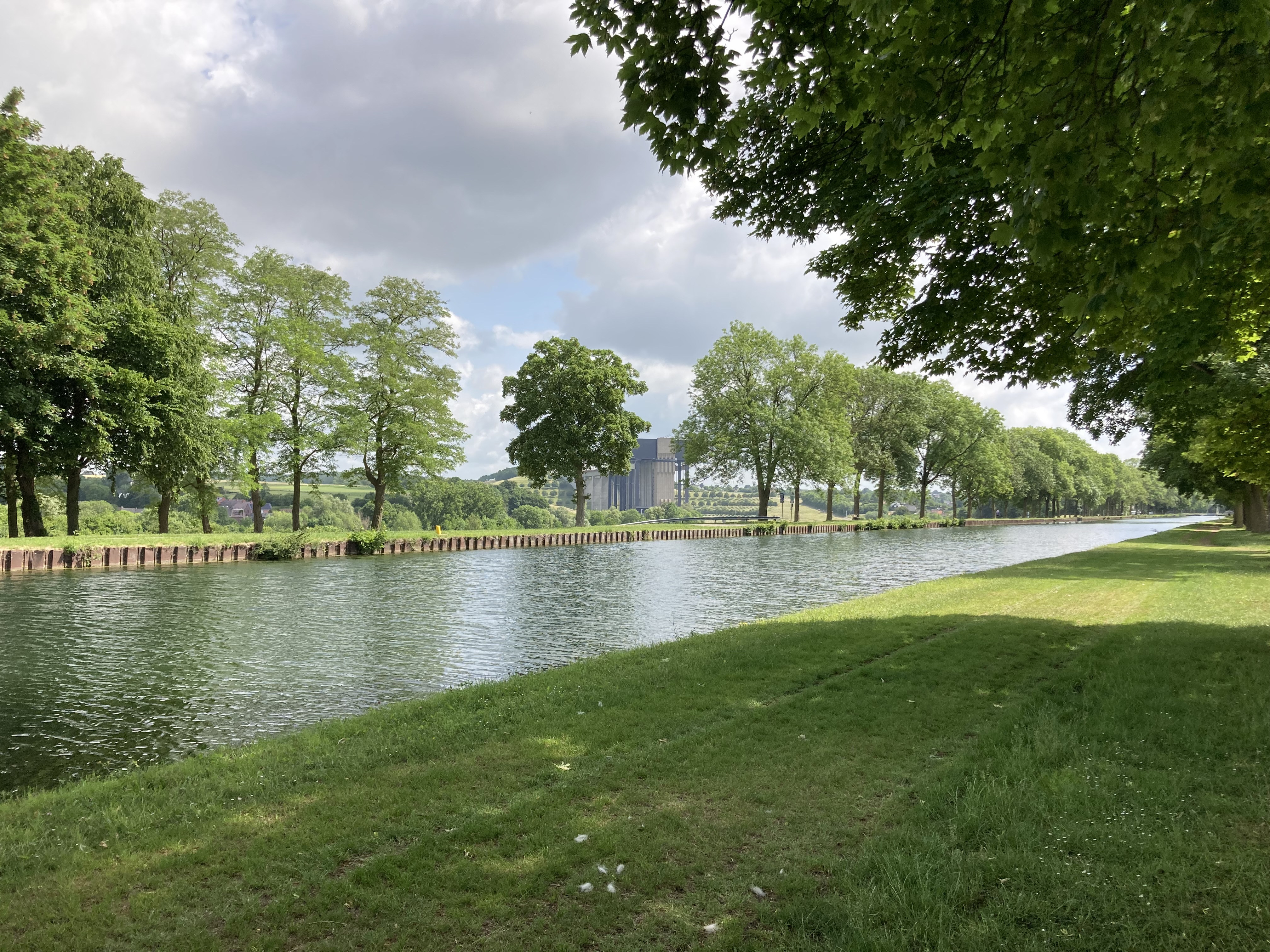 Bevor wir Mons erreichten, fuhren wir zu den eindrücklichen Schiffshebewerken, die ja gerade am Wege lagen. Da waren zuerst das alte, resp. vier alte Hebewerke, die die Schiffe 17m hoben. Nun wurde ein neuer Kanal gebaut mit nur einem Hebewerk, das die Schiffe in einem Zug über 70m hoch hebt in einer Wanne von über 100m Länge. Ein riesiges Bauwerk das Eindruck macht. Was wir auch eindrücklich fanden, war der anschliessende Kanal, der hoch über den Strassen liegt und wir im Kreisel unten durchfahren mussten.