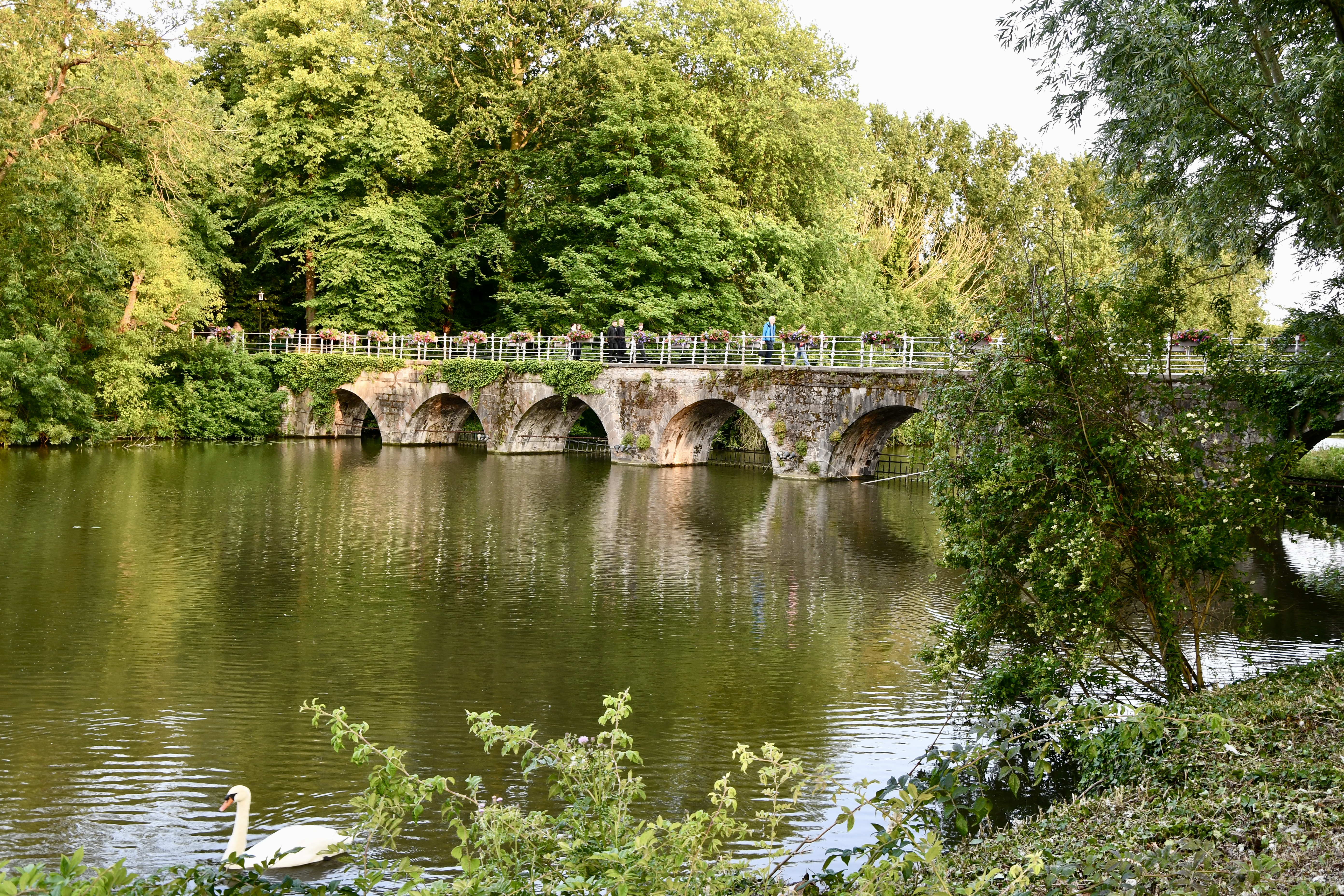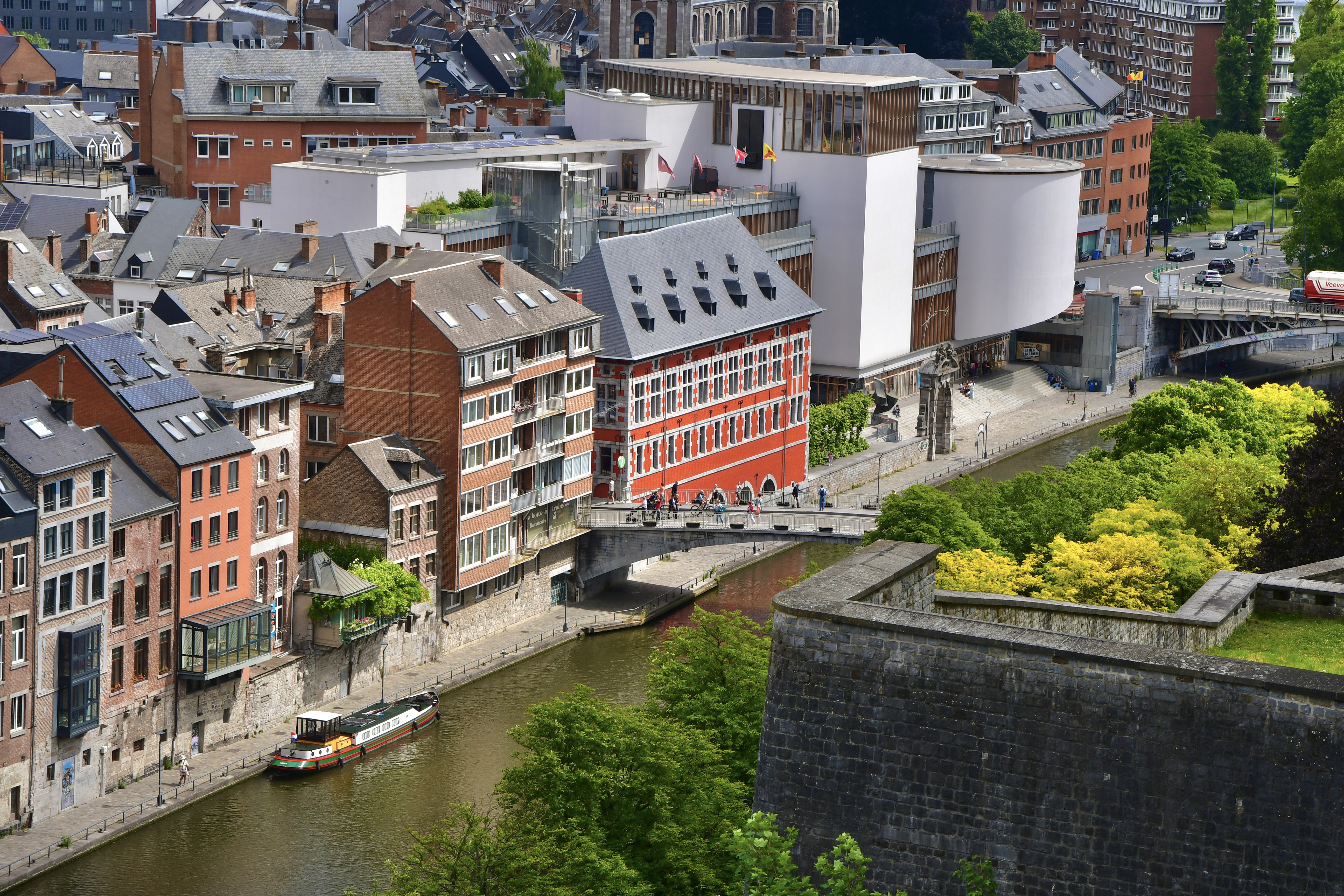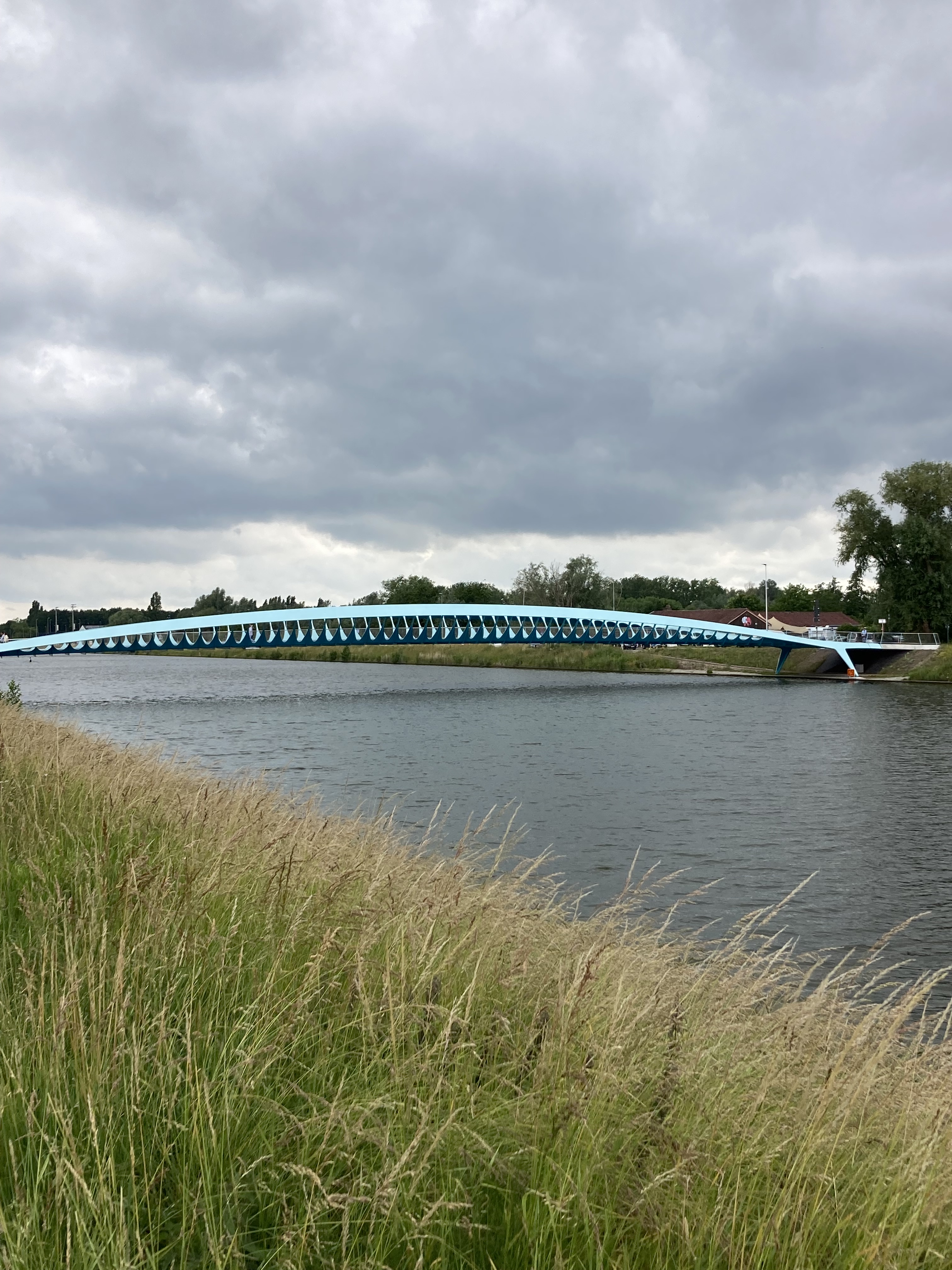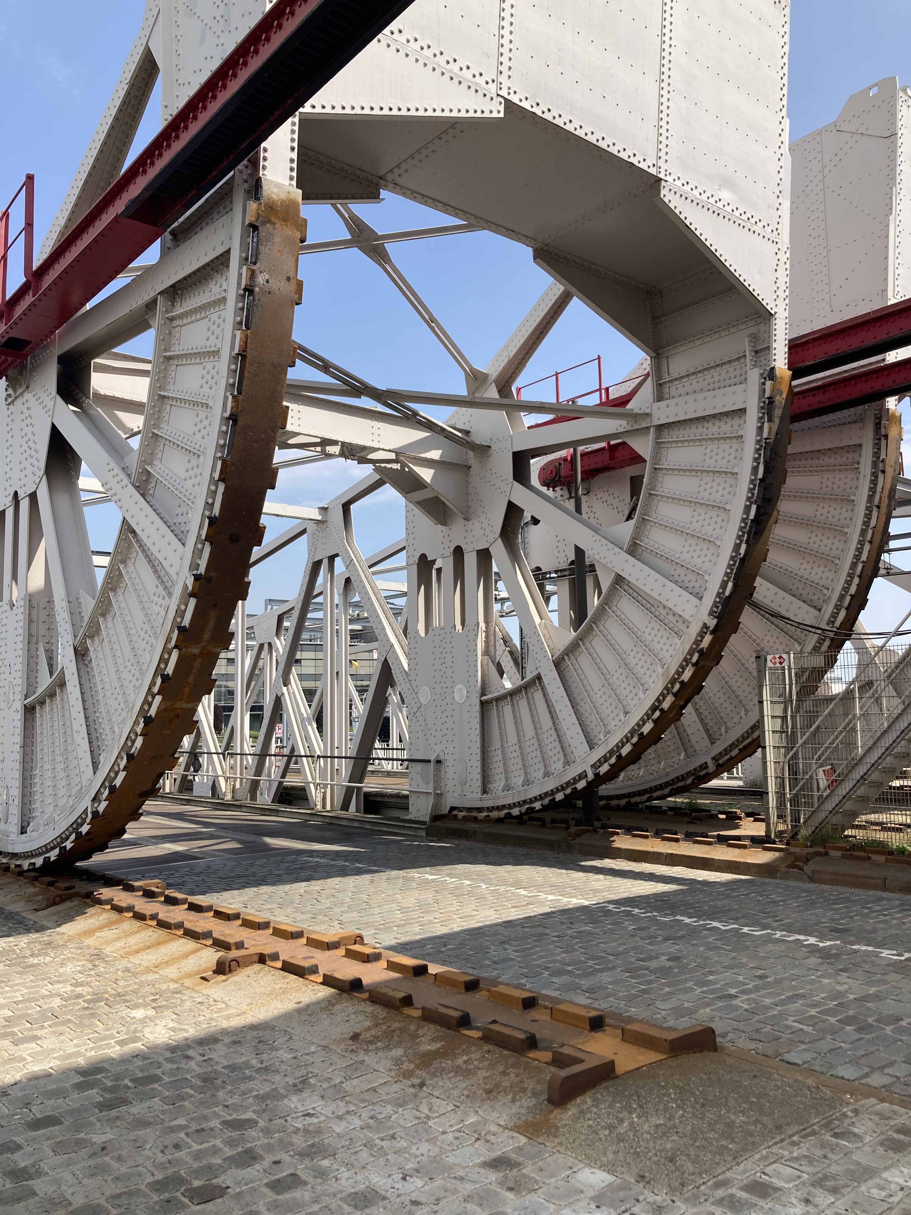 Bevor wir Mons erreichten, fuhren wir zu den eindrücklichen Schiffshebewerken, die ja gerade am Wege lagen. Da waren zuerst das alte, resp. vier alte Hebewerke, die die Schiffe 17m hoben. Nun wurde ein neuer Kanal gebaut mit nur einem Hebewerk, das die Schiffe in einem Zug über 70m hoch hebt in einer Wanne von über 100m Länge. Ein riesiges Bauwerk das Eindruck macht. Was wir auch eindrücklich fanden, war der anschliessende Kanal, der hoch über den Strassen liegt und wir im Kreisel unten durchfahren mussten.