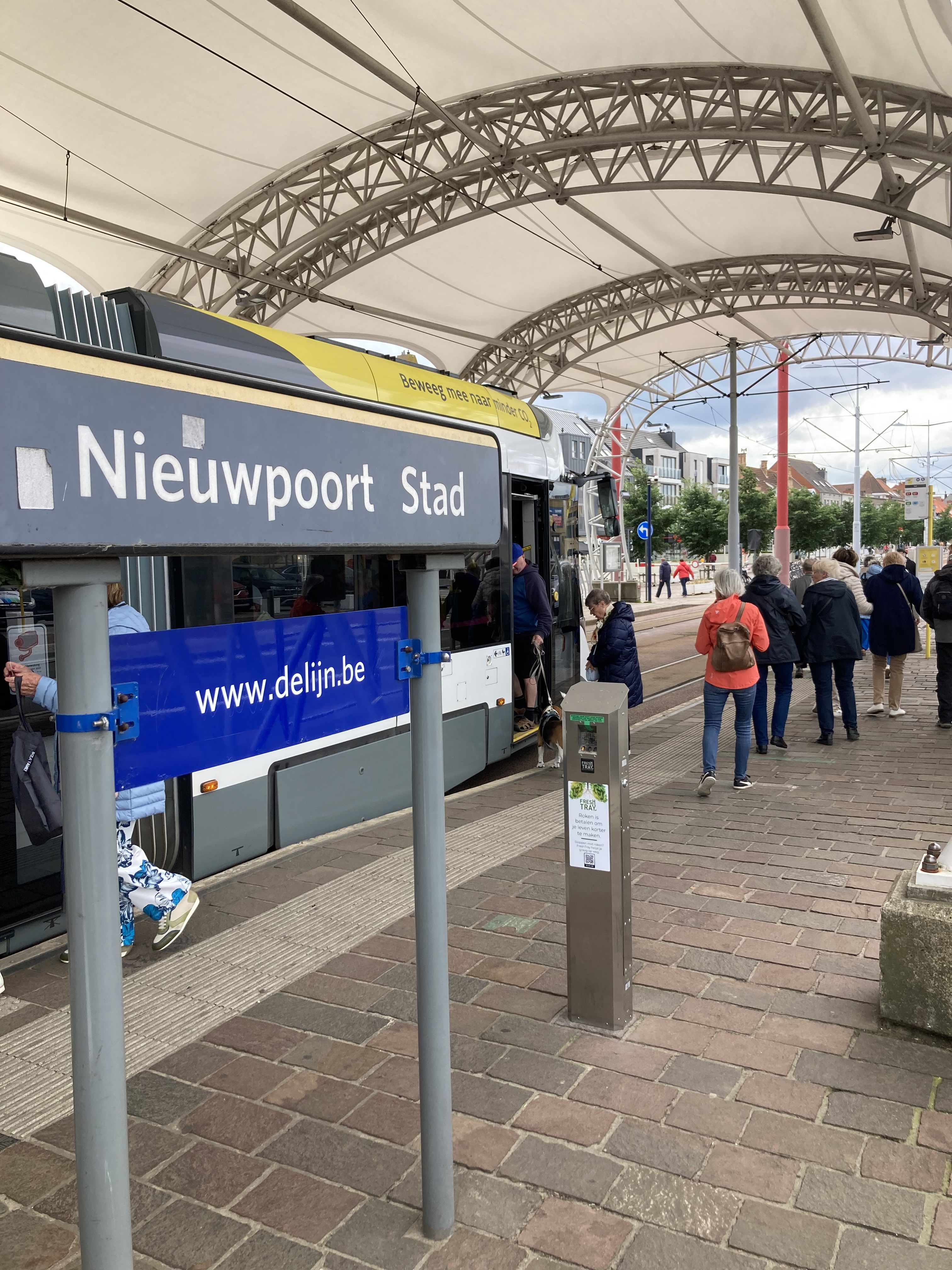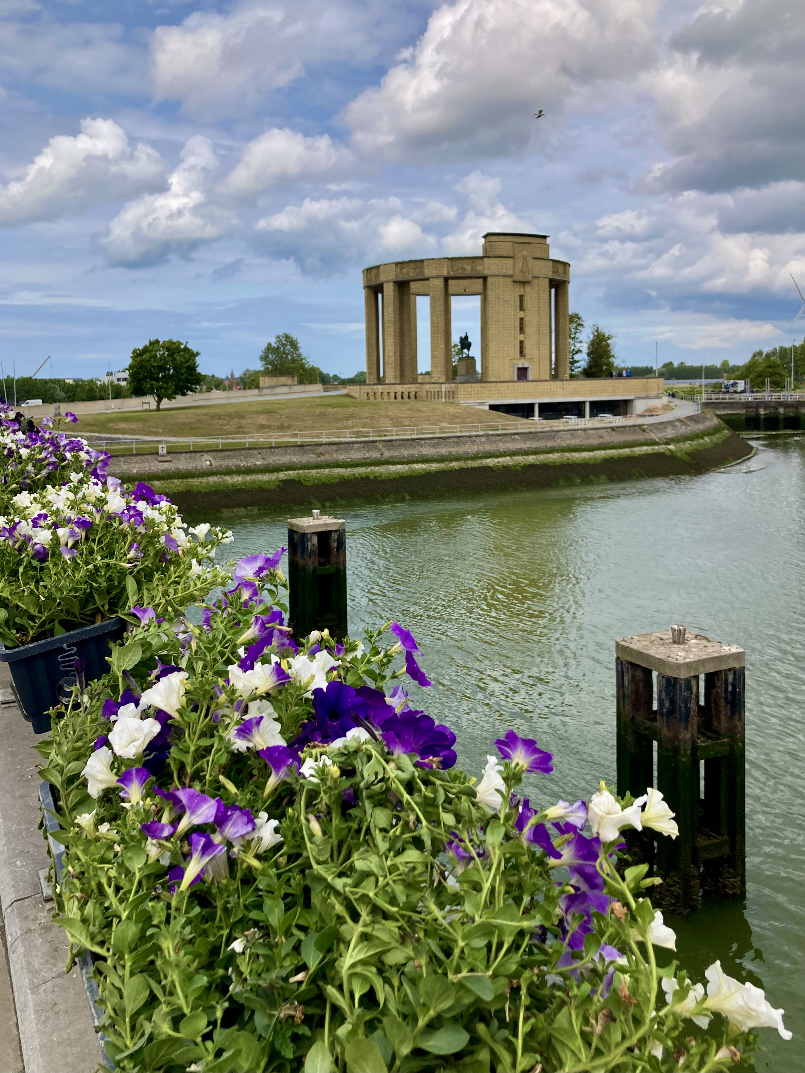 Nur gerade 33 km waren es nach Nieuwpoort am Meer. Belgien grenzt an die Nordsee und nennt sich einen rund 70 km langen Küstenstreifen sein eigen. Erschlossen von einem Küstentram, die längste Tramlinie Europas. Für Rentner gibt es die Tageskarte für 9€. Selbstverständlich haben wir das genutzt und sind hoch gefahren bis zur Holländischen Grenze und an interessanten Orten aus- und wieder zugestiegen. In Nieuwpoort genossen wir die drei Tage auf einem hochmodernen Campingplatz, wo wir mit dem Bike in 5 Minuten in der Stadt waren. Eine Velotagestour führte uns fast an die französische Grenze nach De Panne. Riesige über 10stöckige Wohnblöcke säumten die Küste. Man könnte sagen der neue, moderne Atlantikwall… Grässlich. Benidorm lässt grüssen. Beim Fischhändler wurde frischer Fisch eingekauft und in unserer kleinen Elvisküche ein herrliches Mahl zubereitet. Nieuwpoort glänzt auch mit interessanten Schleusentoren, einem der grössten Jachthafen Europas und einem riesigen Albert der Erste Denkmal, wo im Untergeschoss das Tourismus-Büro ist. Selbstverständlich holten wir auch hier diverse Informationen ab, das wir nicht im Internet googeln konnten. Immer zuerst es Cherli zum Tourist-Info in jeder Stadt war Pflicht.