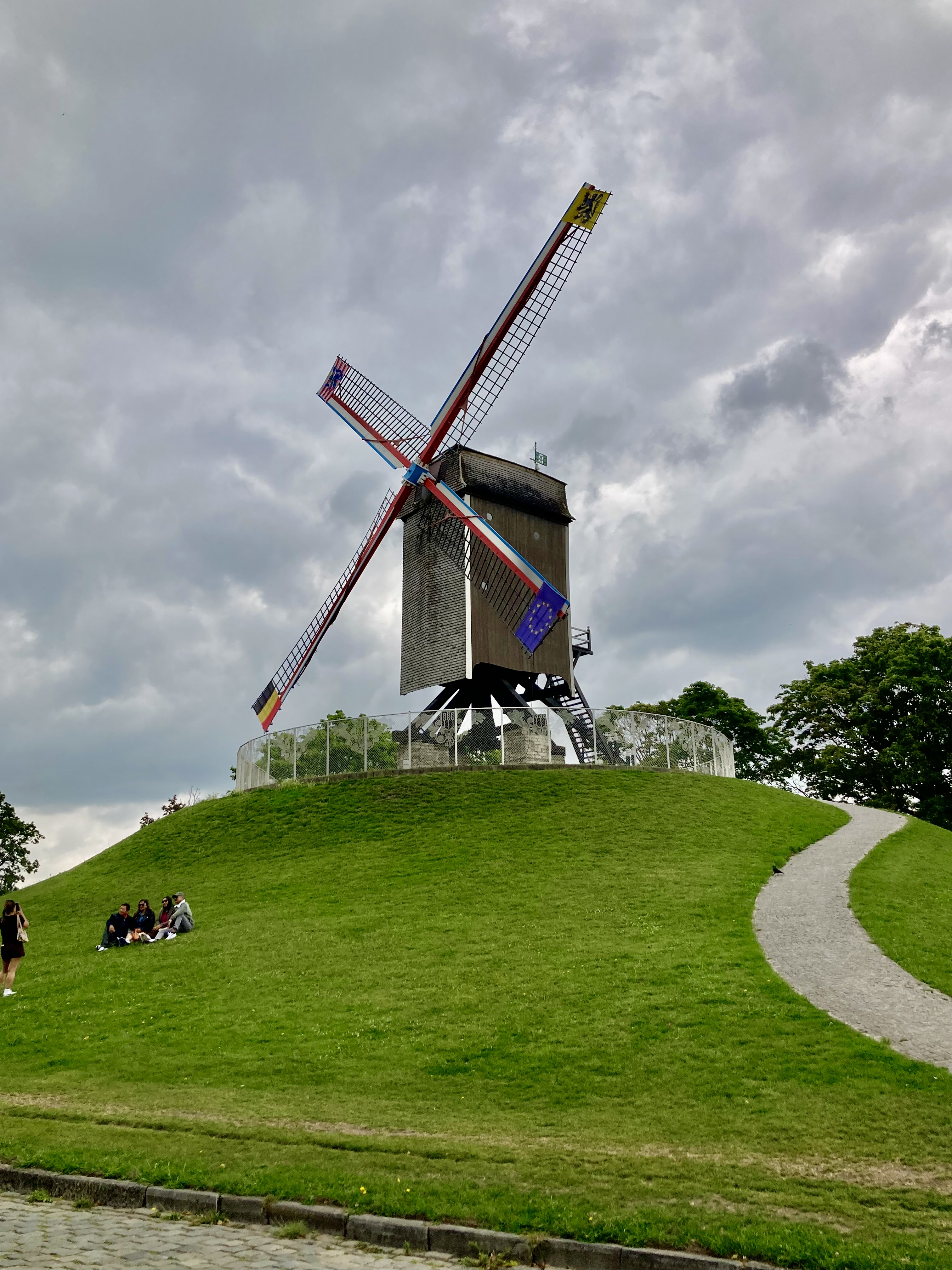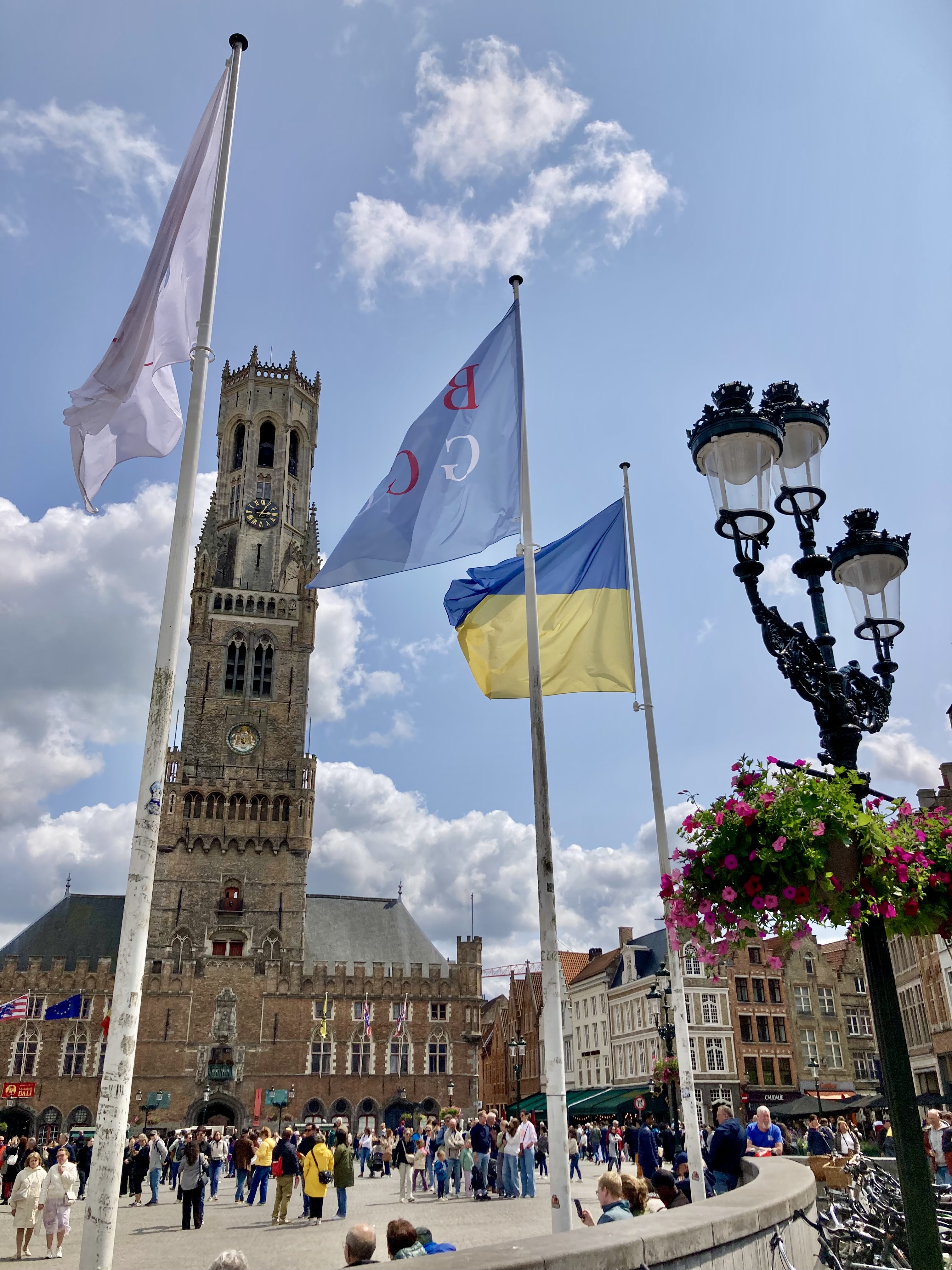 Wieder nur ein Katzensprüngli von 51 km nach Brügge. Belgien das Land der kurzen Wege. Morgens bei Zeiten abgefahren, damit wir am Stellplatz an Rande der Altstadt sicher ein Plätzchen finden. Die Taktik ging bestens auf. Camper parkiert und den Pfus angeschlossen und ab per Pedes in die Altstadt. Was wir hier antrafen übersteigt fast unser Sehvermögen. Das Venedig des Nordens. Eine Innenstadt vom feinsten mit grossen Plätzen und verzierten Giebelhäusern. Wir lassen die Bilder sprechen. Auch das Bike war im Einsatz mit einer Tour rund um die Stadt und weiter einem Kanal entlang, zurück zu den Windmühlen, die sich auf dem Erdwall zwischen Kanal und der Altstadt präsentierten. Selbstverständlich beeindruckten uns auch die verschiedenartigen Zieh- und Drehbrücken, die jedes mal den Verkehr stoppten, um die Schiffe vorbeizulassen.
