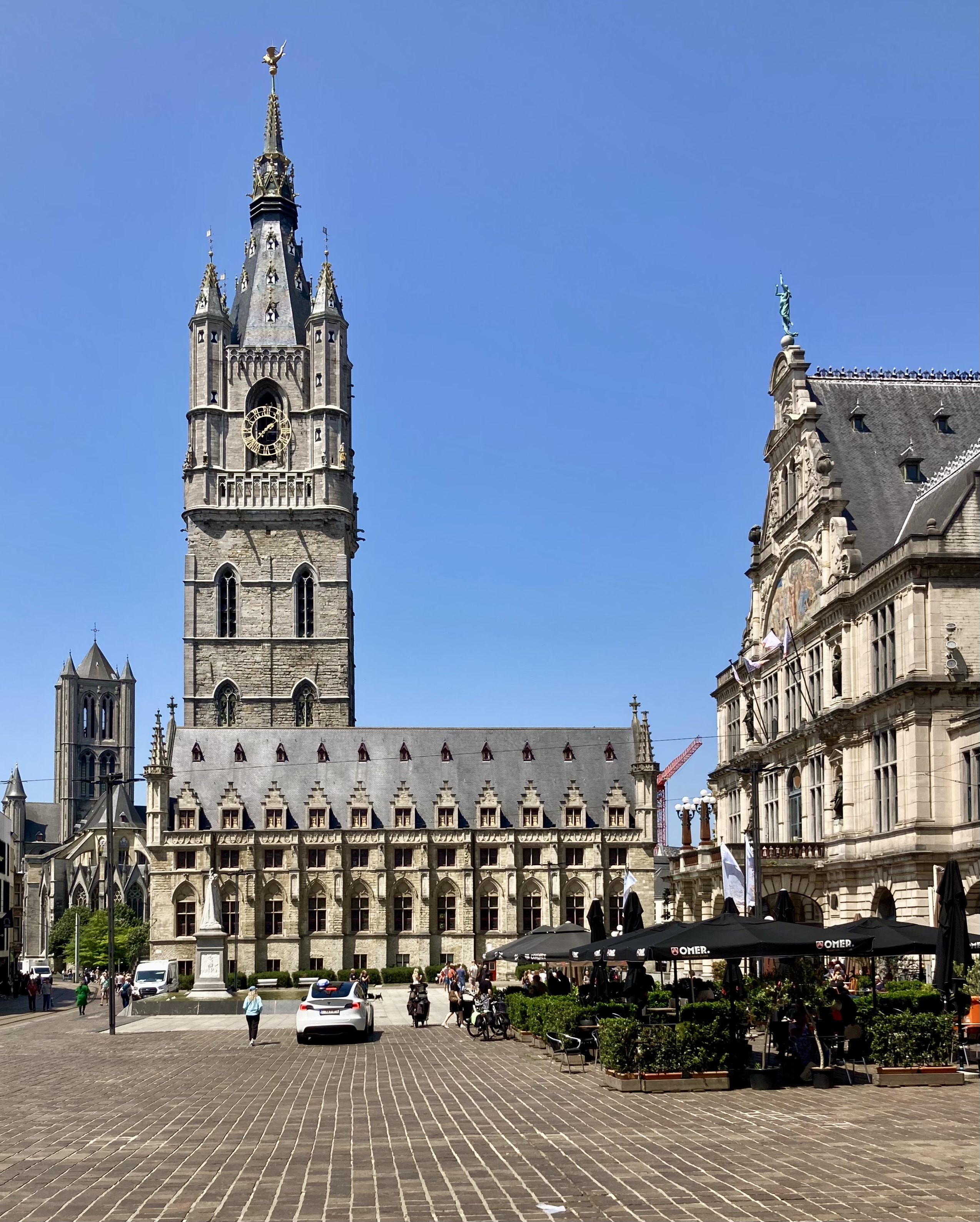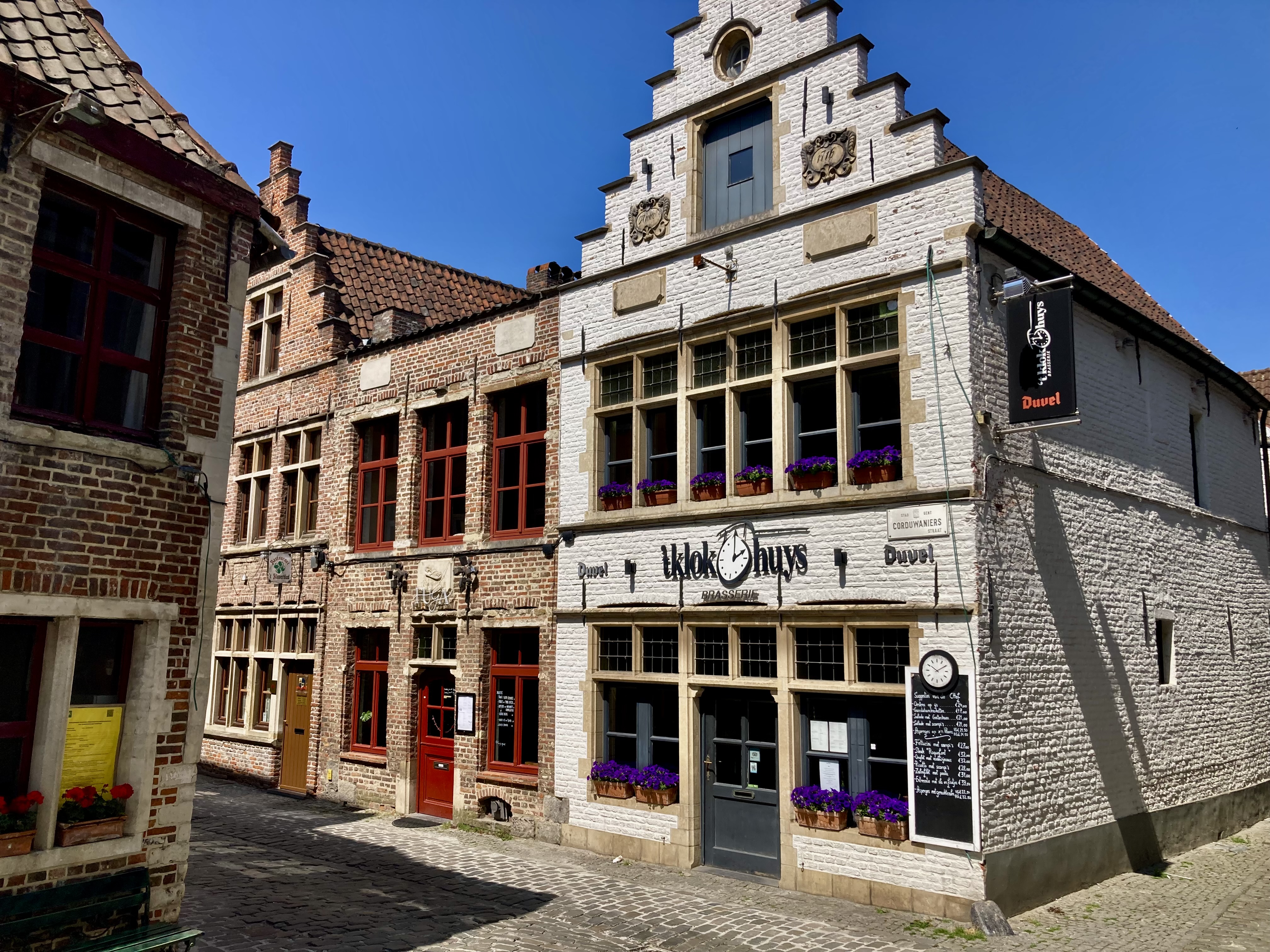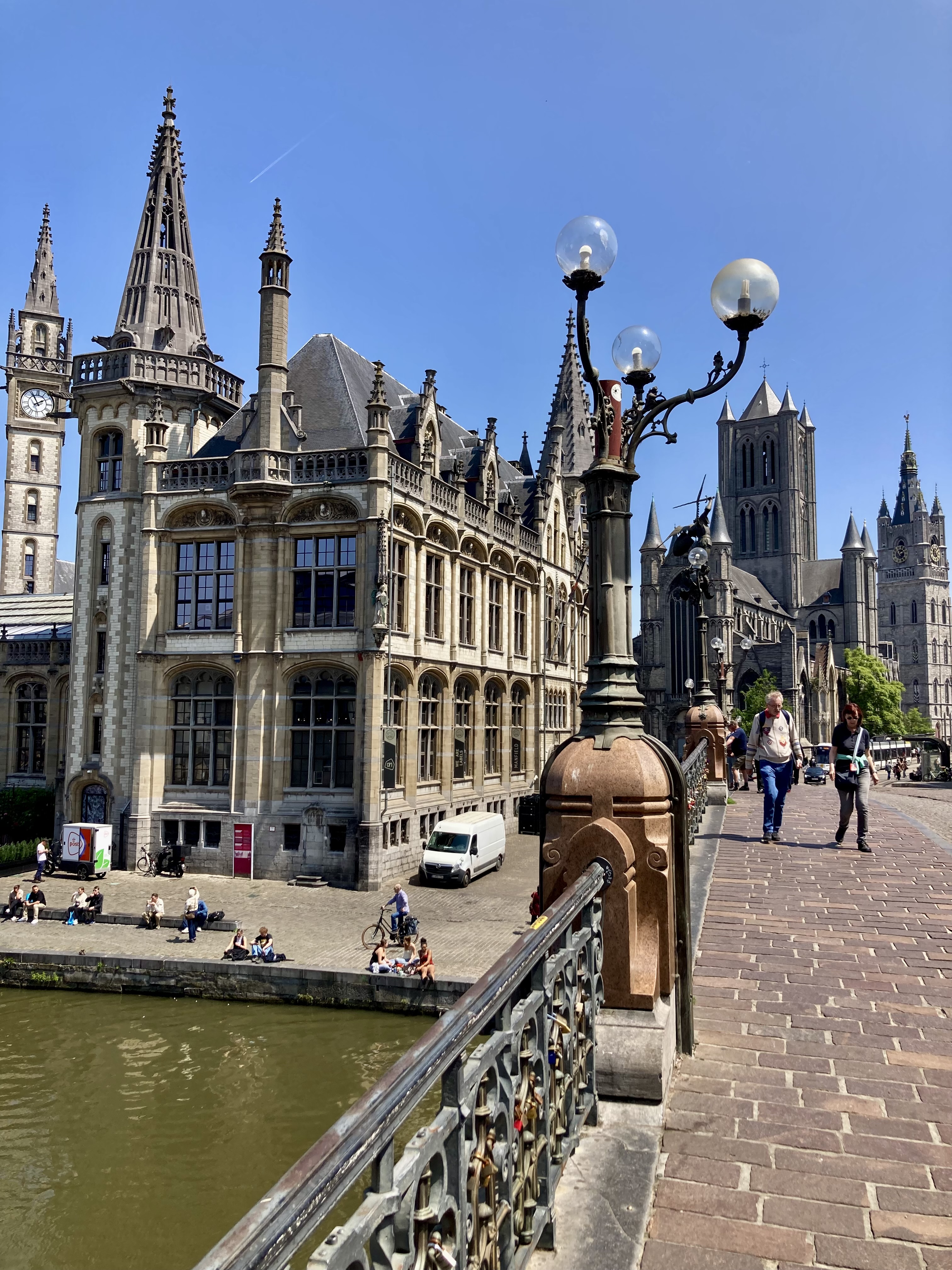 Nur 52 km trennen Brügge und Gent. Etwas ausserhalb der Stadt liessen wir uns auf einem Campingplatz nieder. Logisch ging es per Stromtreter in die Innenstadt. Leicht verfahren, aber dennoch nach einem Cherli Downtown gefunden. Auch hier wieder fast eine Kopie von Brügge, etwas kleiner aber nichtsdestotrotz prächtig. Mit nicht weniger als über 13’000 Schritten durchwanderten resp. erkundeten wir die City. Vorbei auch wieder an Kanälen wunderbaren Ecken, mutigen Bauten bis zur hypermodernen Bibliothek. Nicht zu vergessen, immer der Stop in einer Kneippe und Verkostung eines Spezialbieres. Wird auch langsam zu einem Spezialhobby von mir, Bier mit den entsprechenden Gläsern zu kaufen. Der Elvis bekommt etwas mehr Gewicht auf der Heimfahrt.