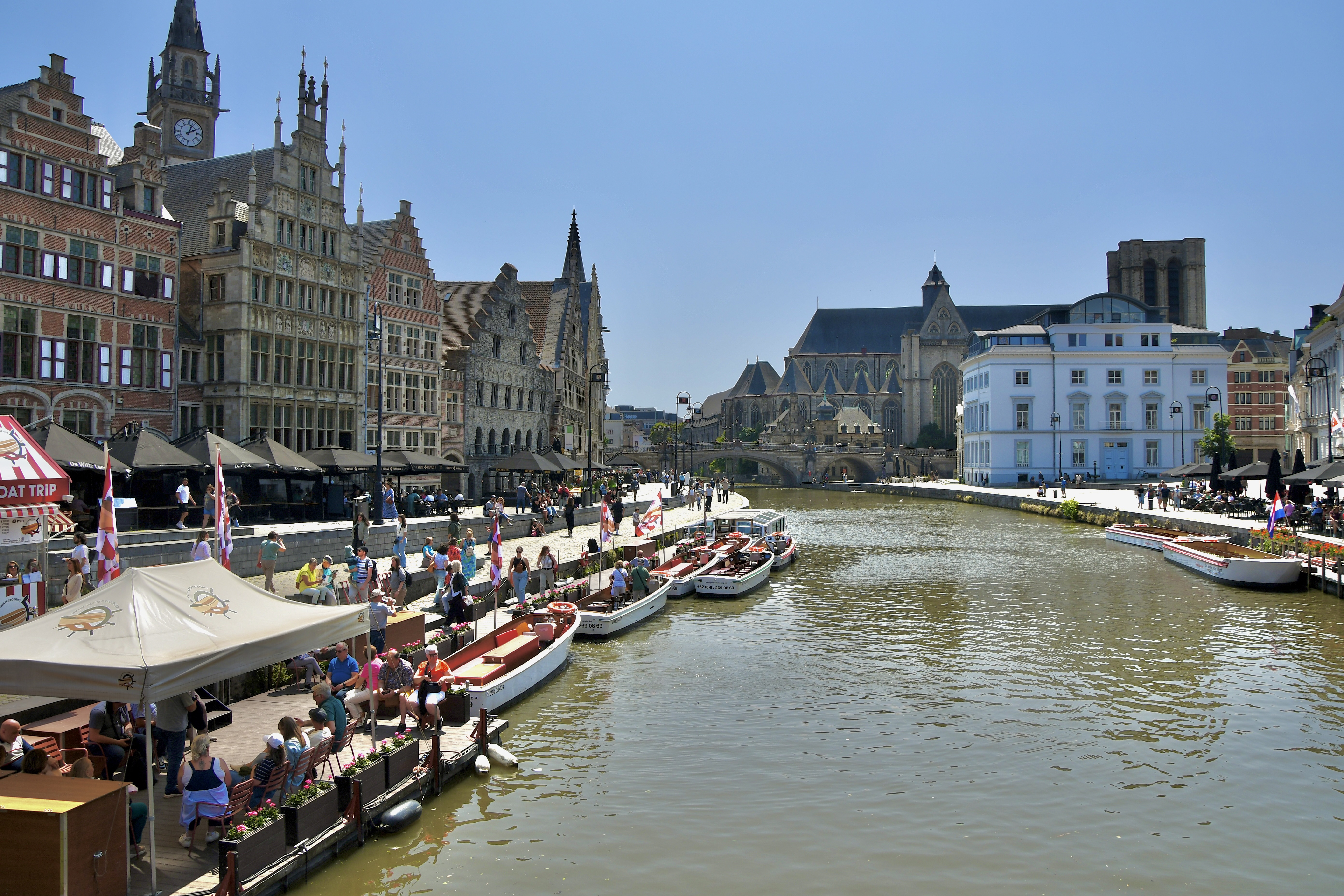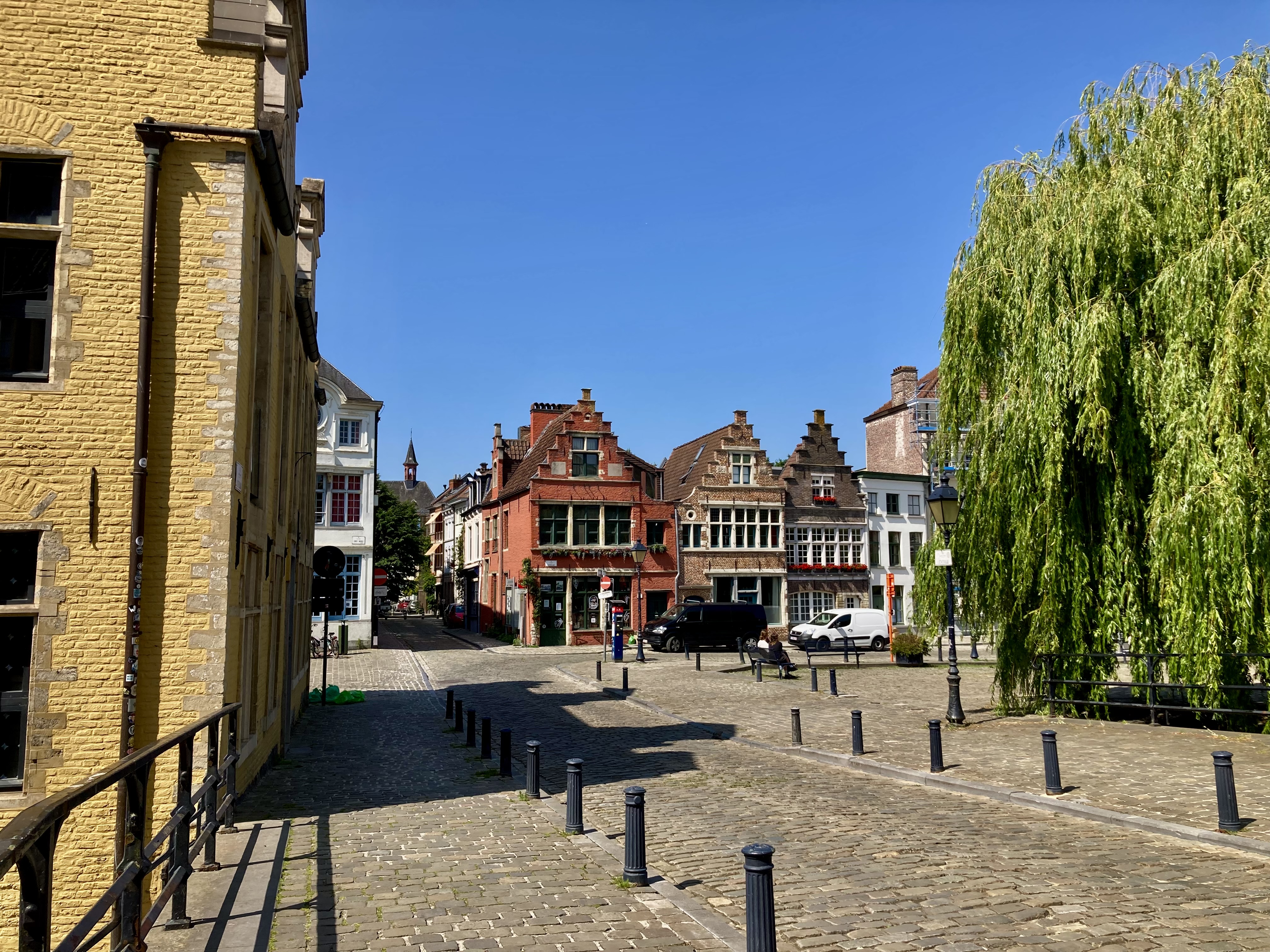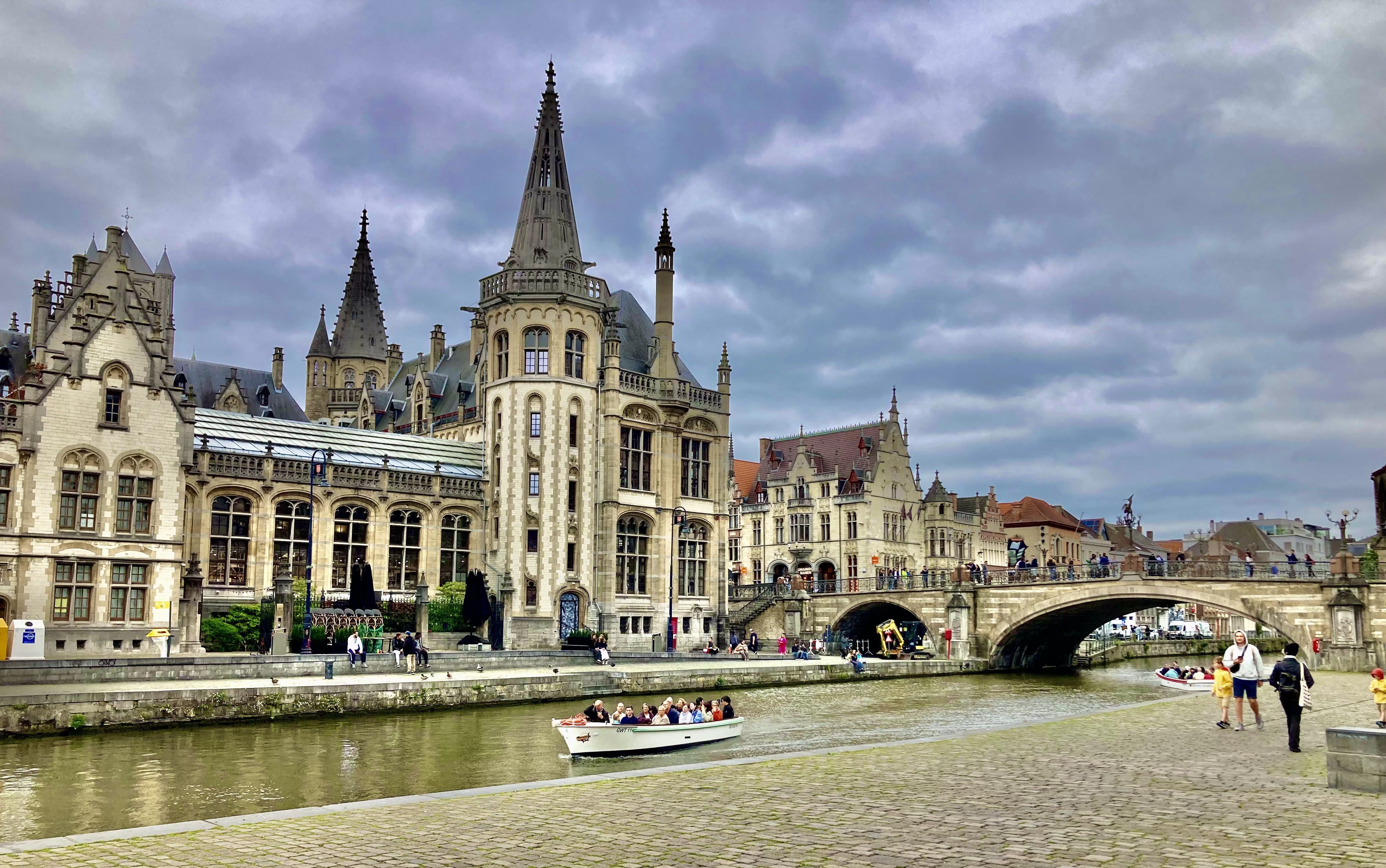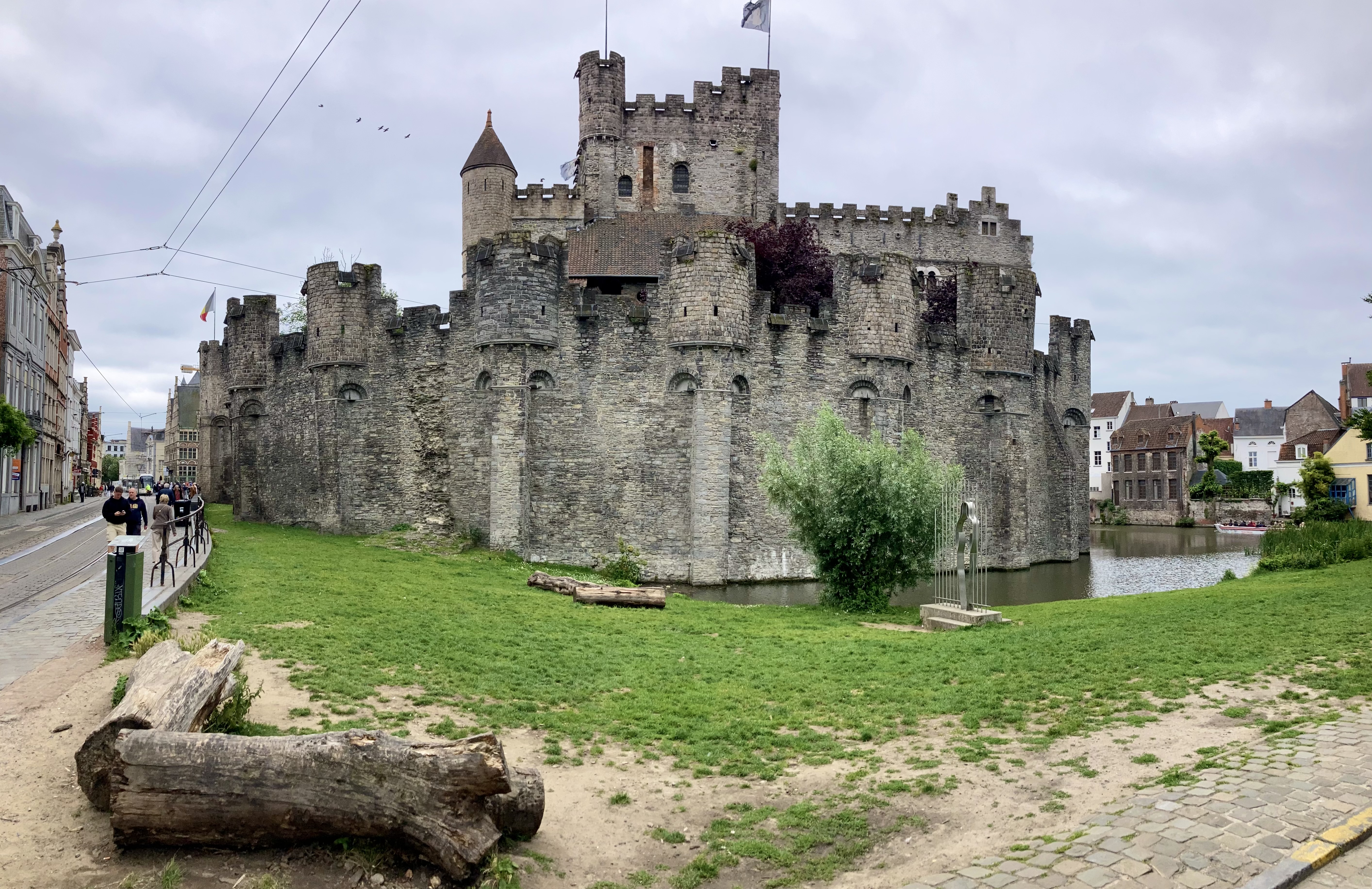 Nur 52 km trennen Brügge und Gent. Etwas ausserhalb der Stadt liessen wir uns auf einem Campingplatz nieder. Logisch ging es per Stromtreter in die Innenstadt. Leicht verfahren, aber dennoch nach einem Cherli Downtown gefunden. Auch hier wieder fast eine Kopie von Brügge, etwas kleiner aber nichtsdestotrotz prächtig. Mit nicht weniger als über 13’000 Schritten durchwanderten resp. erkundeten wir die City. Vorbei auch wieder an Kanälen wunderbaren Ecken, mutigen Bauten bis zur hypermodernen Bibliothek. Nicht zu vergessen, immer der Stop in einer Kneippe und Verkostung eines Spezialbieres. Wird auch langsam zu einem Spezialhobby von mir, Bier mit den entsprechenden Gläsern zu kaufen. Der Elvis bekommt etwas mehr Gewicht auf der Heimfahrt.