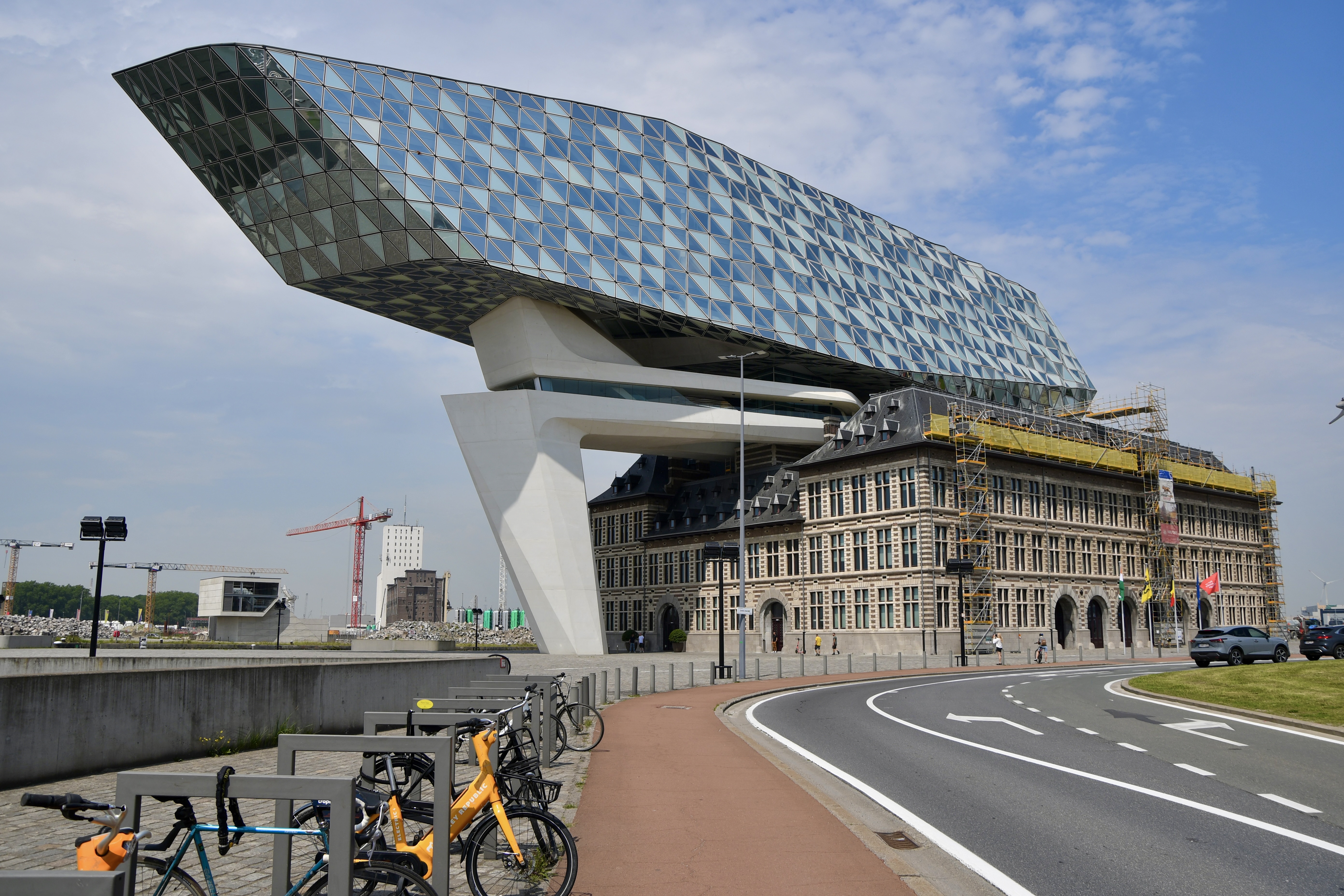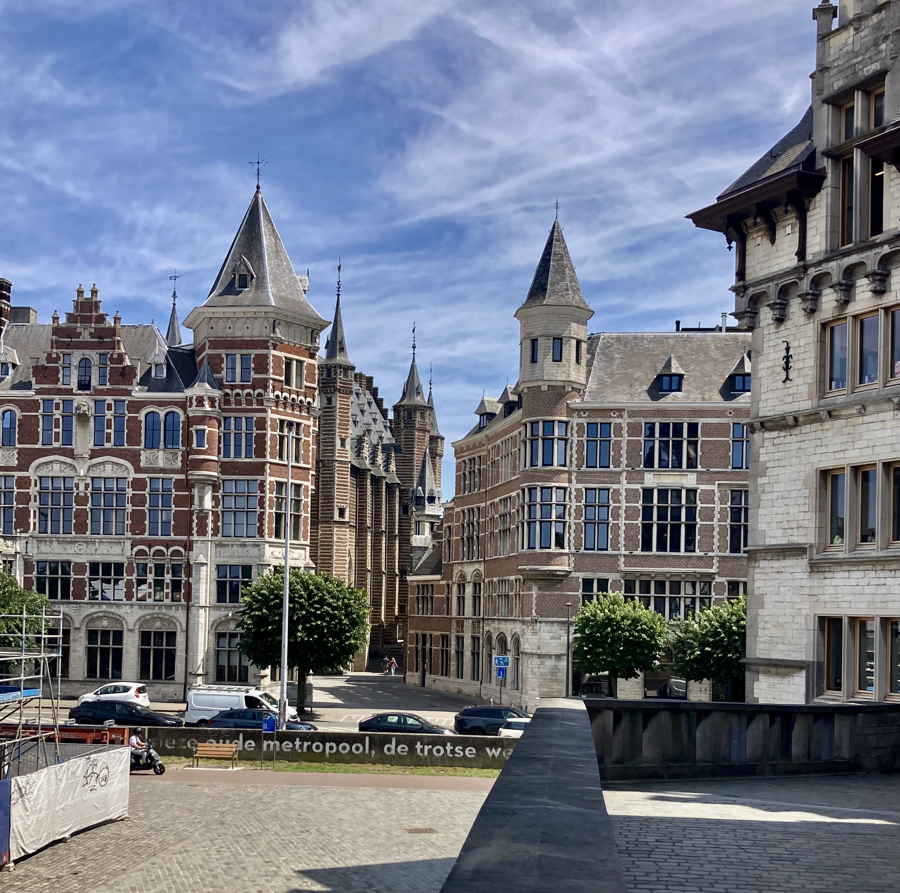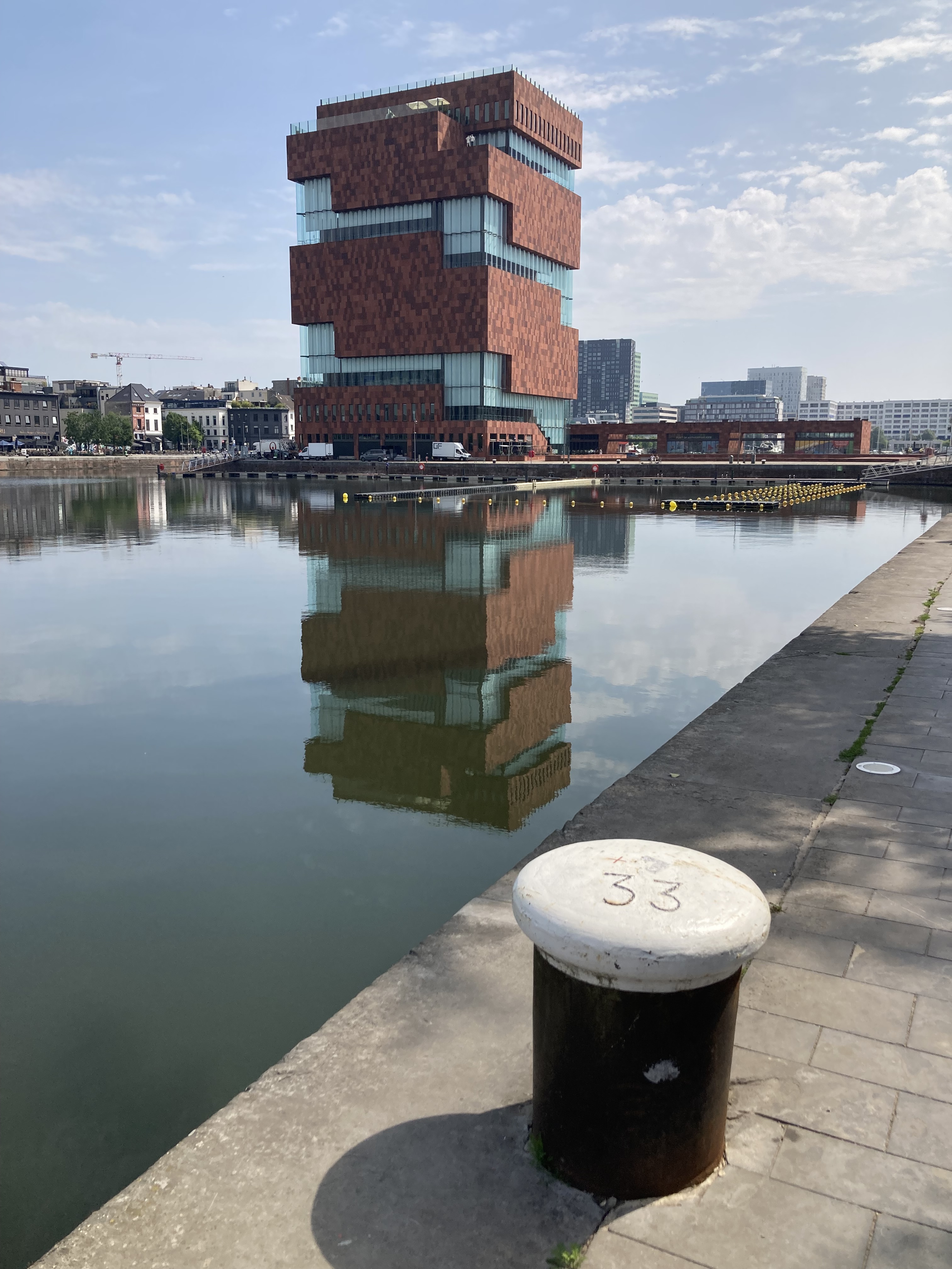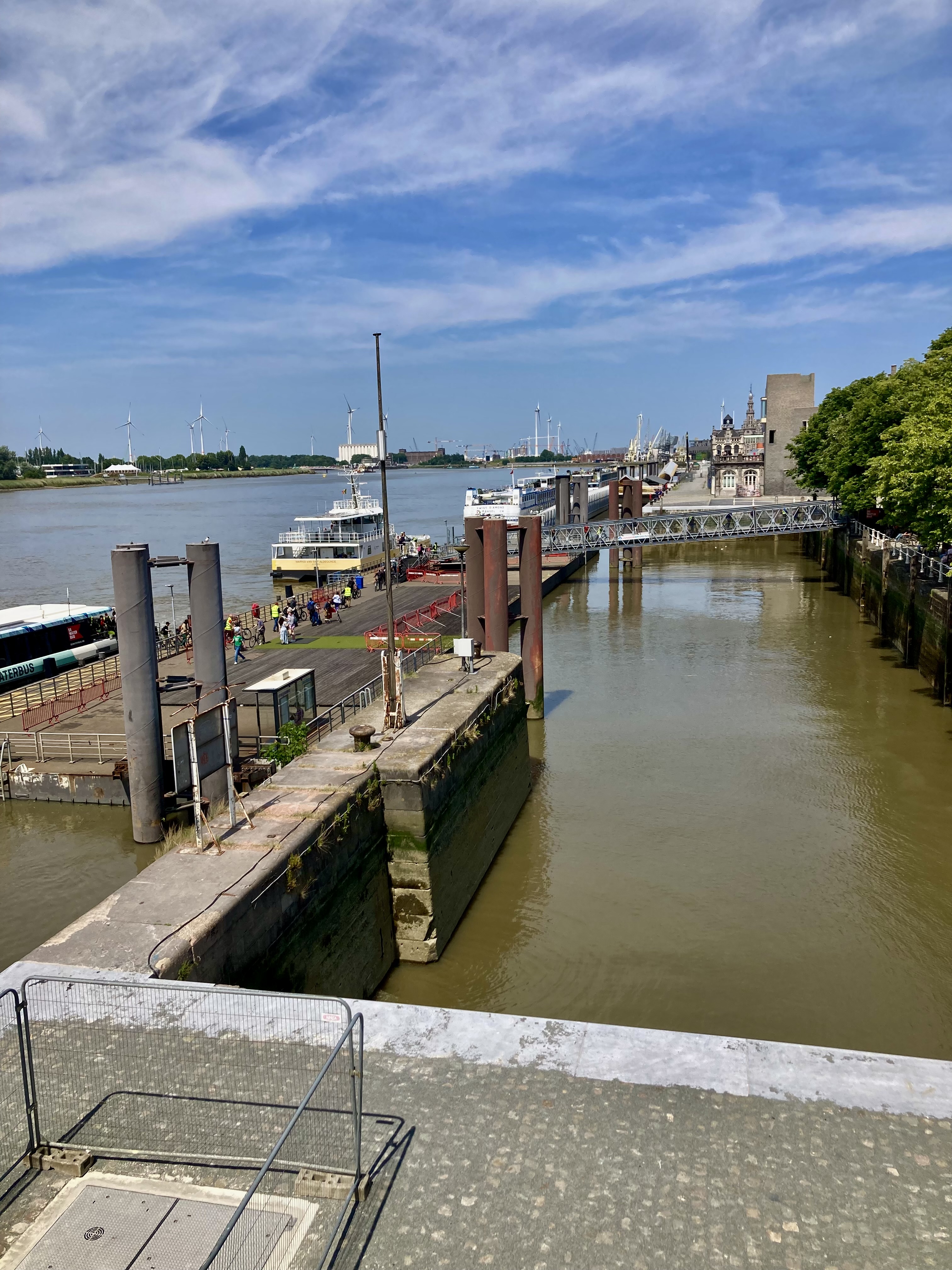 Brüssel haben wir „umschifft“ und sind die 72 km direkt nach Antwerpen gefahren. Das Bild hat sich nun geändert. Ebenfalls eine schöne Altstadt, doch der Hafen und die vielen neuen architektonischen Prachtsquartiere zeigt uns eine hochmoderne Stadt mit dem zweitgrössten Hafen in Europa hinter Rotterdam. Neben dem Messegelände fanden wir für zwei Nächte einen Stellplatz. Jetzt ging es einmal mit der Strassenbahn in die Stadt zum Bahnhof, ja Bahnhof nicht Kirche, ein prächtiges Monument das Eindruck macht. Weiter schlenderten an den vielen Diamantenshops vorbei. Kamen auch nicht in Versuchung da einzutreten, da die Investition für die letzten 25 Lebensjahre doch zu hoch ist. Altstadtstop mit der obligatorischen Bierdegustation am Grote Markt. Dann durch enge Gassen zum alten Hafen (Schelde), der zu einem prächtigen Freizeitboulevard bespickt mit Parkanlagen und gedeckten Parkplätzen in den alten Hallen präsentiert. Riesig, eindrücklich. Auch hier sahen wir links und rechts der Strasse flotte Velowege. Darum am nächsten Tag mit dem Rad zur Schelde. Besuch des MAS (Museum am Strom) herrlich begehbares Museum bis auf das Dach. Auf jedem Stock ein anderes Ausstellungsthema. Weiter radelten wir zum Hafenhaus, wo das alte und der von Zaha Hamid gestaltete Überbau den Beginn des grossen Hafens andeutet. Nun ging’s los zur Velo-Hafenrundfahrt. Wir haben nur den kleinsten Kurs genommen und der war nicht gerade kurz, quer an den Kanälen vorbei oder darüber gestrampelt. Das war aber nur ein ganz kleiner Bruchteil des Hafens den wir zu sehen bekamen. Für uns Bünzlischweizer dennoch eine Nummer zu gross aber eindrücklich. Die Heimfahrt wieder an den hochmodernen Quartieren vorbei, die zum Staunen anregten. Es gibt sogar eine Rad-Architektur-Route dem wir teilweise folgten.