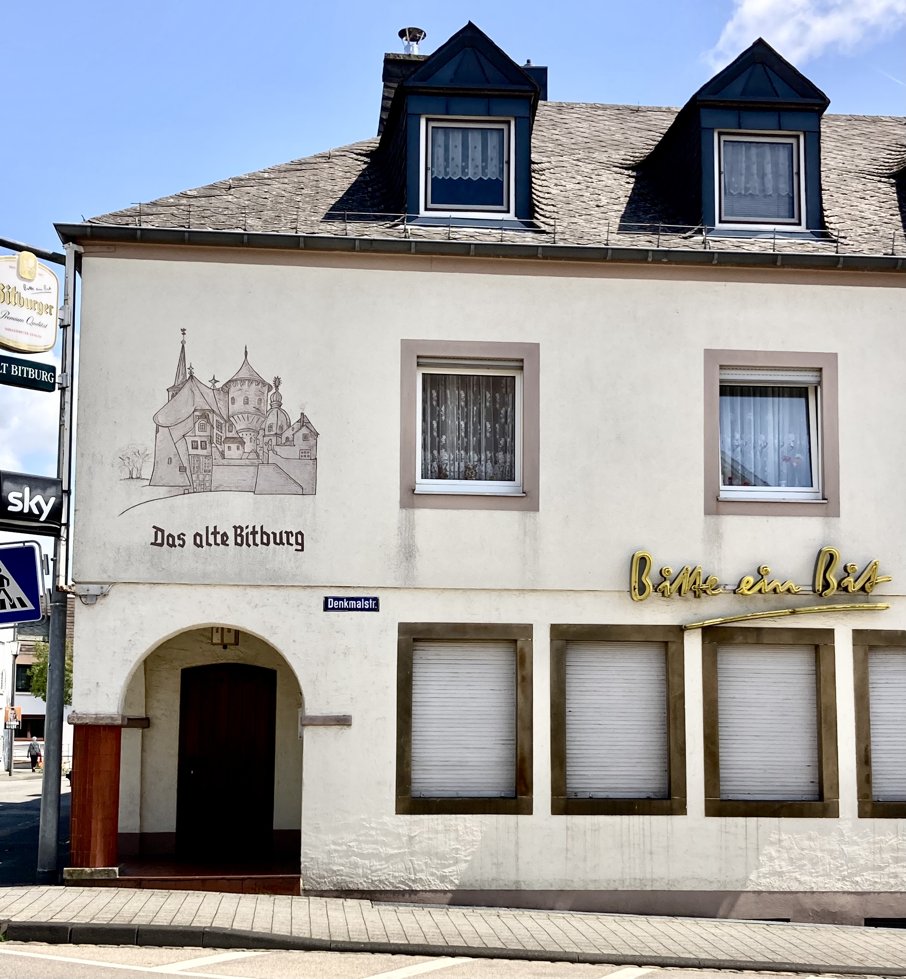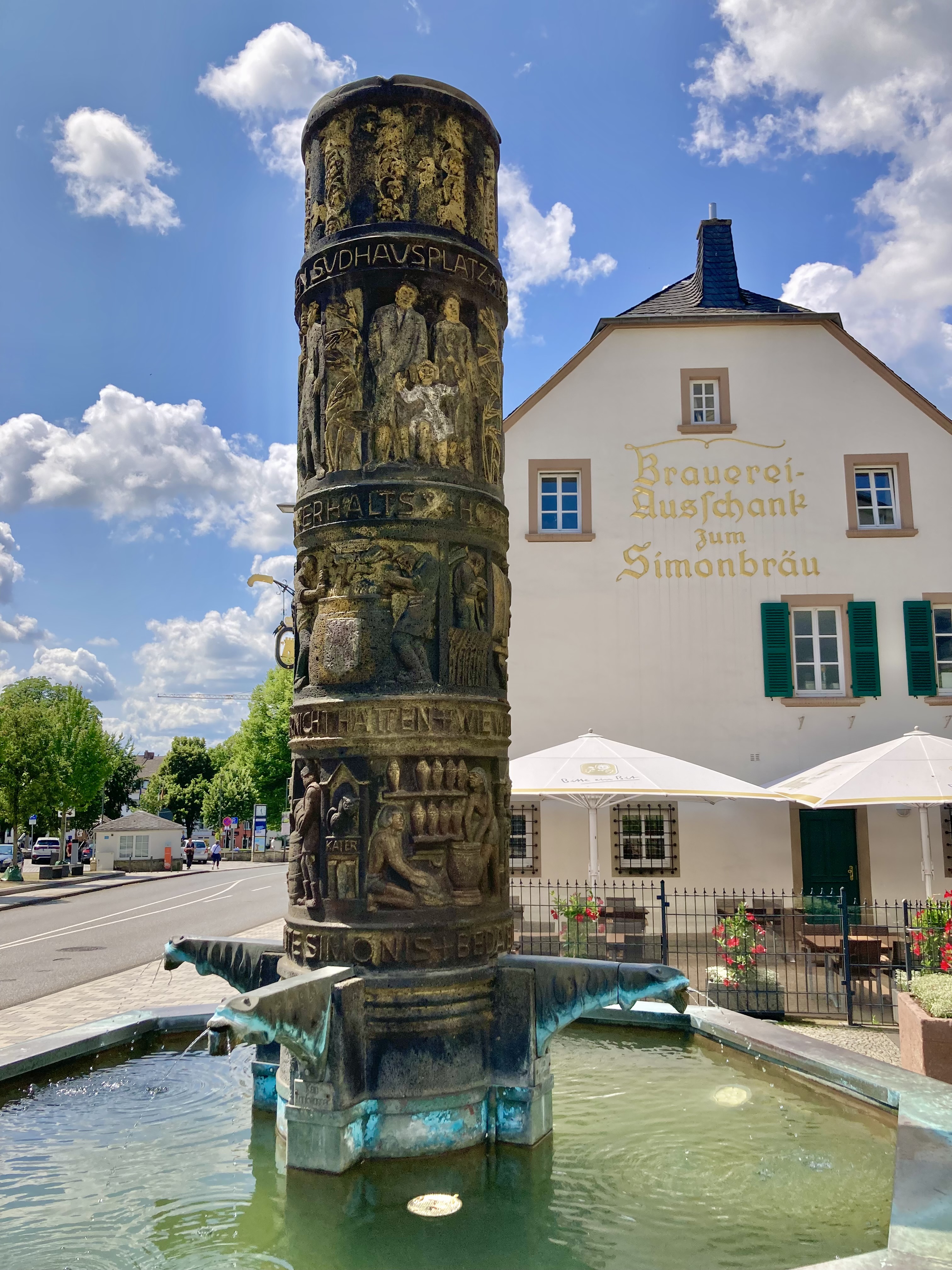 Der Fluss Prüm bildet eine tiefe Talmulde und durchzieht die Südeifel in engen Schlaufen. So war auch wieder mal ein Fussmarsch sprich Wanderung angesagt, das uns an der zünftig wasserführenden, braunen Prüm entlang zum nächsten Dorf führte. Selbstverständlich wurde auch ein Besuch von Bitburg per Velo gemacht. Da dreht sich alles ums Bier „Bitte ein Bit“! Bierbrunnen, Brauerei, Bierschenke etc.
