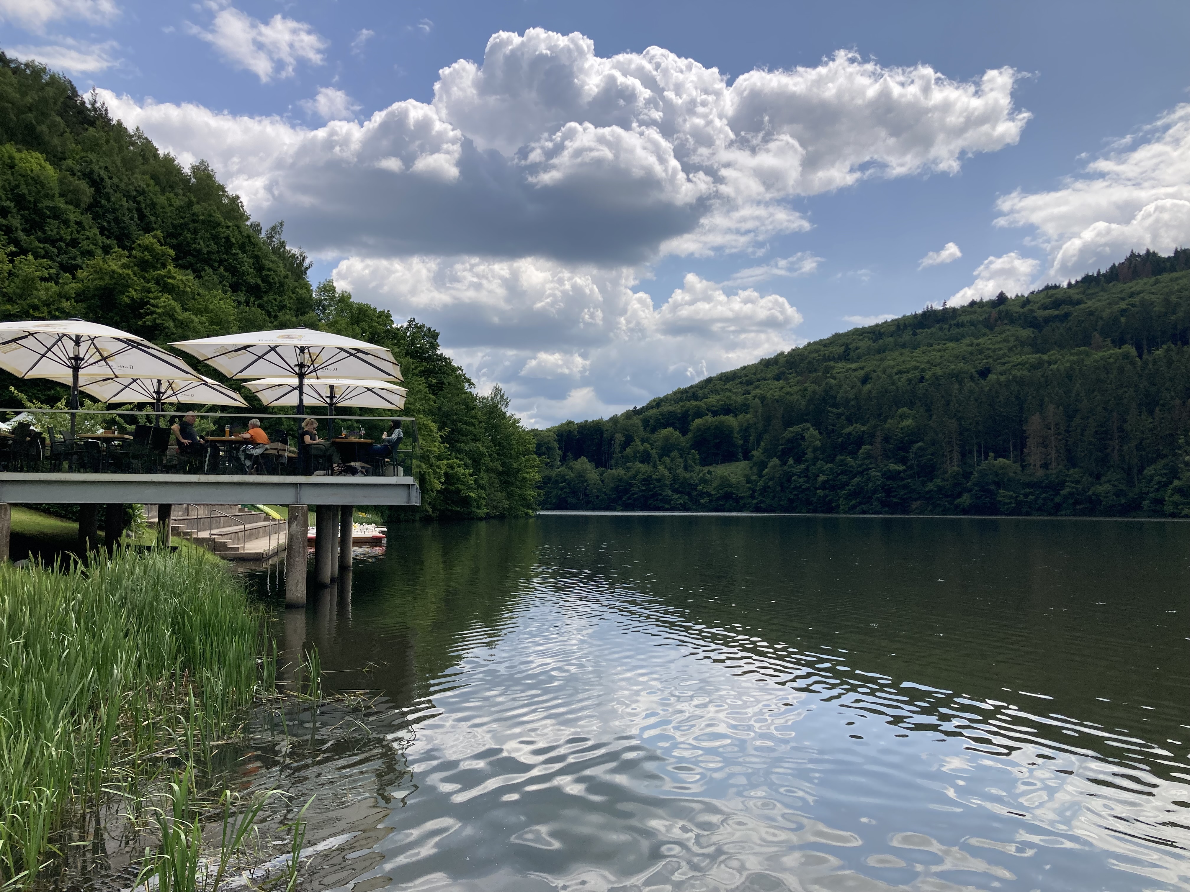 Die grosse Velotour am letzten Tag zum Bitburg Stausee und zum Schloss Hamm im Prümtal zeigt uns einmal mehr eine total unbekannte, spannende Gegend. Drei Tage/Nächte haben wir hier verbracht. Teilweise auch mit Nichtstun, lesen, sünnele und bädele im Pool, eben Ferien machen.