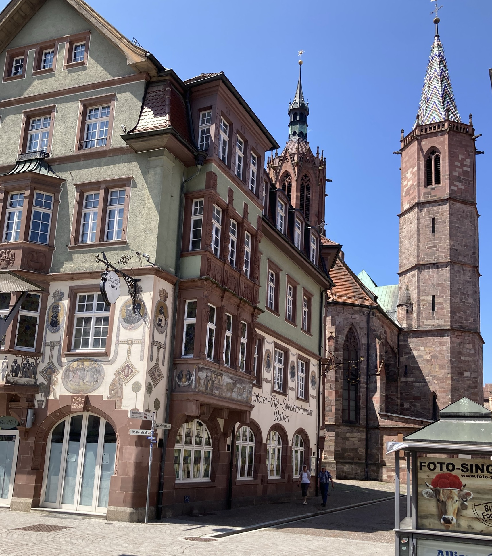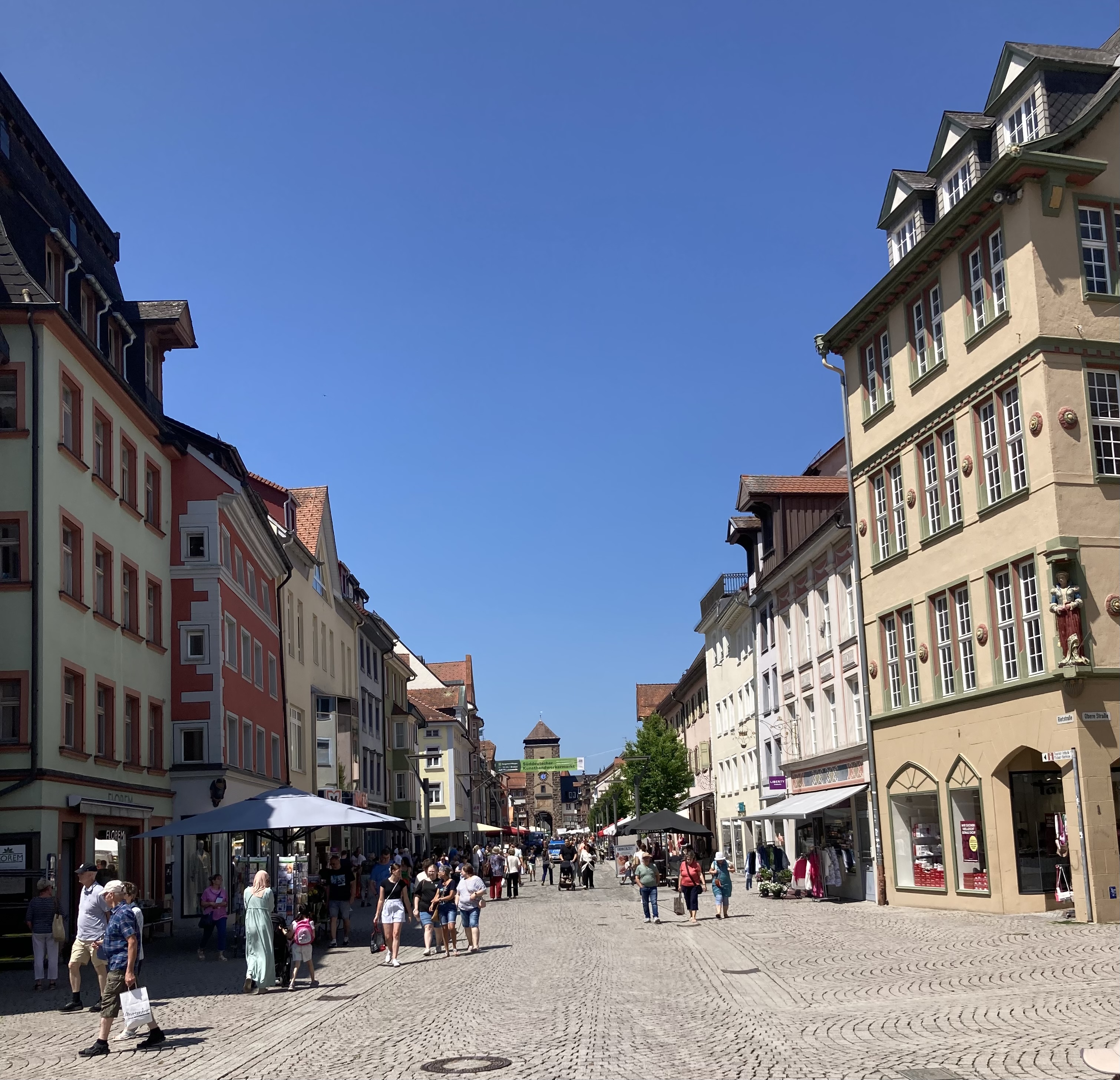 Doch unsere obligatorische „Einkaufstour“ mit dem Velo nach Villingen musste noch sein. Schon auf der Hinfahrt merkte ich, dass ich meinen Geldbeutel vergessen habe. Hä-nu-se-den. Schöner Laden, schöne Hosen für Doris, passt, an die Kasse… und Doris hat den Geldbeutel mit den Kreditkarten auch vergessen… Tut uns leid, können leider nichts kaufen. Ich entdeckte noch einen feinen Schlarpen in einer Auslage, geht auch nicht. Nun der plötzliche Geistesblitz oder göttliche Eingabe bei Baumann. Ich habe doch die Kreditkarte auf dem Handy gespeichert. Voilà. Nichts wie los in die Läden zurück und wir konnten kömmerle und bezahlen. Ich entdeckte in einem Handy-Shop noch einen neuen Pariser für mein Handy. Leider nur gegen Barzahlung… „Weisch Mann, wir machen nix Kreditkarte…“ Also weiter mit dem alten, abgewetzten Handy-Etui. – Schönes Schlusserlebnis mit lustigen, altersbedingten Aussetzern.